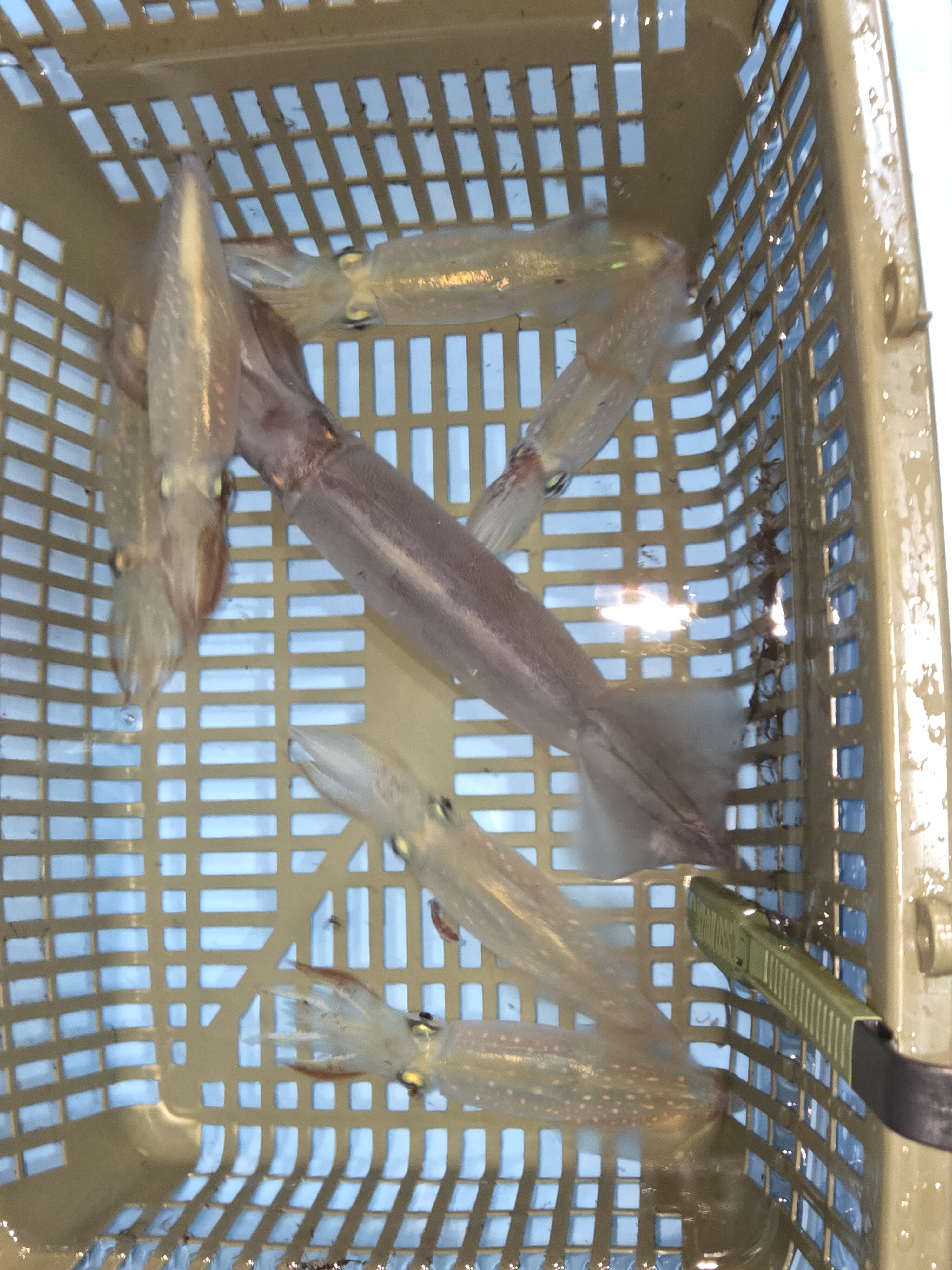 2025.07.04 印刷する 和歌山 イカメタル行ってきました 魚種 マイカ/アカイカ/ケンサキイカ/マルイカ 数 スルメイカ 1杯 マイカ 6杯 釣り方 ☆イカメタル/オモリグ 場所 和歌山県 天候 晴れ スタッフ 佐藤純子 店舗 堺店 釣行日 2025.06.29 コメント 和歌山県南紀白浜富田浦袋港より「代々丸」さんに乗せていただき、イカ釣りに行ってきました イカメタルは2回目で前回は1年前なので釣り方はほぼ覚えてなくて…😅 18時前に出船でポイントまでは30分程で到着しました イカメタルはメタルスッテと浮きスッテのカラーチェンジとアタリ棚を見つける事が重要と聞いていましたが私のスッテの数が少なすぎなので、同行の方が親切に貸してくださり何とか釣りを楽しめる事ができました…😃(感謝します) 日が落ちるまでのまだ明るい時間帯は底の方で狙ってましたが、なかなか反応がわからなくて他の方々は釣ってらっしゃる中、少し焦りも出てきたりでちょっと仕切り直ししようと思い巻き上げると、イカ掛かってました~😅 もう、ビックリでした!私が全然気づけてなくて…😞 船長さんは「小ぶりのイカは反応がわかりにくいです」と仰ってましたが、鈍感過ぎて恥ずかしかったです…😣 その後はポイント移動して船長さんが水深を教えてくださるので、それに合わせて竿を動かし棚を探してイカを誘い掛かるの待つ の繰り返し 反応無ければスッテのカラーを変えてみる 釣れてる方にカラーや水深を教えてもらったり それで釣れたら嬉しいし釣れなくても次は違うカラーを試してみよう と色々考えるのも楽しかったです😊 ポイントごとに当たるカラーが違ってたりするのですが、私は紫系のカラーがよく釣れた感じでした 他の方は青系も釣れてたようです とは言え、私の課題はアタリをしっかり見極め合わせる事が最重要課題だと思いました もっと経験値増やさないと、です…😅 次こそ10杯以上目指して、頑張ります😆(目標低い😅) 使用した釣具 竿 シマノ セフィアXR メタルスッテ B66UK-GS リール シマノ バルケッタBB150DHHG