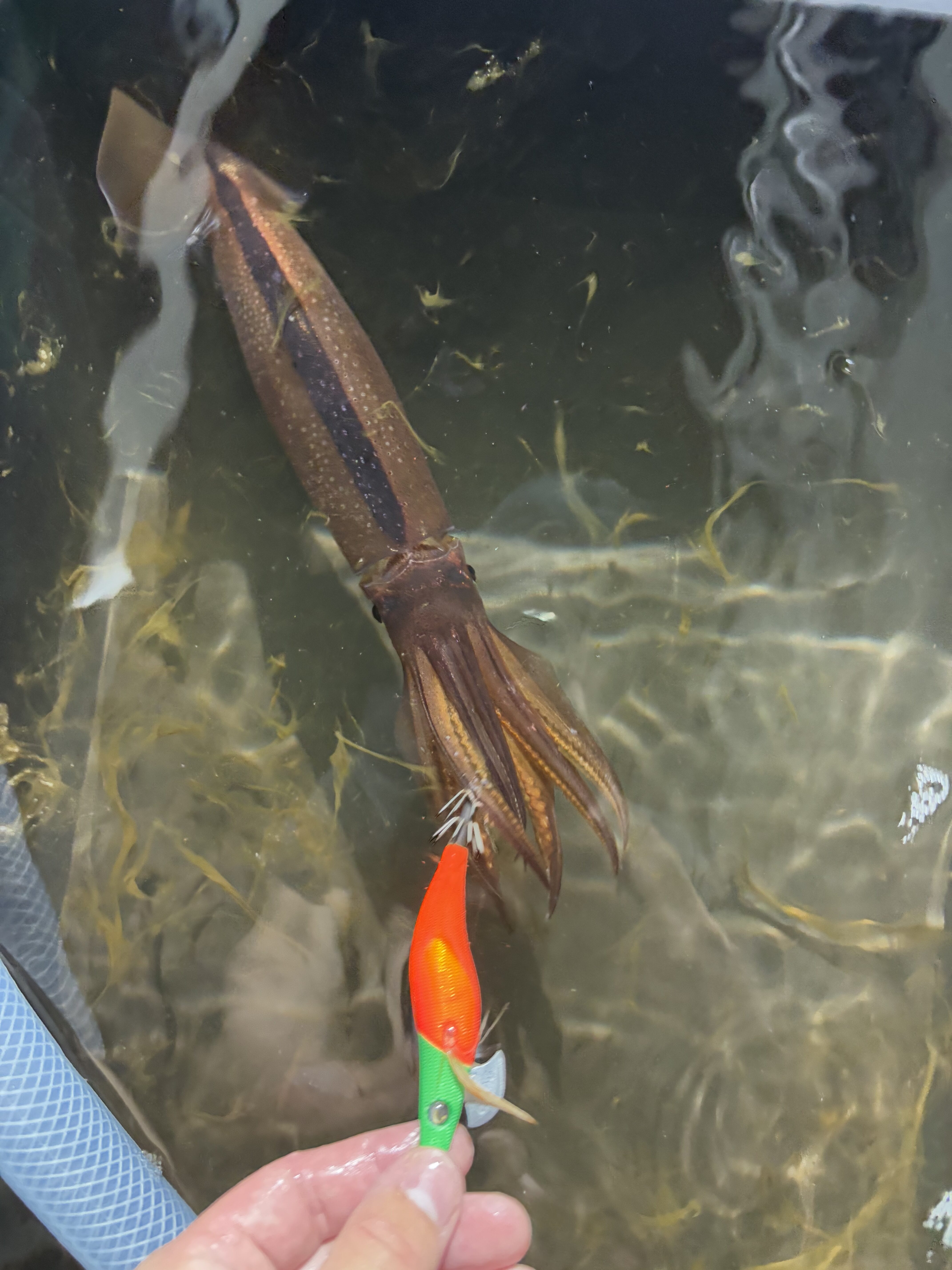 スルメが表層に上がっていたので20号のオモリグで表層を探ってやると効率よく釣ることができました。