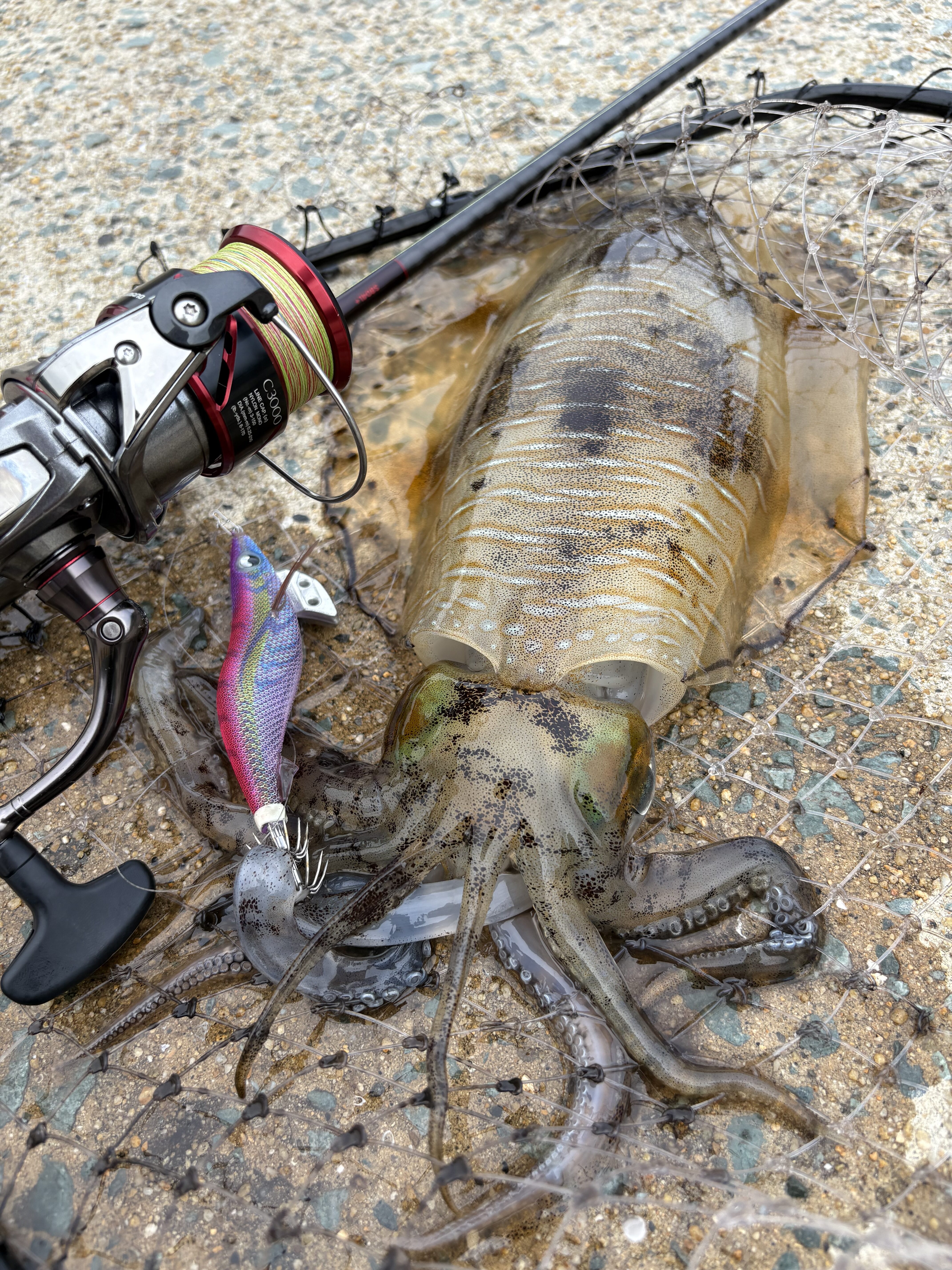 結局この日は、キロオーバーは出ませんでしたが500〜900gの良型アオリイカを、ショアからなんと1日で31杯釣るという、島民も聞いたことがないという、もはや意味がわからない釣果となりました😇