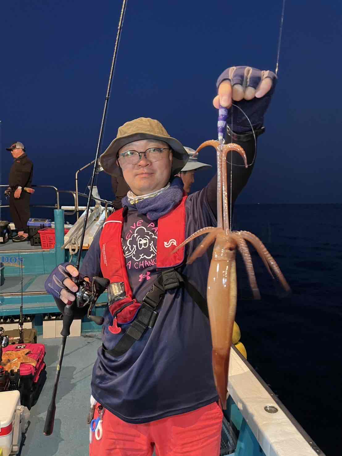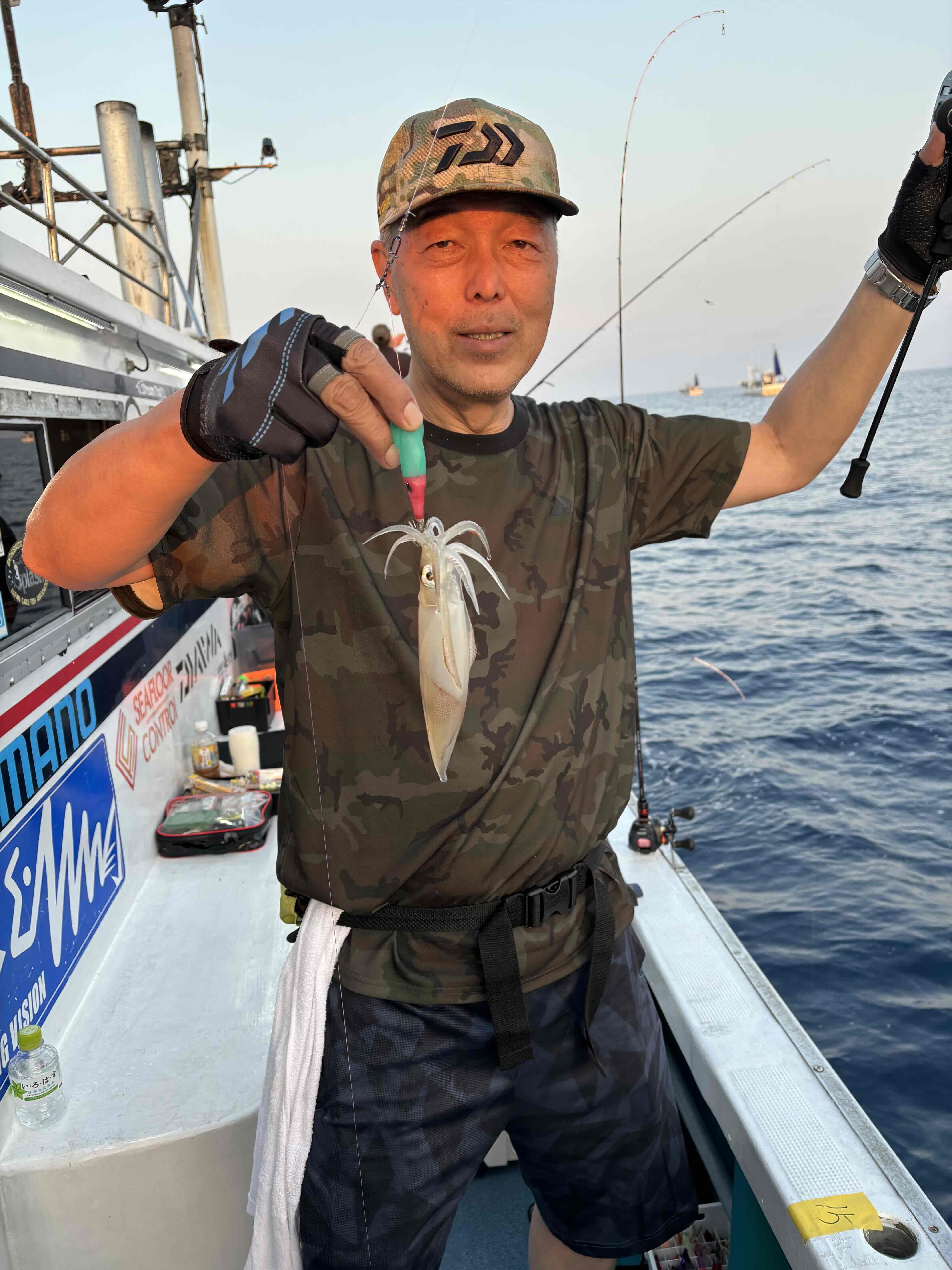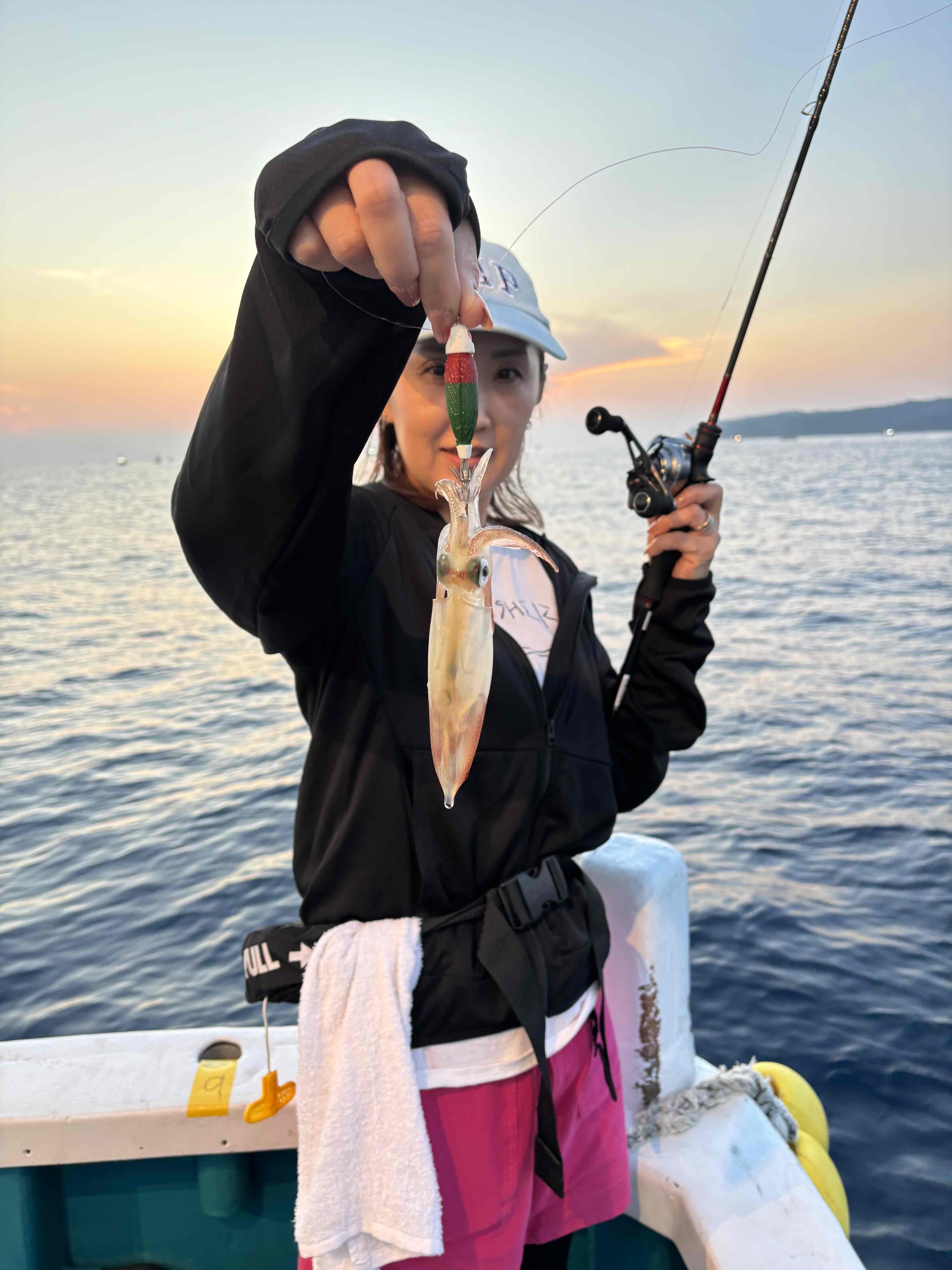 6時ごろ出船 ポイントは椿沖 まだまだ明るい時間帯からのスタート 初めての方もいるので釣り方、仕掛けのセッティング アタリの取り方をレクチャーしながらスタート 代々丸さんからのプレゼントもあり先着4名 いきなり早掛けがスタート 夕方でしたが早速ヒット、小型ながらマイカ 船中ポツリ ポツリと釣果が上がってきます。先着4名もアッという間に終わってしまいました。暗くなるとスルメがヒットし始めます。大型スルメも多くよく引きます。マイカも型が良くなりコンスタントに釣られる方は連続ヒットも この日は紫、ブルー系がヒットパターン しかし同じカラーばかりでは連続ヒットまではいかず、ヒットしていてもカラーチェンジは必要です。9時ぐらいにはマイカ、スルメ合わせて20杯超える方もありこのまま伸びてほしかったですが、後半は激渋 ポイントも大きく変えたりしたが変わらず。ゆっくりとした誘いで拾っていき数を伸ばすパターンでトップは30杯 スルメ込みで40杯以上の釣果を上げていました。平均マイカで15杯前後 初めての方でも15杯は超えていたので良かったです。 12時には港に寄港 片付けして解散となりました。 今の和歌山でのイカメタルは釣果ムラも少なくお勧めです。