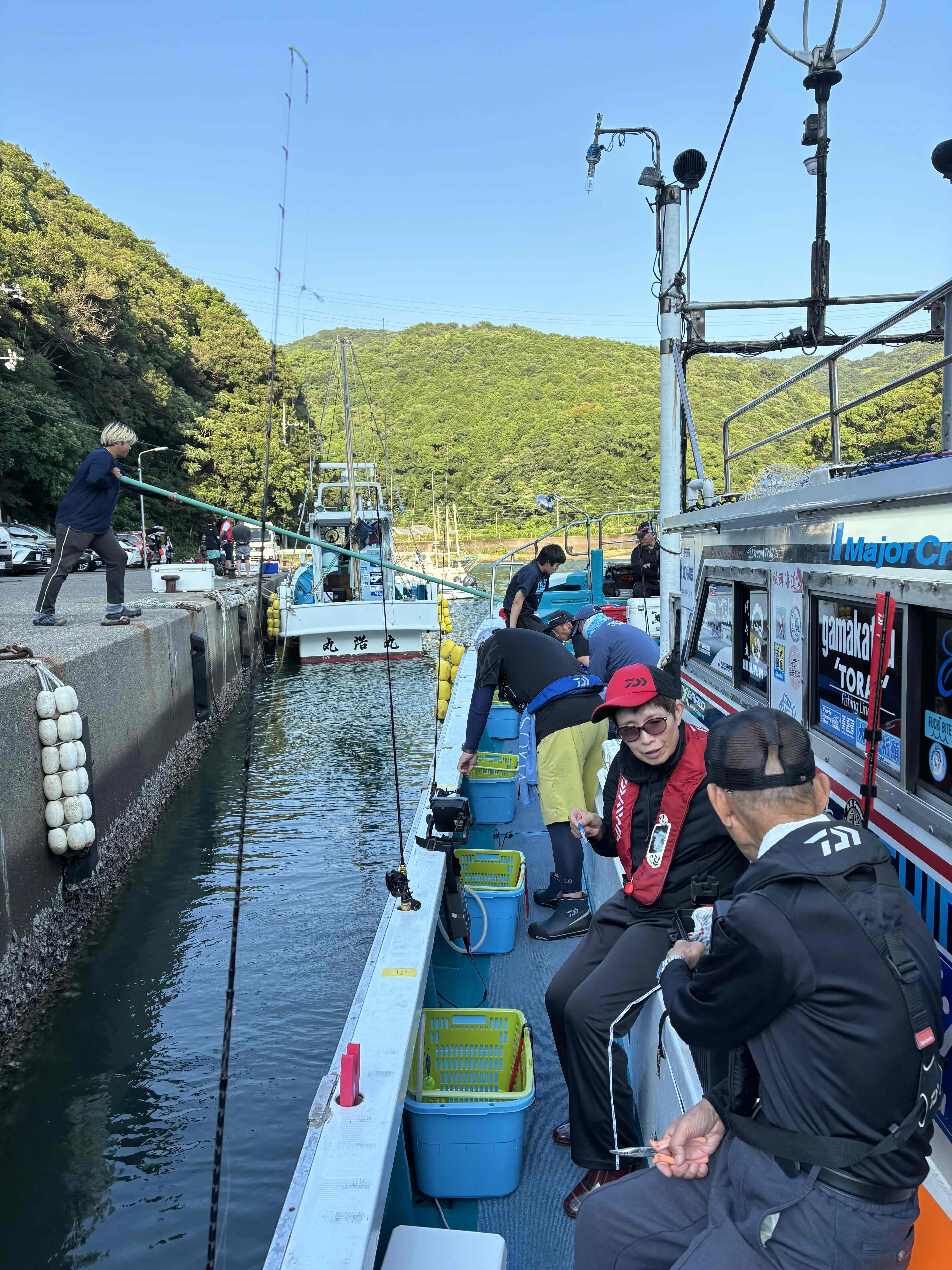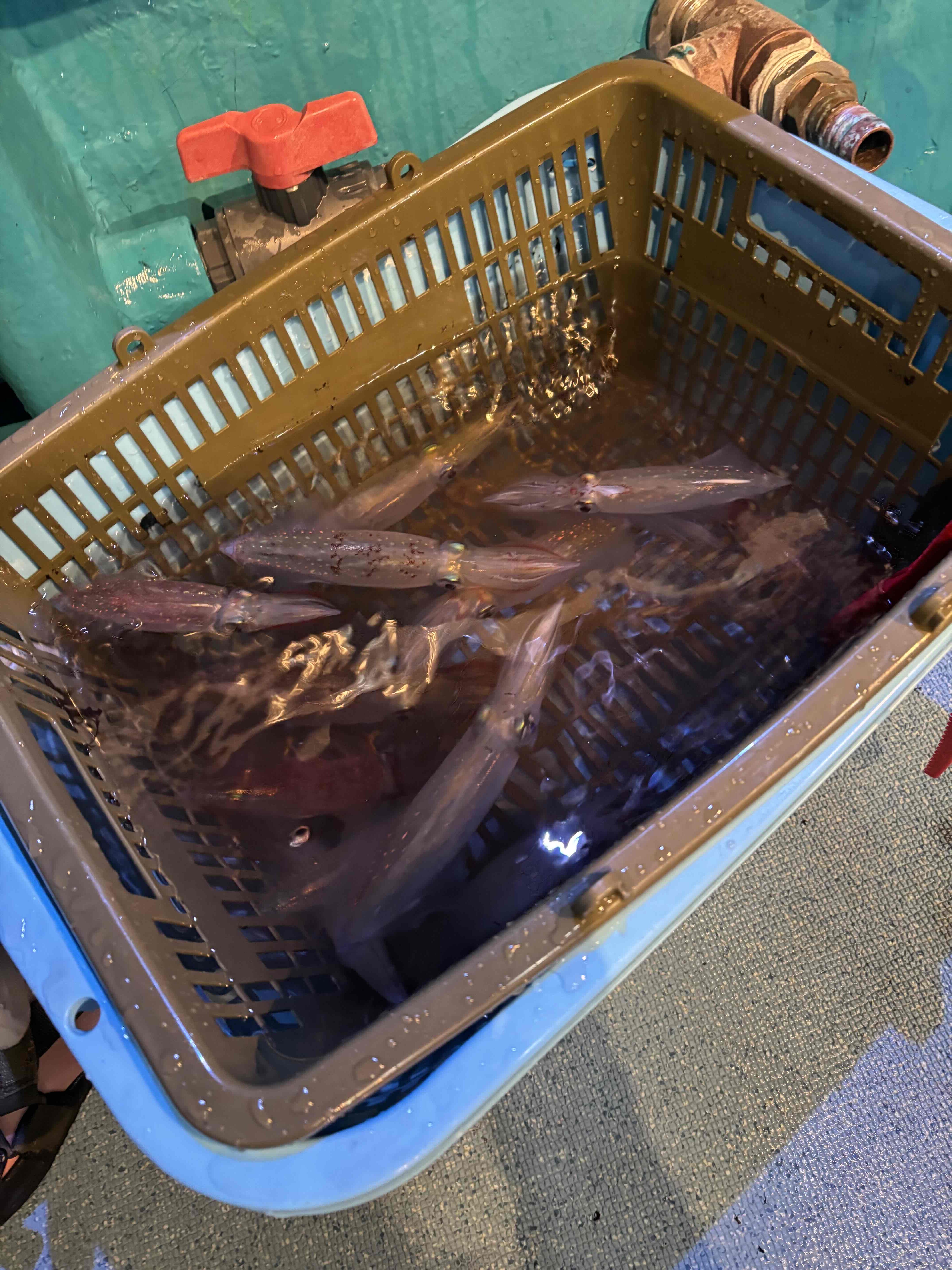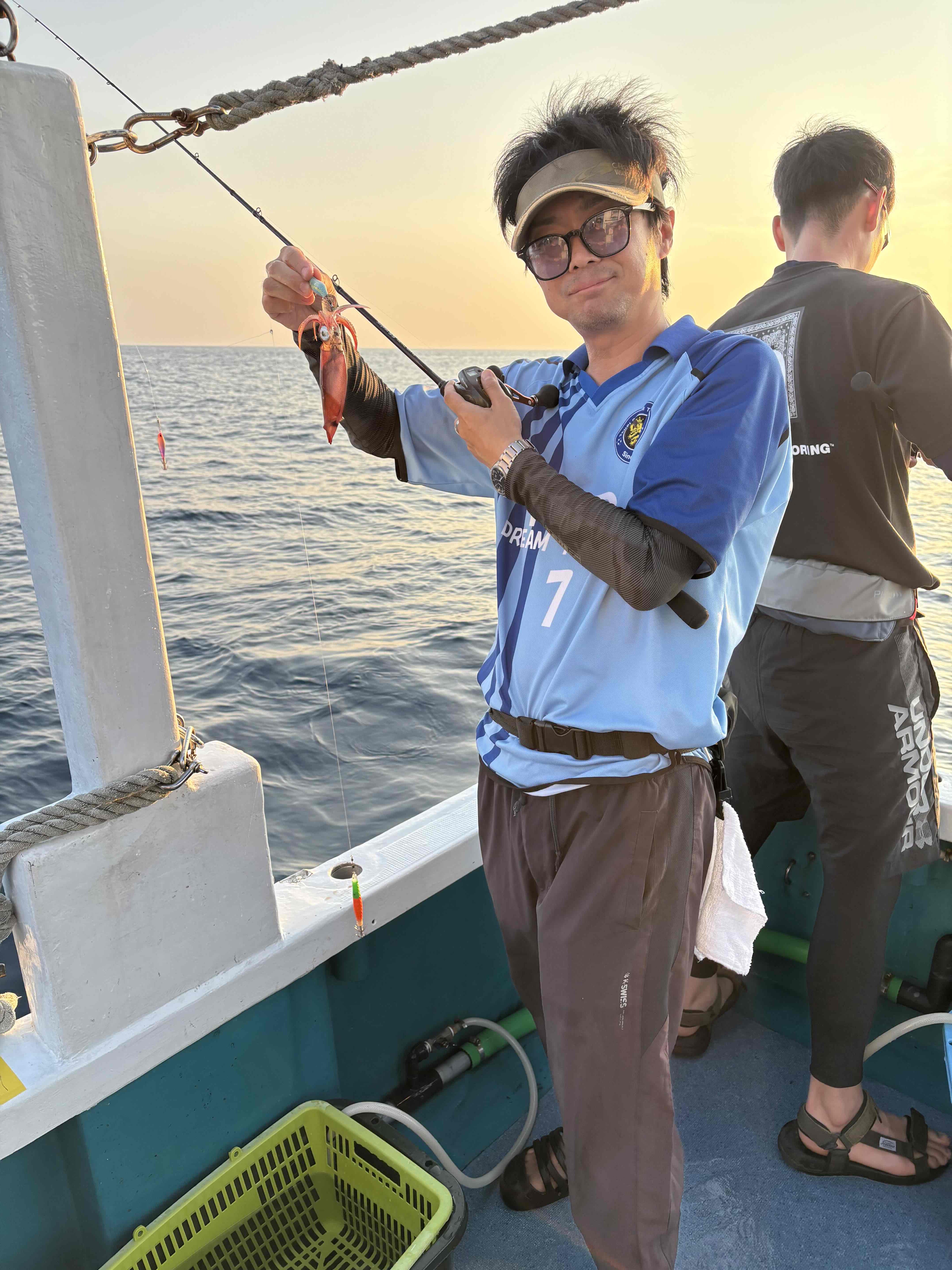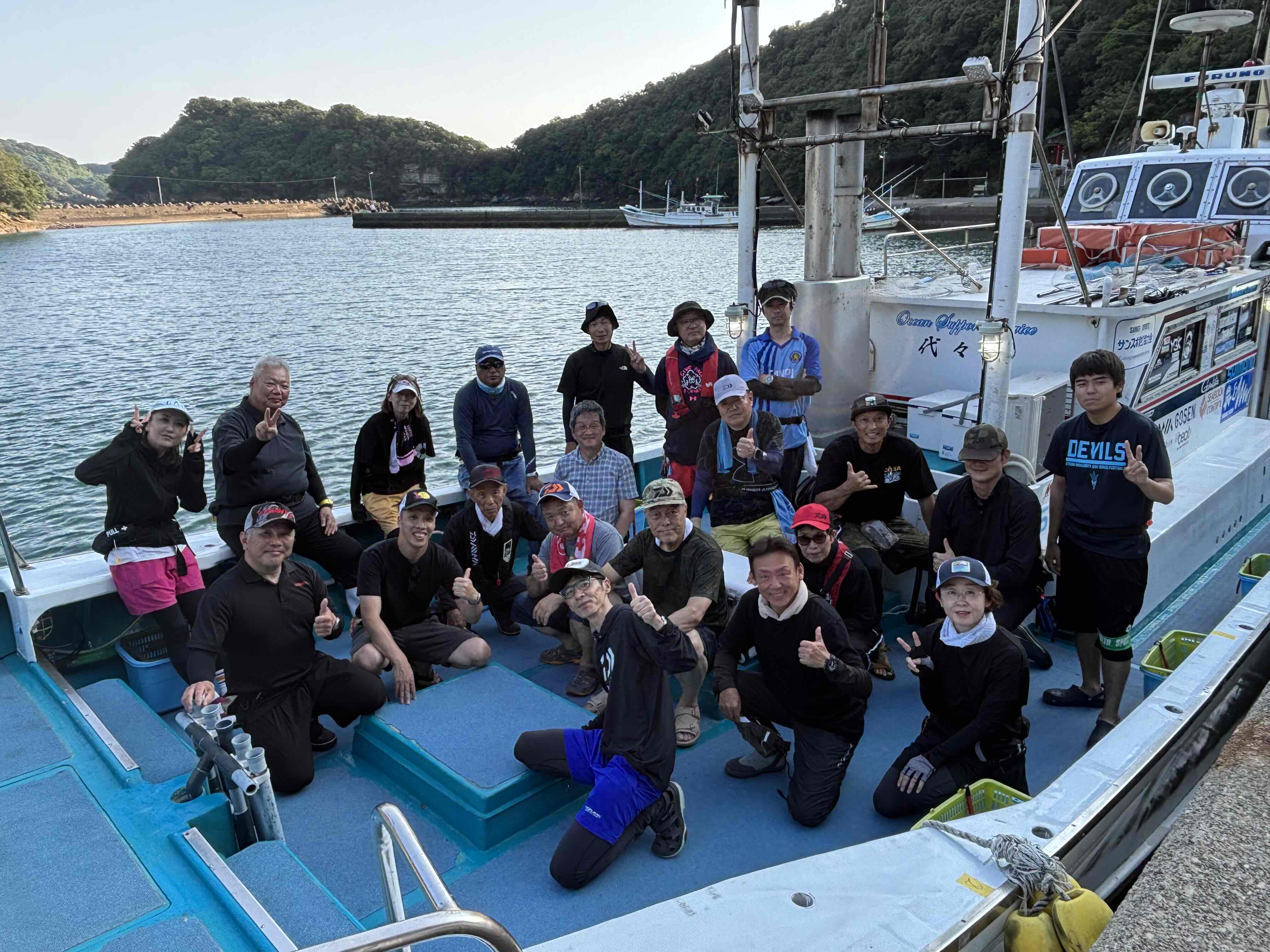 6時ごろ出船 ポイントは椿沖 まだまだ明るい時間帯からのスタート 初めての方もいるので釣り方、仕掛けのセッティング アタリの取り方をレクチャーしながらスタート 代々丸さんからのプレゼントもあり先着4名 いきなり早掛けがスタート 夕方でしたが早速ヒット、小型ながらマイカ 船中ポツリ ポツリと釣果が上がってきます。先着4名もアッという間に終わってしまいました。暗くなるとスルメがヒットし始めます。大型スルメも多くよく引きます。マイカも型が良くなりコンスタントに釣られる方は連続ヒットも この日は紫、ブルー系がヒットパターン しかし同じカラーばかりでは連続ヒットまではいかず、ヒットしていてもカラーチェンジは必要です。9時ぐらいにはマイカ、スルメ合わせて20杯超える方もありこのまま伸びてほしかったですが、後半は激渋 ポイントも大きく変えたりしたが変わらず。ゆっくりとした誘いで拾っていき数を伸ばすパターンでトップは30杯 スルメ込みで40杯以上の釣果を上げていました。平均マイカで15杯前後 初めての方でも15杯は超えていたので良かったです。 12時には港に寄港 片付けして解散となりました。 今の和歌山でのイカメタルは釣果ムラも少なくお勧めです。