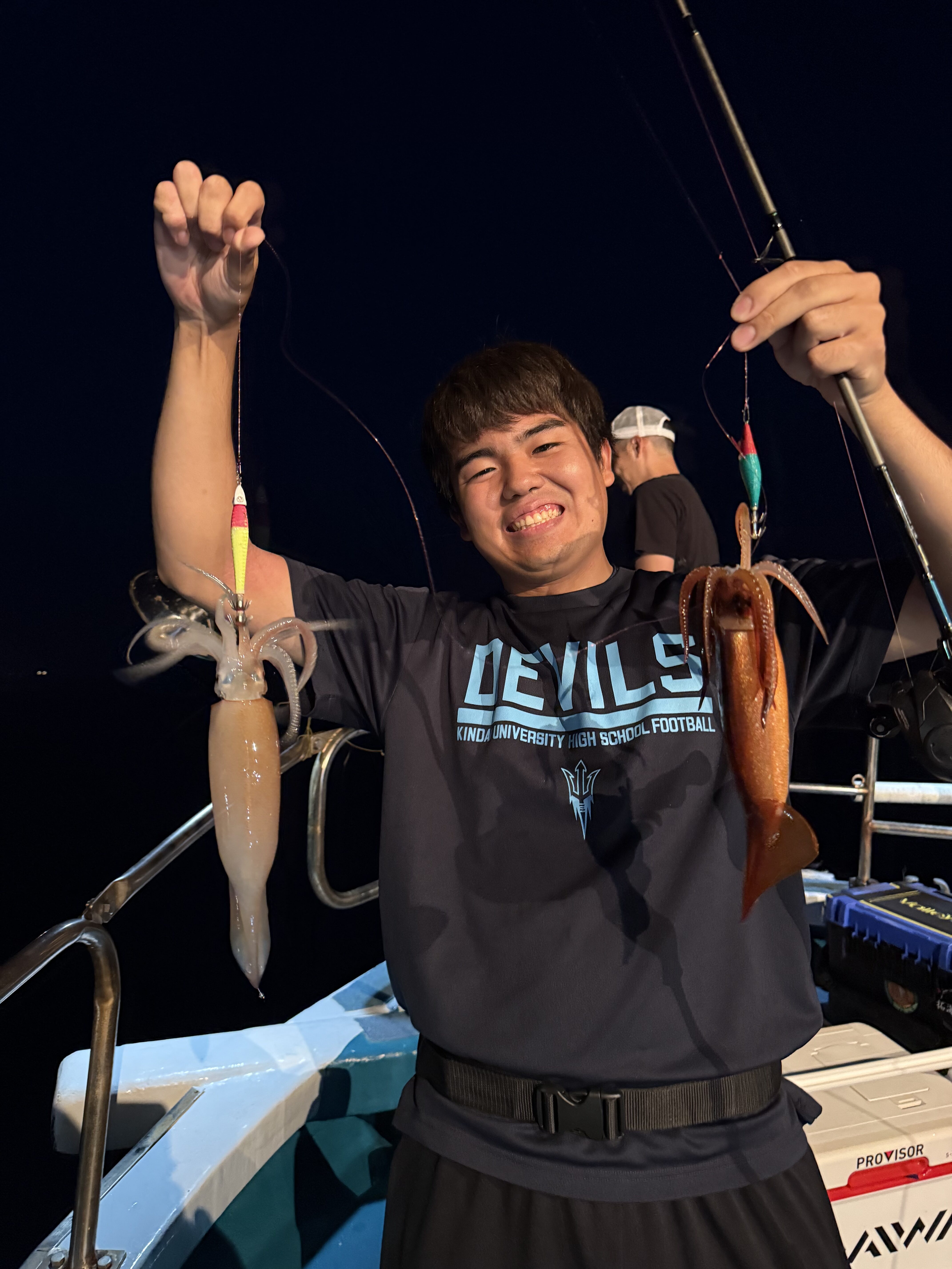 その後、完全に日が落ちて周りが暗くなってから、イカの活性が高くなり、中層前後はスルメ、底に近ければケンサキといった感じでポロポロと釣ることができました。