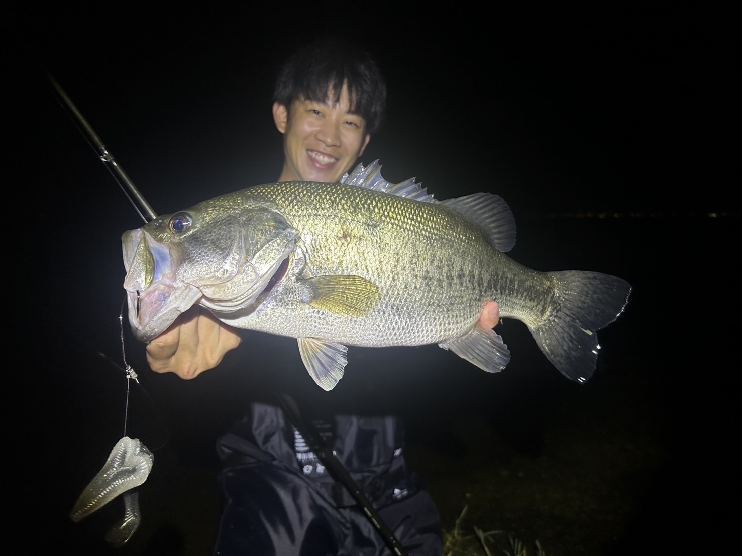 2025.07.07 印刷する スタッフお別れ釣行 魚種 ブラックバス サイズ 46cm 数 1匹 場所 滋賀県 天候 晴れ スタッフ 山上知哉 店舗 大津店 釣行日 2025.06.29 コメント こんにちは!ブンブン大津店の山上です。 6月29日、琵琶湖ナイトおかっぱりへ行ってきました。 この日を最後に大津店を去り、大阪の店舗へ異動することになったスタッフが居たので、僕ともう1人のバス担当2人で琵琶湖へ連れて行ってきました。 少しだけ風のある夜で、巻物にも反応しそうな雰囲気。チャターなんかも巻いてみますが、中々のウィード量で上手く巻けない状態に。 ただこのウィードを上手く躱せればバイトチャンスが増えそうだなということで、5インチハートテイルのノーシンカーただ巻きに変更。 変更後、コツンという小さなバイトがあり、より集中してやってみると答えはすぐに帰ってきました。 ウィードを抜けた後にコンッとバイト!小ぶりでしたがアフター回復のよく引くバスが釣れてくれました! その後も粘ってみますが反応なし。 釣ってほしかった主役は悔しそうで、またリベンジに来てくれそうです。 暑い日が続いていますが、バスの調子は上向きですよ! ピンスポット狙いもいいですが、巻物でひたすらランガンでも答えは出やすいかもです! 是非皆様も琵琶湖釣行へ! 使用した釣具 ロッド [レジットデザイン]ワイルドサイド72MH リール バンタムHG ライン フロロ16lb ルアー 5インチハートテイル