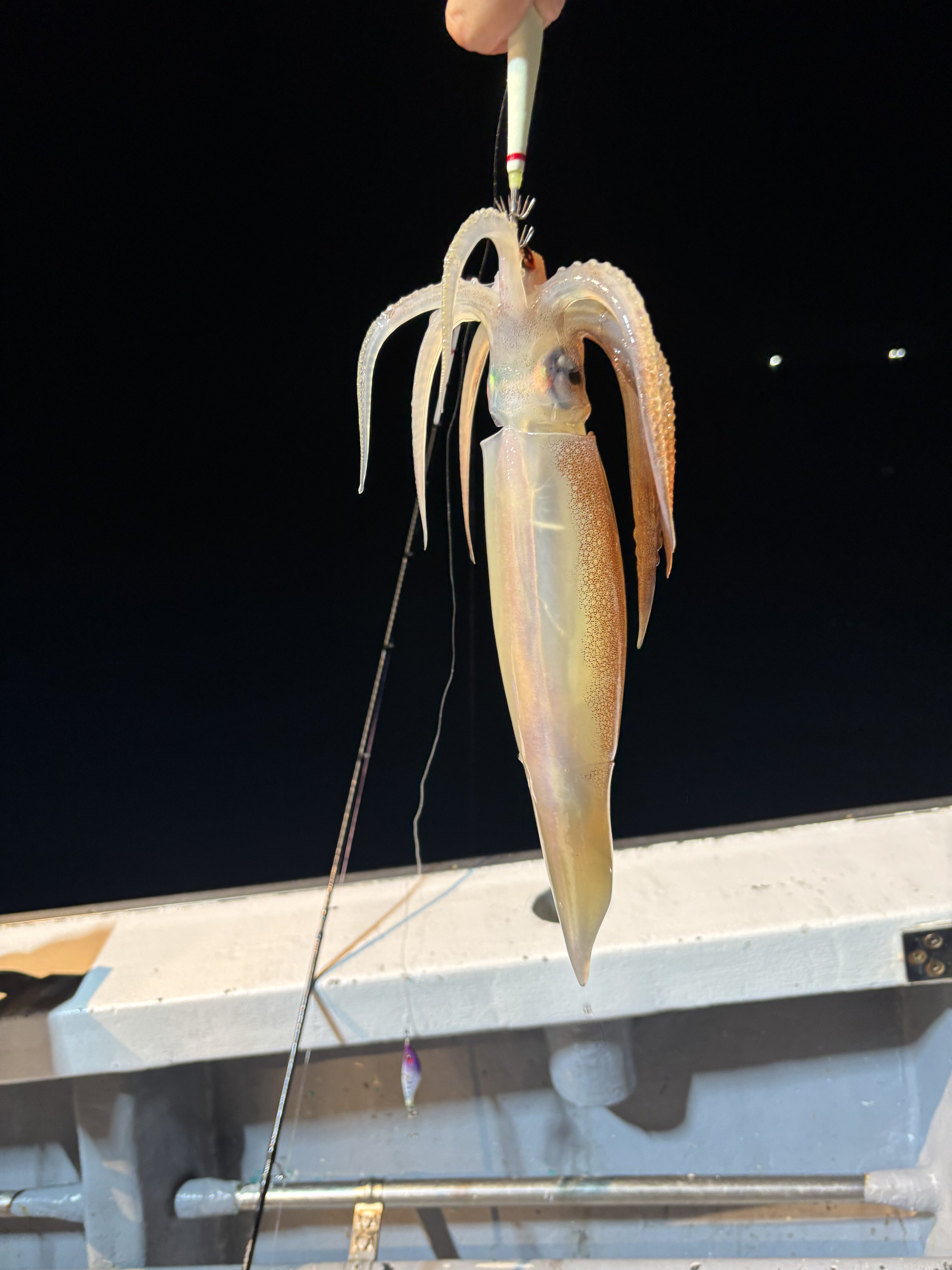 時おり大型のスルメイカも混じる中、ケンサキイカをコンスタントにヒットさせていきます。