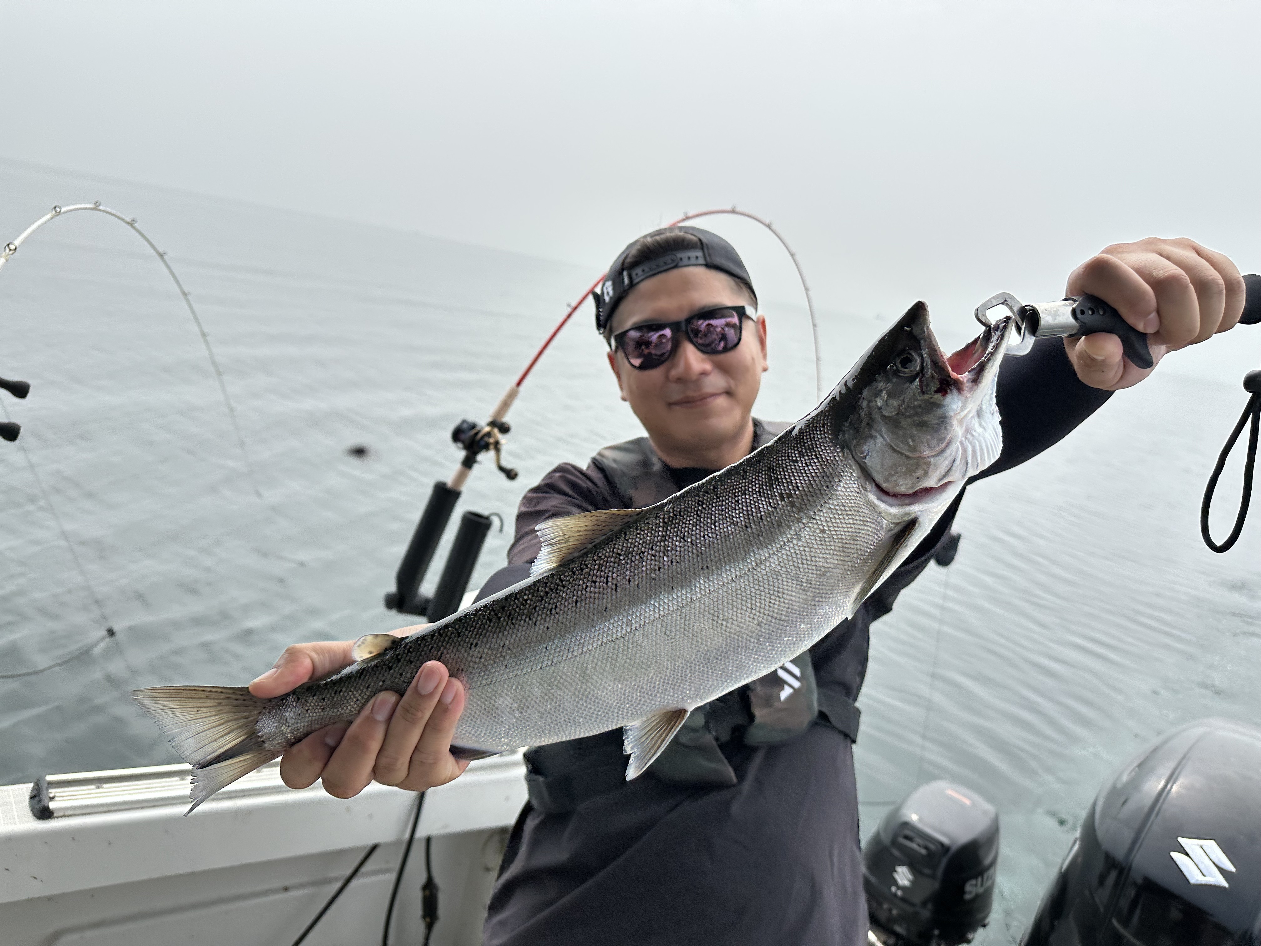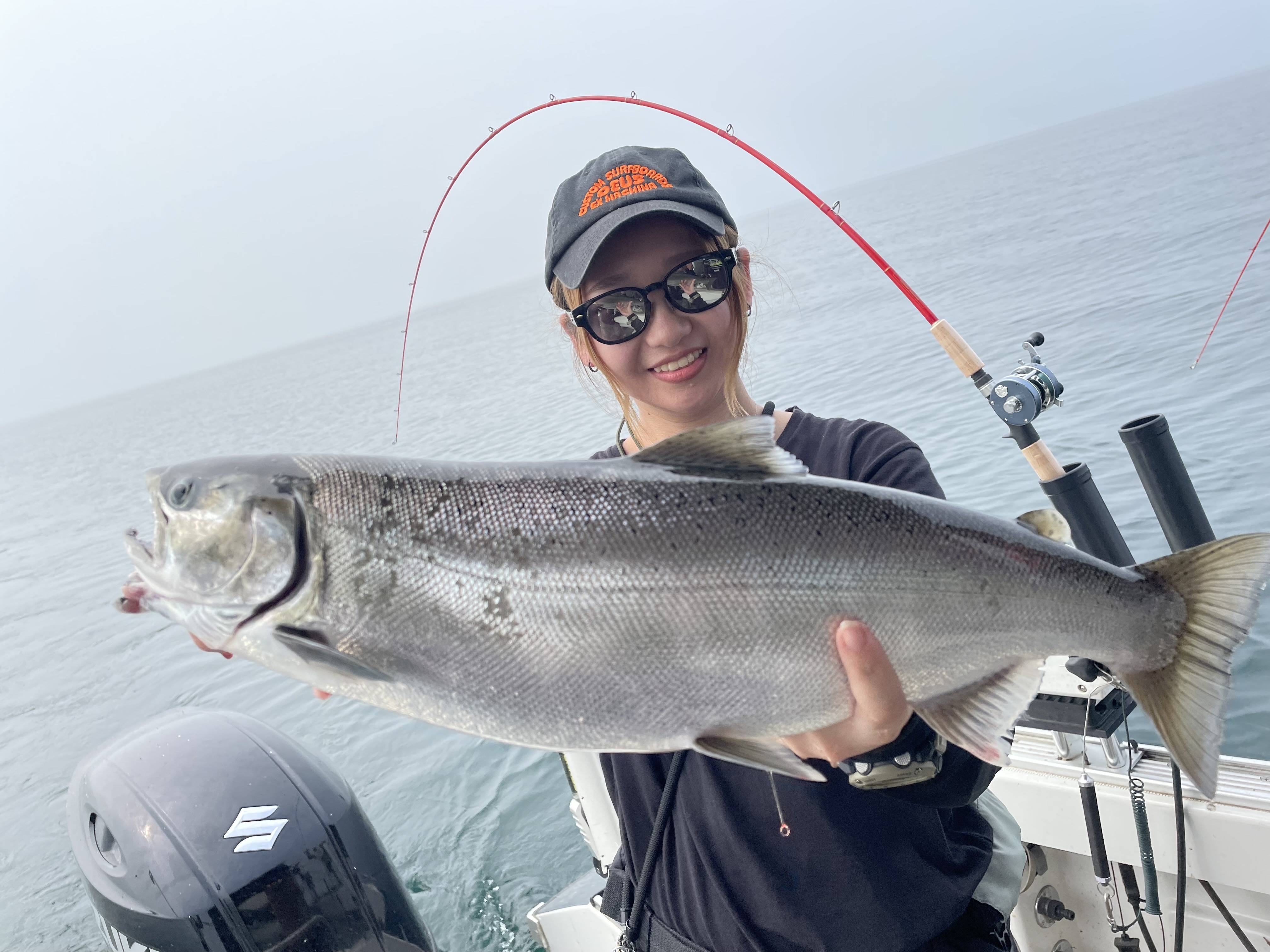 船長にかなりご指導をいただき、なんとかビワマスをキャッチしていきます!