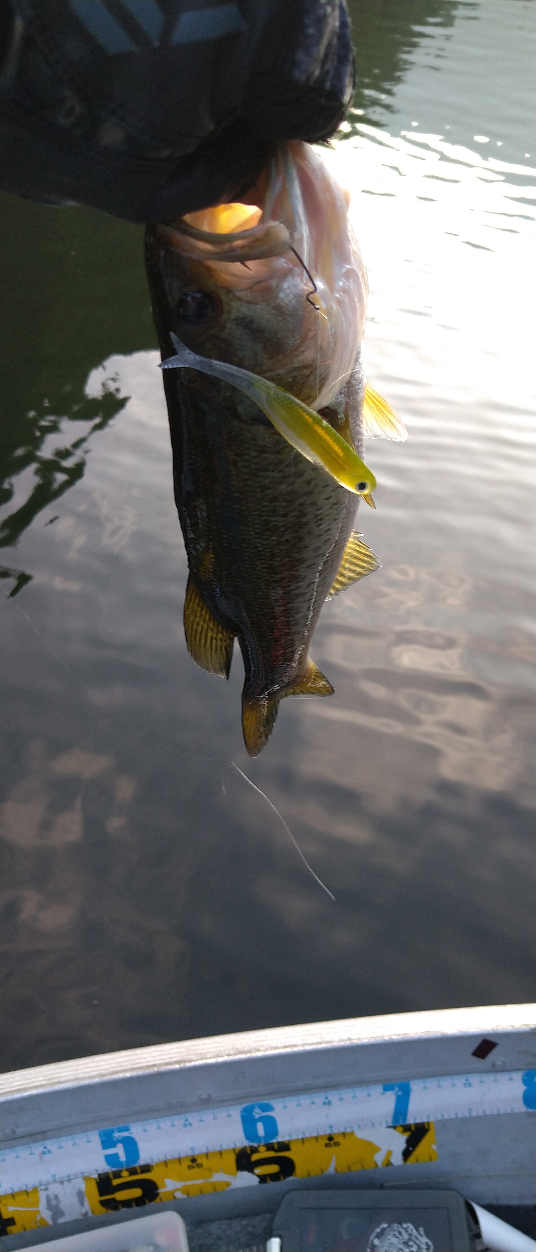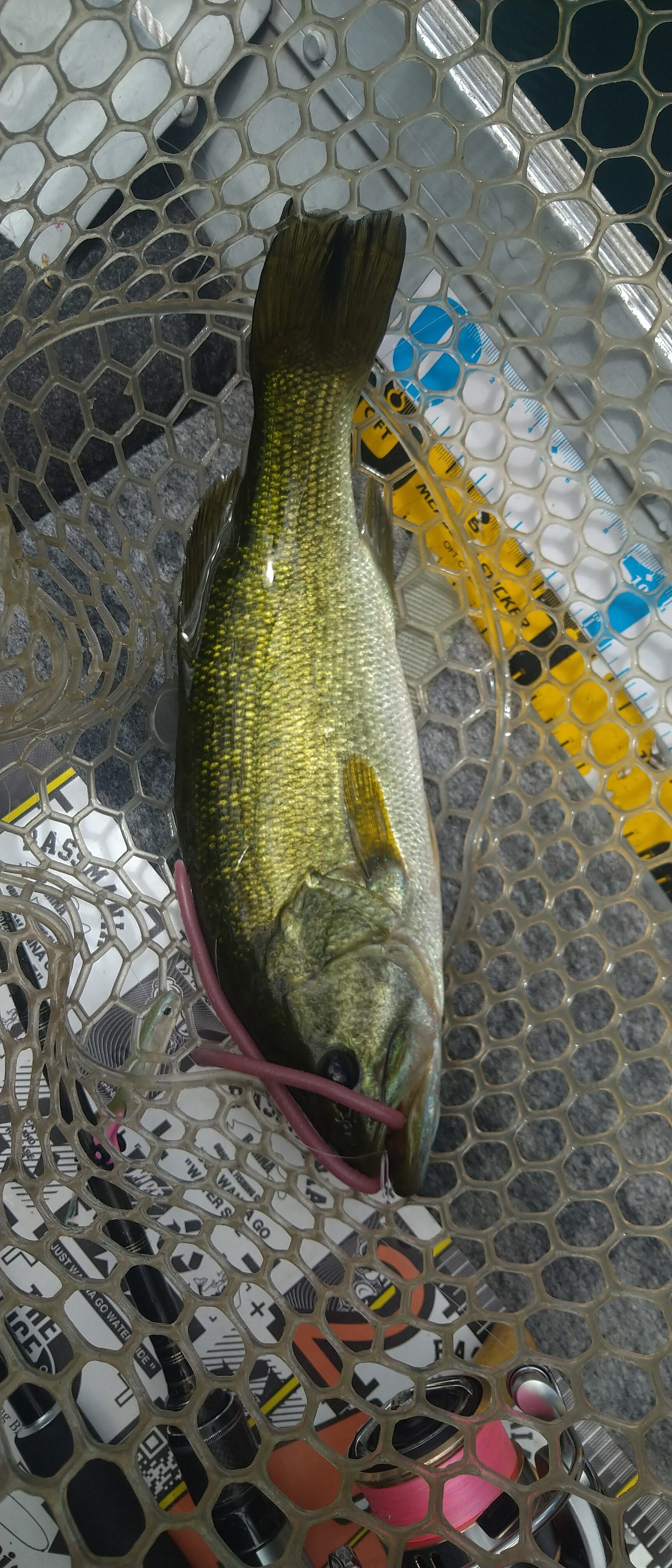 - レインボーシャッド3(ノーシンカーピクピク)、ドライブスティック3〜3.5(ノーシンカー)、ヴィローラ2.8(0.6gi字引き)、スワンプスキニー9(1.3gネコリグ)