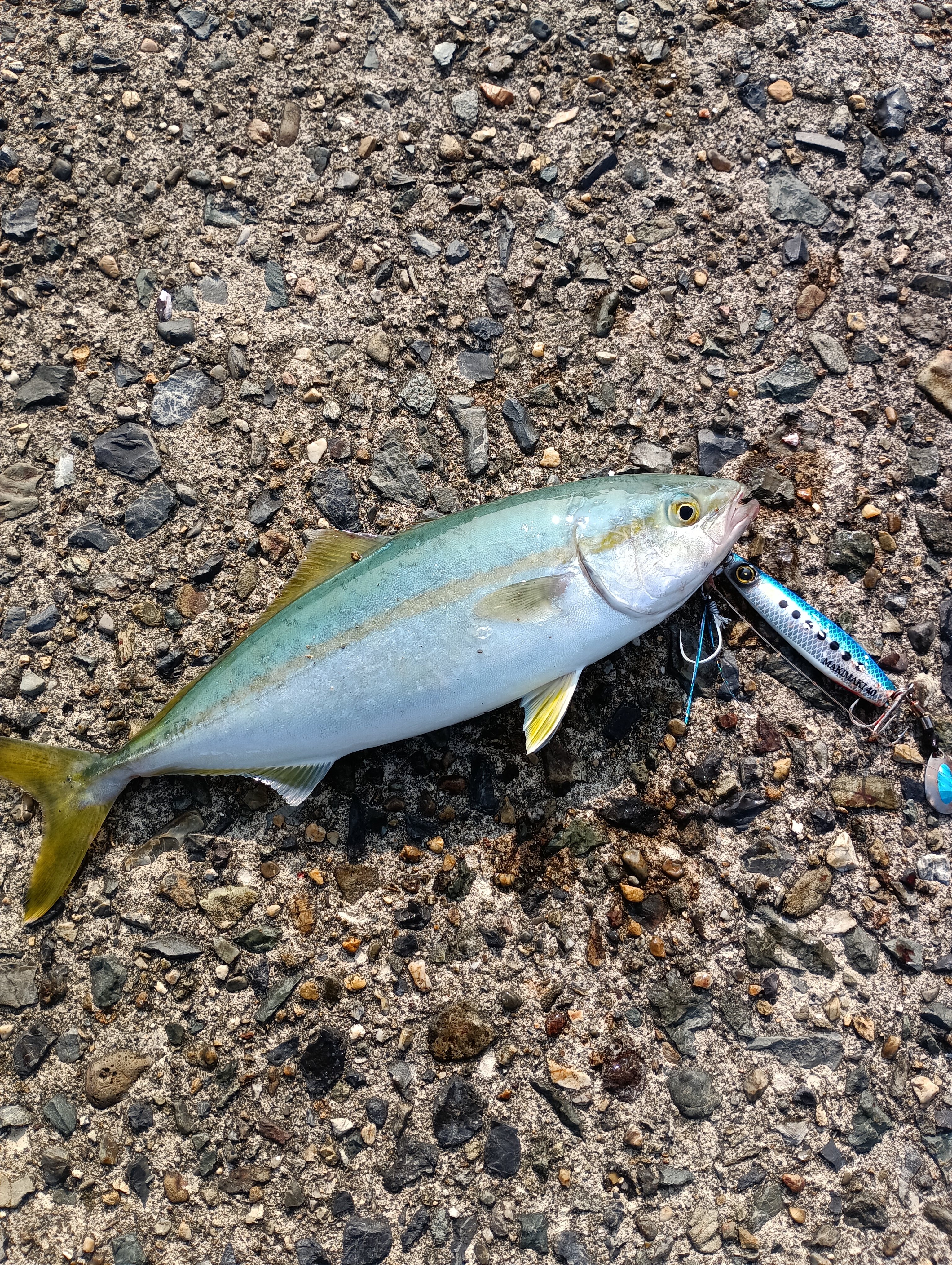 前回も反応良かったジャックアイマキマキ40gを中心に色々試すも、朝マヅメはベイトも見られず時間だけが過ぎていく。