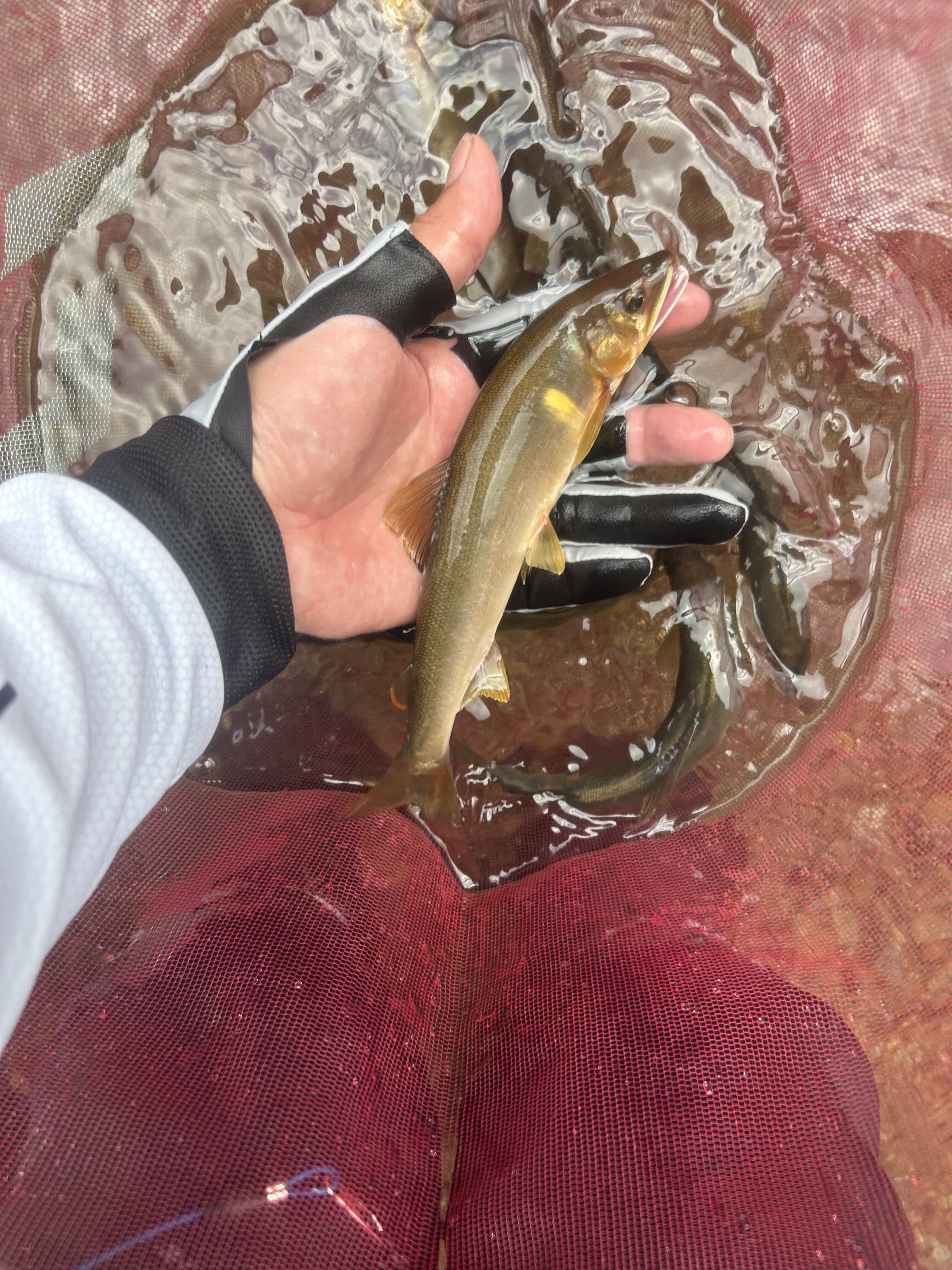 2025.07.14 印刷する 高見川 魚種 アユ/鮎 サイズ 20cm 数 17匹 釣り方 友釣り 場所 奈良県 スタッフ 三宅博英 店舗 高井田店 釣行日 2025.07.12 コメント 雨が降らない猛暑が続くなか、渇水な高見川にいってきました。 今回はきっちり夕方まで釣りをしていきます! 最初に入ったのは一笑さん前の瀬から。渇水なので、そこまで流れはなく、下からゆっくりとオトリを放して上飛ばしするとビュン! しかしバレてしまいました。気を取り直して、オトリの交換を目指して攻めていきます。 瀬尻の方で1発掛かりました。ふと川の奥のほうのドチャラを見てみるとそこだけヤケに綺麗な石に見えます。ちょっと入れにくい場所なので空中輸送でオトリを送り込むと一瞬でドンっ!また入れ替えてピューン!7匹の入れ掛かりでした。畳2枚くらいのスペースでこんな掛かるとは。竿抜けだったのか… その後、上の岩盤エリアで泳がせするも撃沈。 オトリを弱らせないうちに下の瀬に移動。そこで3匹掛けて、気づけば2時過ぎ。昼休憩をして場所移動。ヘリポート前に。これが失敗。 オトリがヘロヘロに…しまった…。なんとか元気な子を使ってポロポロ追加。結局17匹で終わり。あのまま一笑さん周辺をうろうろしてるのが正解だったようで、80匹を釣られた方がいたようです。また行って来ます。 使用した釣具 竿 銀影競技A H85 水中糸 アーマード 0.08号 針 スピード6.5号