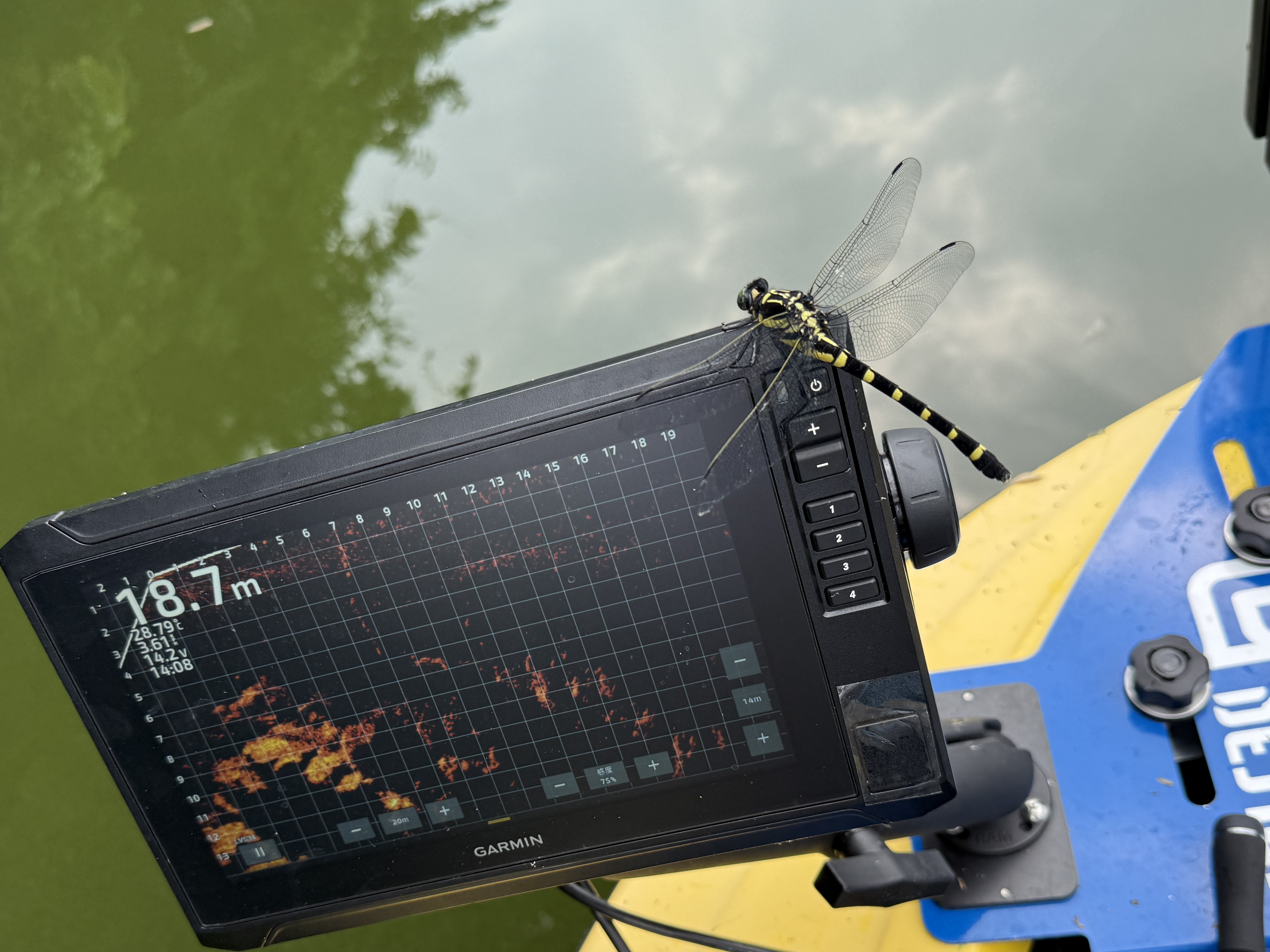 トラファルガーの水面ピクピクで50UPのバスが見に来ますがあと数センチのところで見切られてしまいました。