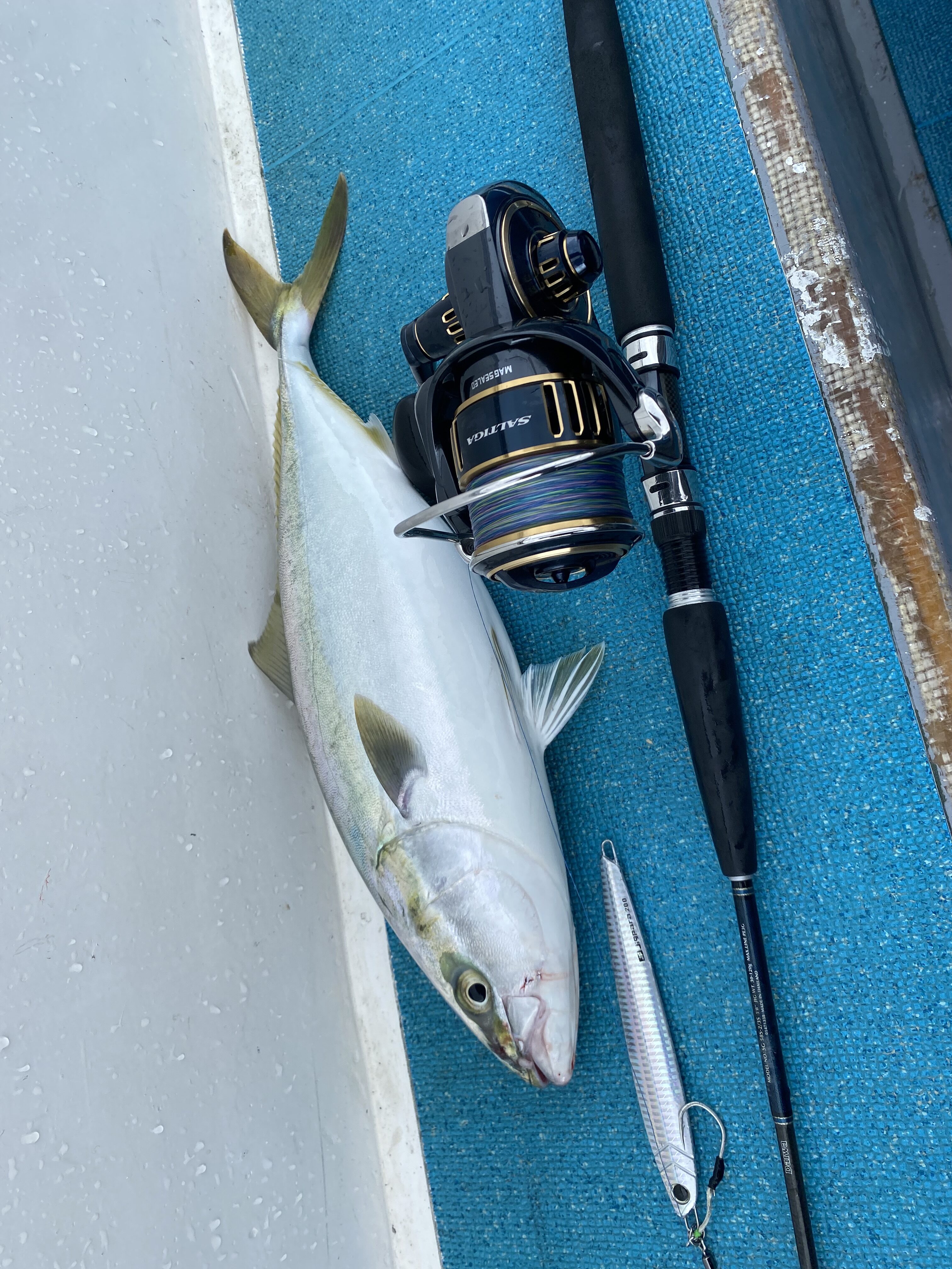 2025.07.16 印刷する 明石で25ソルティガを初使用! 魚種 ブリ/メジロ/ワラサ/ハマチ/イナダ/ツバス/ワカシ 数 ハマチ/3匹 釣り方 ☆その他オフショアルアー 場所 兵庫県 スタッフ 今中颯 店舗 高槻店 釣行日 2025.07.14 コメント お疲れ様です。高槻店今中です! 今回は明石の激流ポイントで25ソルティガ10000-Hを初使用しました。 お世話になったのは、岸和田から出ている「ふじたや」さんにお世話になりました。船長は高槻店の宮崎さん。今回は「ふじたや明石ジギング特別便」で出船しました。 午前中、明石の小磯エリアへ。流れが速く、根掛かりもしやすいためスピニングタックルで使用するのはオススメしませんが、巻が軽くなったと噂のソルティガなら行けるだろうと使ってみました。 結論から言うと、やばいこのリールです。 激流の200gのジグ、かなり抵抗があるため巻きの力も必要ですが圧倒的に軽い。ハイギアとは思えない軽さ、重心バランスもしっかり設計されているため手元の負担も少なくしゃくりやすくなっていました。 さて釣行に戻って、午前中は明石の小磯エリアのポイントを転々としましたがベイトの反応はあるが出ない。船内でも数本しか上がっていませんでした。 昼過ぎになった頃、青物好反応!次々とヒットする同船者がいる中、やっとヒット‼️ 明石の海峡下の青物はハマチサイズでも激流でブリクラスの引きがありますが、全くお構い無しに巻ける巻ける笑 さすが25ソルティガです。 その後も当たりは続き、2バイト3キャッチという渋い中でもなかなか良い釣果でした。 どれも25ソルティガで掛けたため疲れはかなり軽減出来ました笑 気になった方は是非当店で巻いてみてください。空巻きでも良さが分かると思います。 使用した釣具 リール 25ソルティガ10000-H ロッド ソルティガ58S-2/3S ライン XBLADEペンタグラム2号