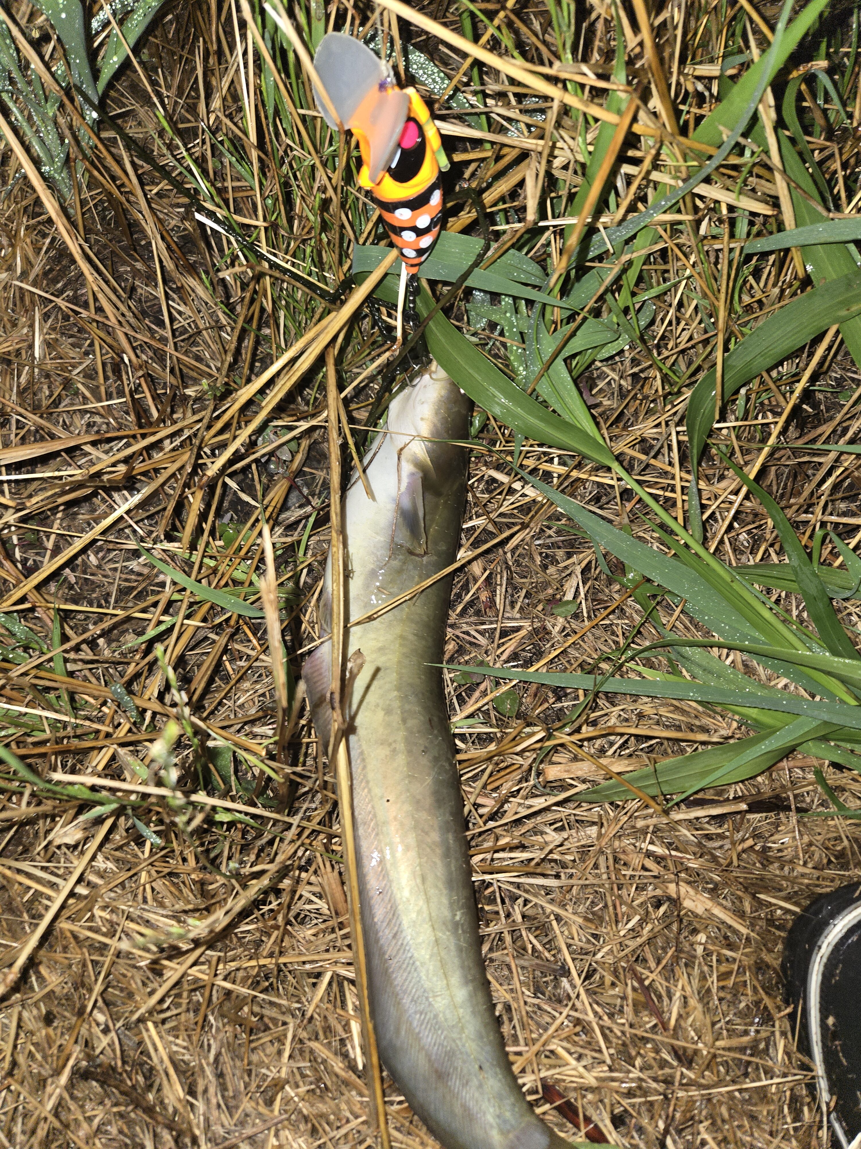 2025.07.17 印刷する 鱸が頭なら鯰はお尻 魚種 ナマズ 場所 埼玉県 スタッフ 金井夢亜 店舗 埼玉狭山店 釣行日 2025.07.16 コメント こんにちは狭山店金井です。 今回もナマズ釣りへ行ってきました。 流れ込みだけ打っていき短時間で楽しむことができました~ 使用したルアーはジャッカル/ナジーバグ ロデオクラフト/ぷっぷ このふたつでした。 前回も書いたように着水音と着水点だけ気を使って釣っていくと開始10分ほどですぐ一匹目を釣ることができました。 それとここ最近のフックセッティングとして フロントのフックを外し、後ろのフックとリングの間にキャロスイベルを挟んで使用するチューンが針同士が絡むこともなく掛かった後もバれる率が低いのでお勧めです シーバスの流行りがヘッドショットなら ナマズはヒップショット?みたいな名前にしておきます(笑) 使用した釣具 ロッド セルバMH リール アンタレスDCMD