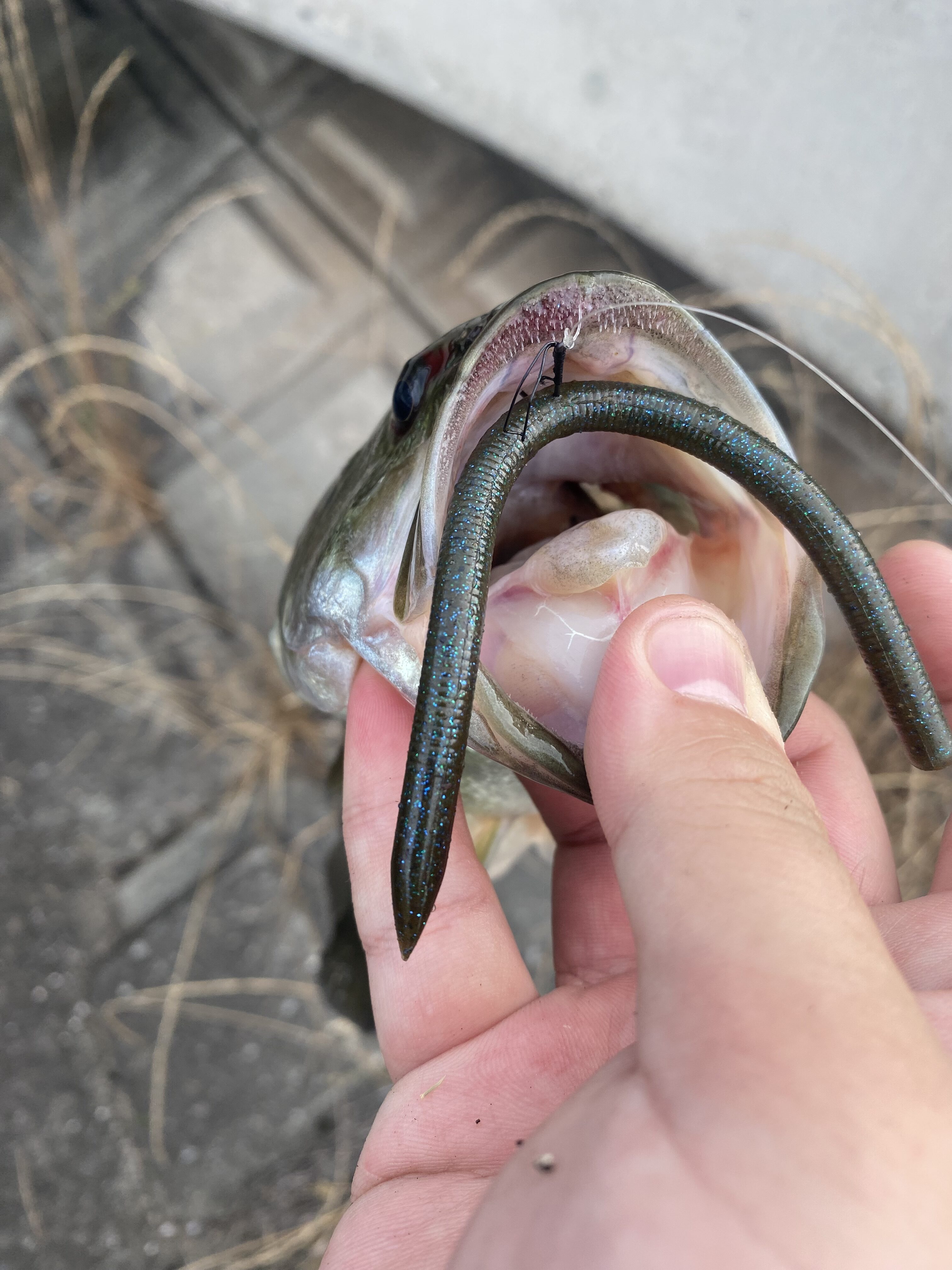 さ2匹目はサイト!!スクールを見つけ進行方向にストレートワームを投げ即バイト!かわいいサイズですがコンディション良きです。