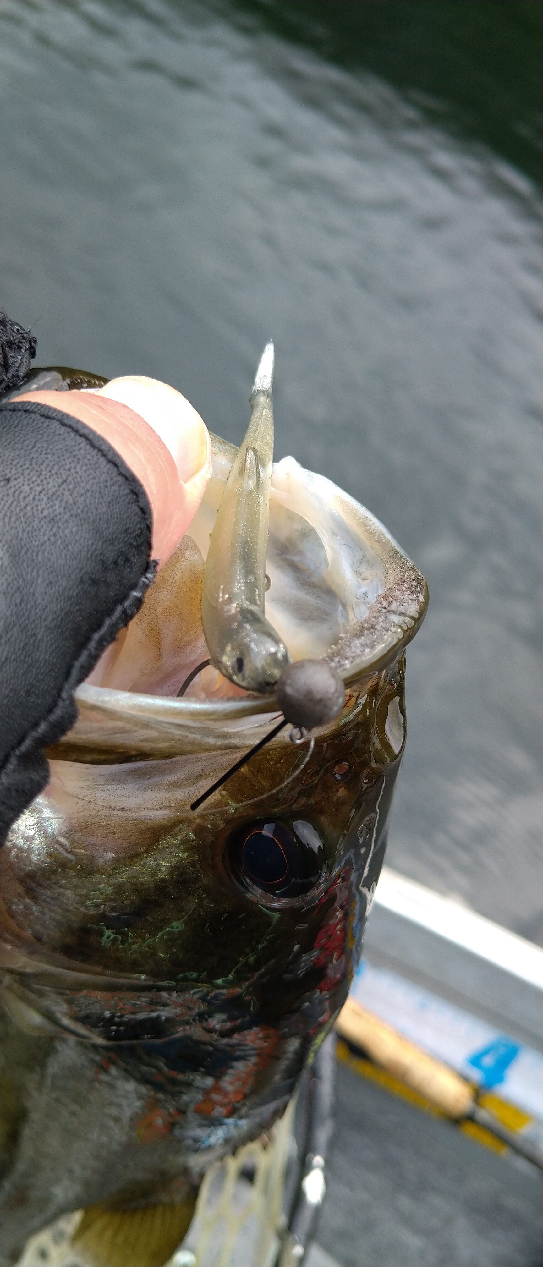 釣果は朝一、北山川の上流域の流れ込みに、早い流れに負けない重さとアピール力の、ヤーマンスティック12インチ14gフリーリグ