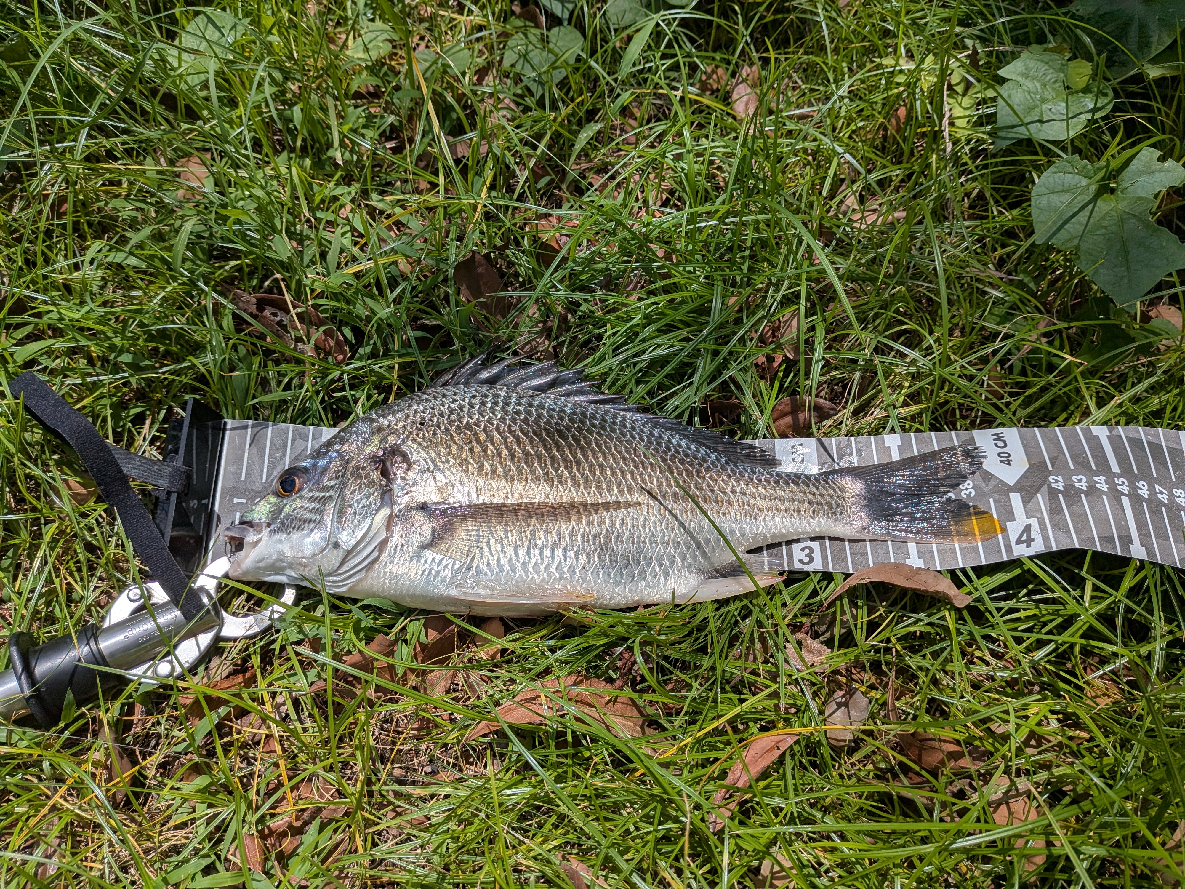 2025.07.22 印刷する 大阪湾岸チニング7月18日【ブンブンオリジナル品紹介】 魚種 クロダイ/チヌ サイズ 45 数 キビレ3本 釣り方 ☆チニング 場所 兵庫県 天候 くもり スタッフ 厨 宏樹 店舗 関西 西昆陽店 釣行日 2025.07.18 コメント こんにちは。西昆陽店の厨(くりや)です。 今回もデイゲームのチニングです。先週開始1 時間も経たないうちに大雨が降ってきて1匹釣れて退散したポイントへ行きました。 午後1時頃にポイント到着。最近釣れすぎる事を発見したゲーリーヤマモトのイモ40を使ったイモチヌで釣っていきます。 開始早々に手堅く40センチあるなしのサイズ! さらに強い引きで45センチ!キビレは45センチ超えると引きも強烈です! ポイントの端までで2本!今日は水が澄んでいます。濁っていた方が釣りやすいです。 スタート地点に戻りながらもう1匹40センチオーバー。すると先週同様にまた雨が降ってきてしまいました。 1時間程で良型3本を揃えられたので撤退しました。 新たなランディングネットを導入。 ブンブンオリジナルオーバルランディングネット。 3サイズ展開のSサイズです。網目が細かいので例えばチニングのフリーリグなどでシンカーが網目を抜けて絡まるトラブルなどが少なく、適度に水切れがよく使いやすいです。 チニング・ライトゲーム・ブラックバスなどにぴったりですが網の深さが40センチあるので不意のシーバスなどにも対応しています! ぜひお買い求めください。 使用した釣具 竿 ブルーカレント82B リール SLX BFS XG左 道糸 PEライン0.6号 ショックリーダー フロロカーボン1.5号 ルアー イモ40 ランディングツール マルチランディングシャフト450、ブンブンオリジナルオーバルランディングネットS