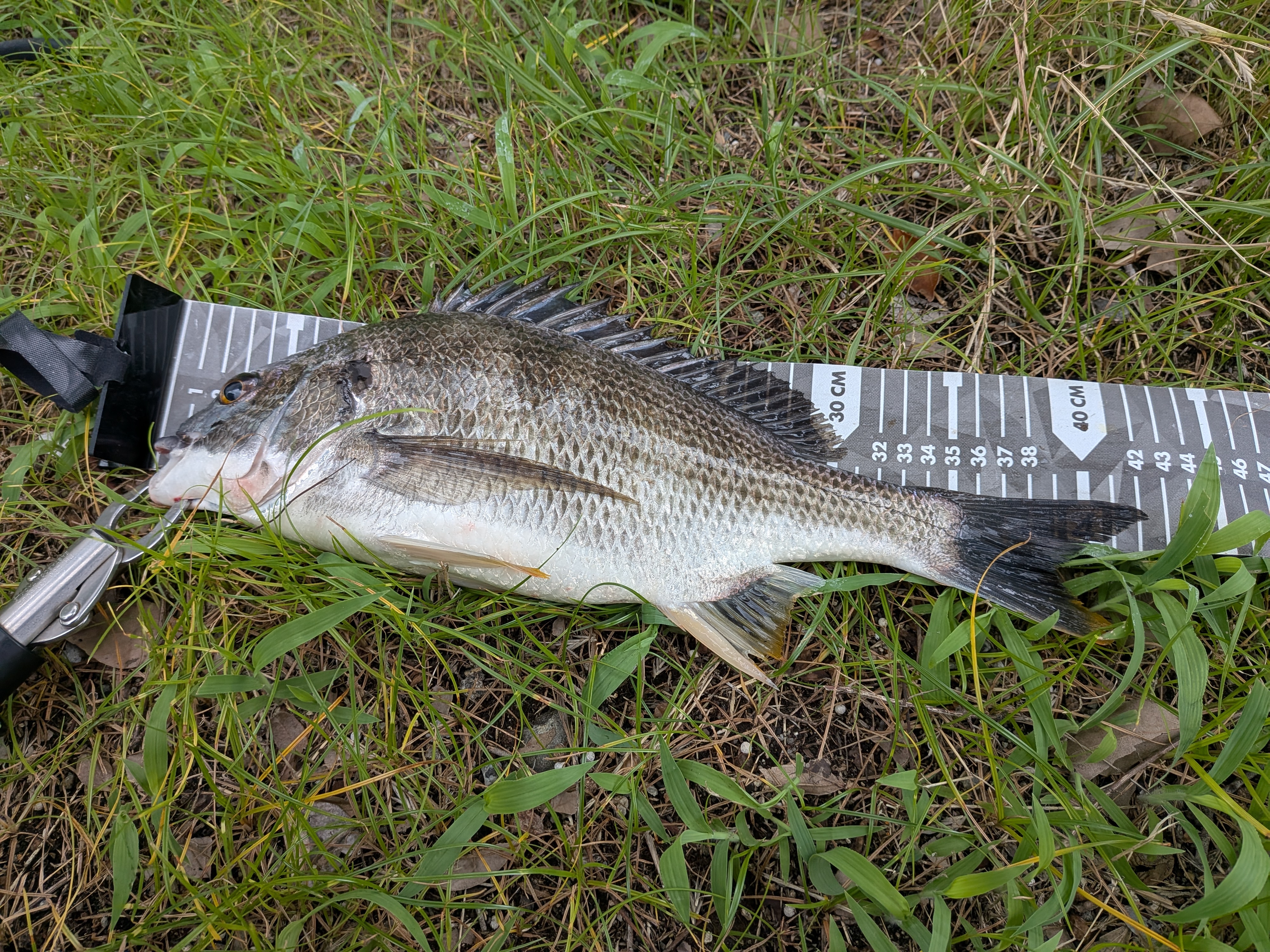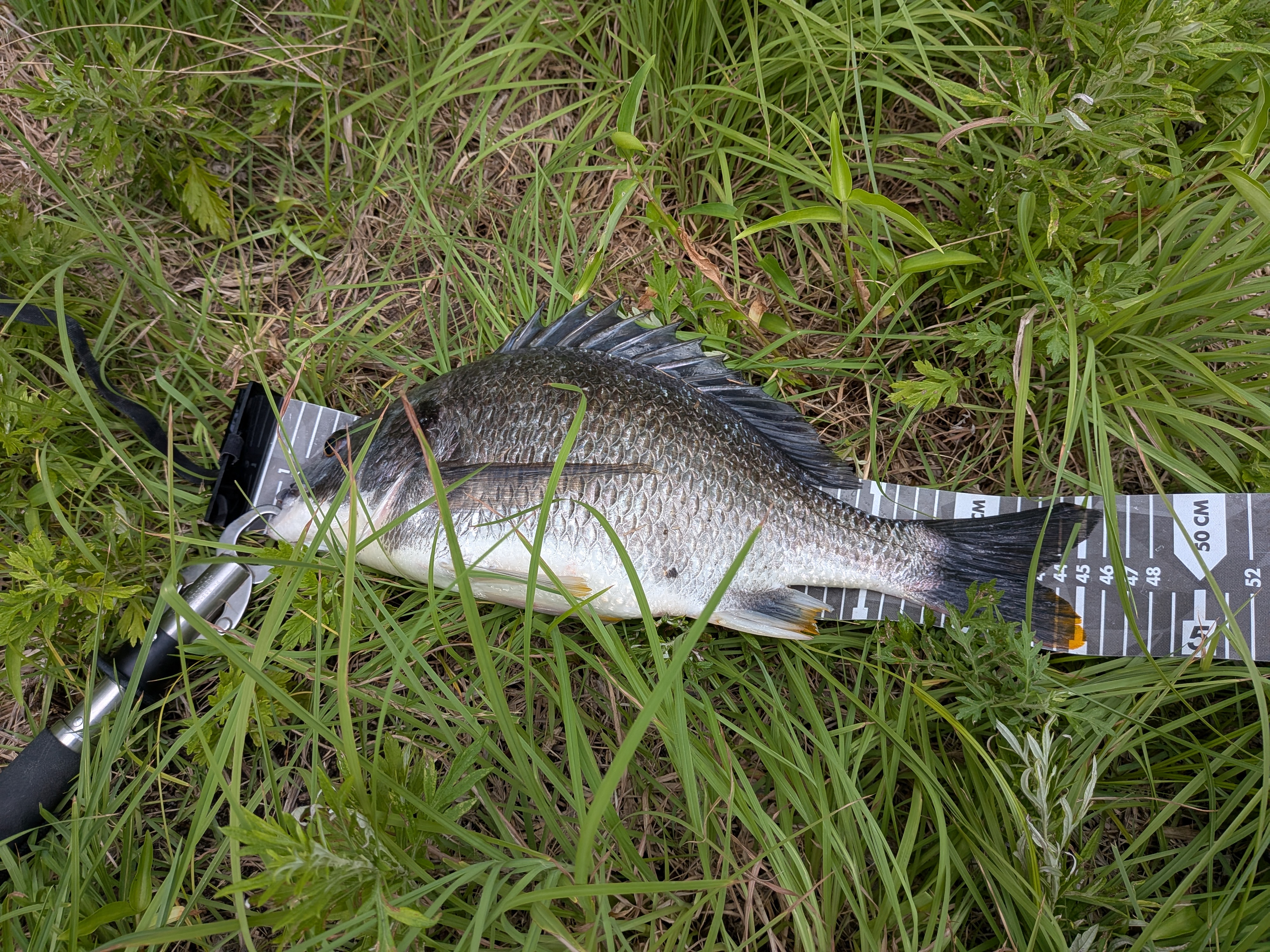 さらに強い引きで45センチ!キビレは45センチ超えると引きも強烈です!