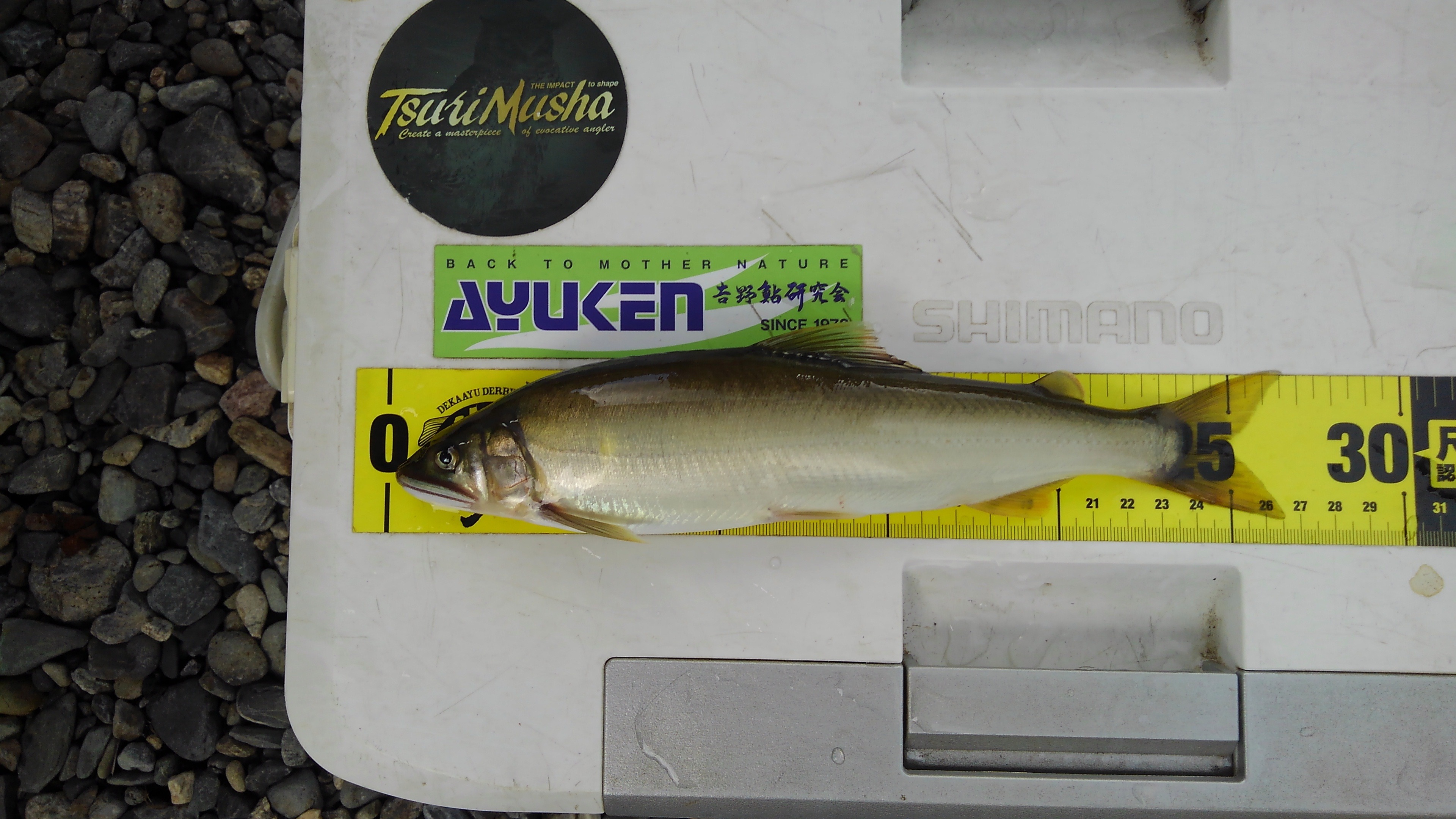 オトリも弱いので、瀬落ちからのゆっくりの流れを泳がせで丁寧に石周りを探っていくと、22センチまでの鮎がポロポロ掛かってくれます。瀬の中でやっていた方々は25センチ絡めていいサイズの鮎を連発させていたようです。やはり強い瀬はいい鮎が入ってます!