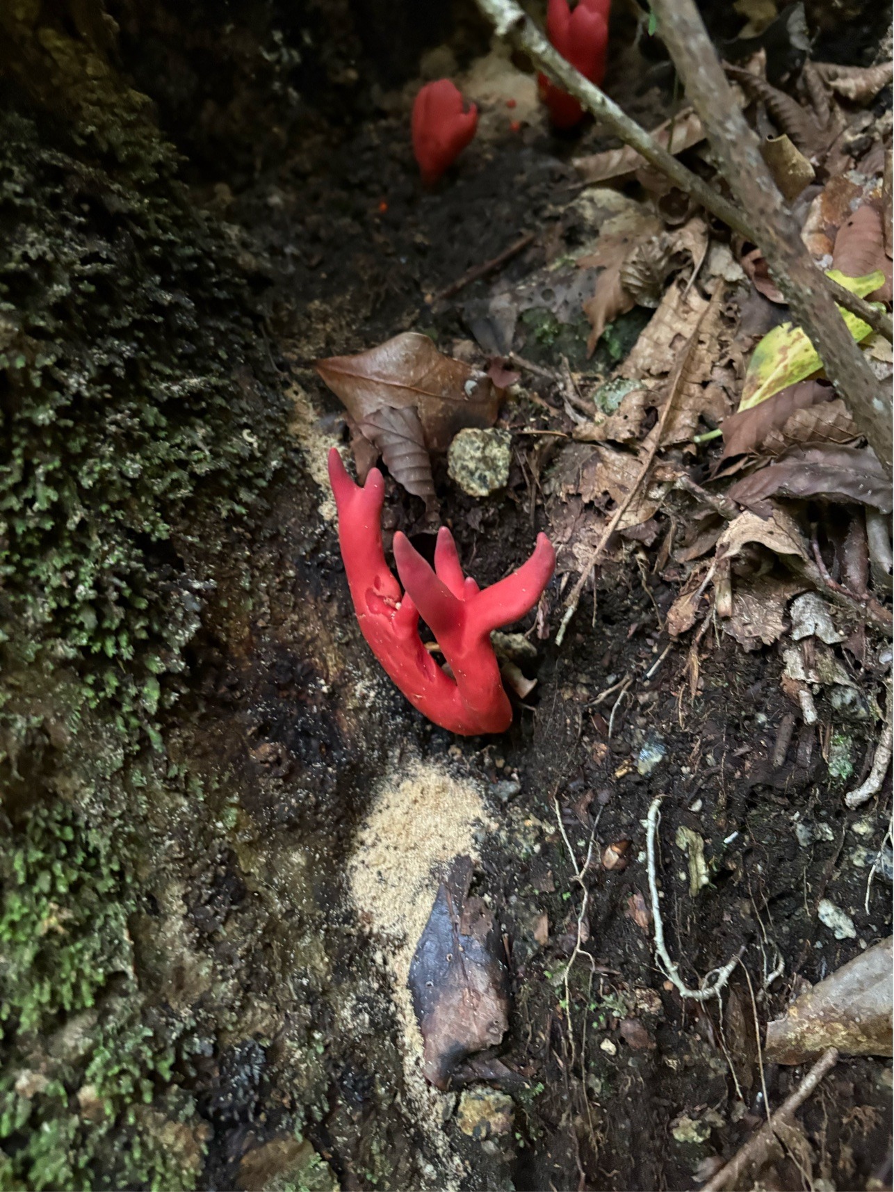 一時期ニュースなどで話題になっていた毒キノコのカエンタケが生えていました。 鮮烈な赤でとても見応えがあります。 このように自然を身近に感じられるのも渓流釣りのいいところですね!