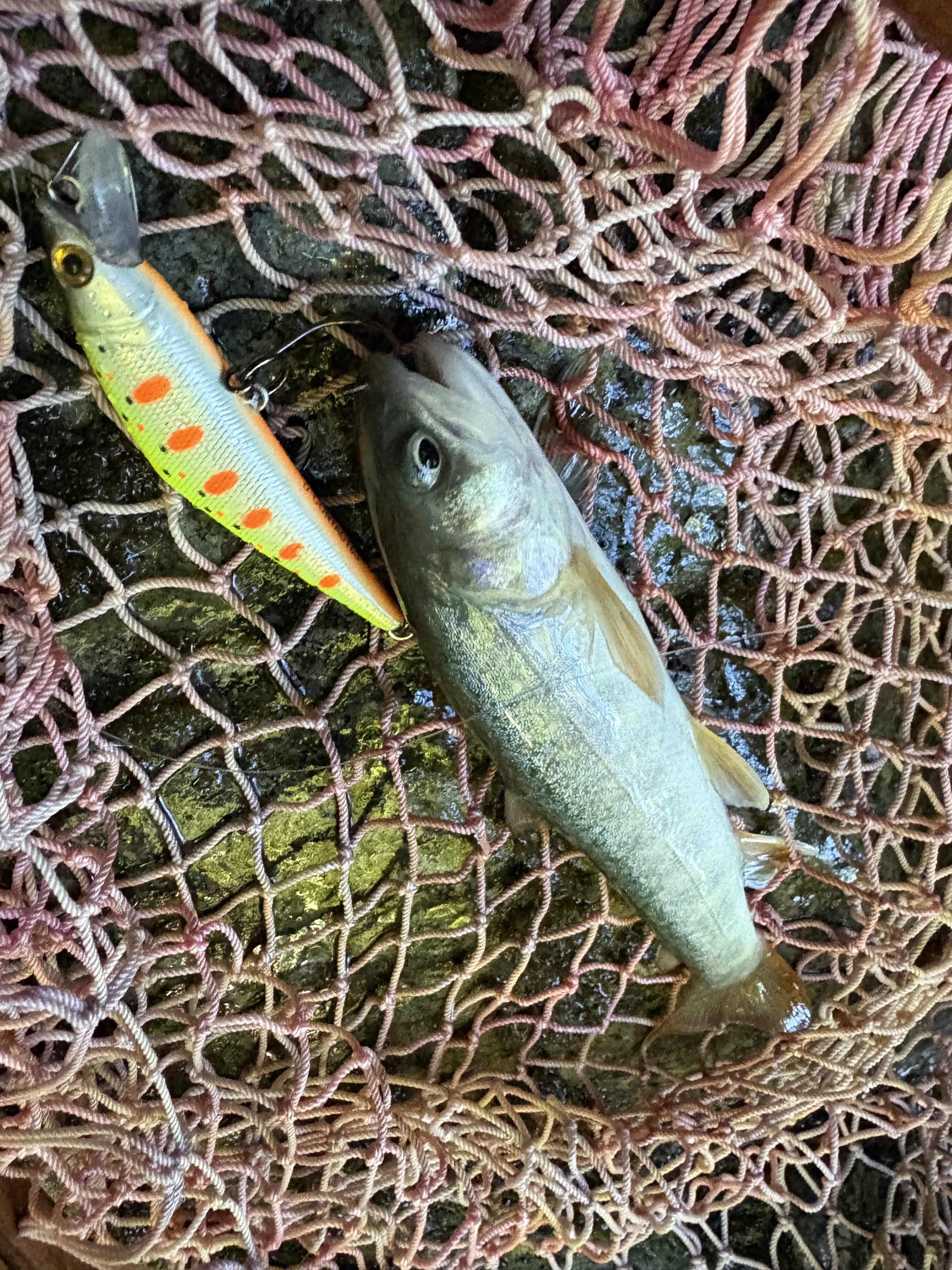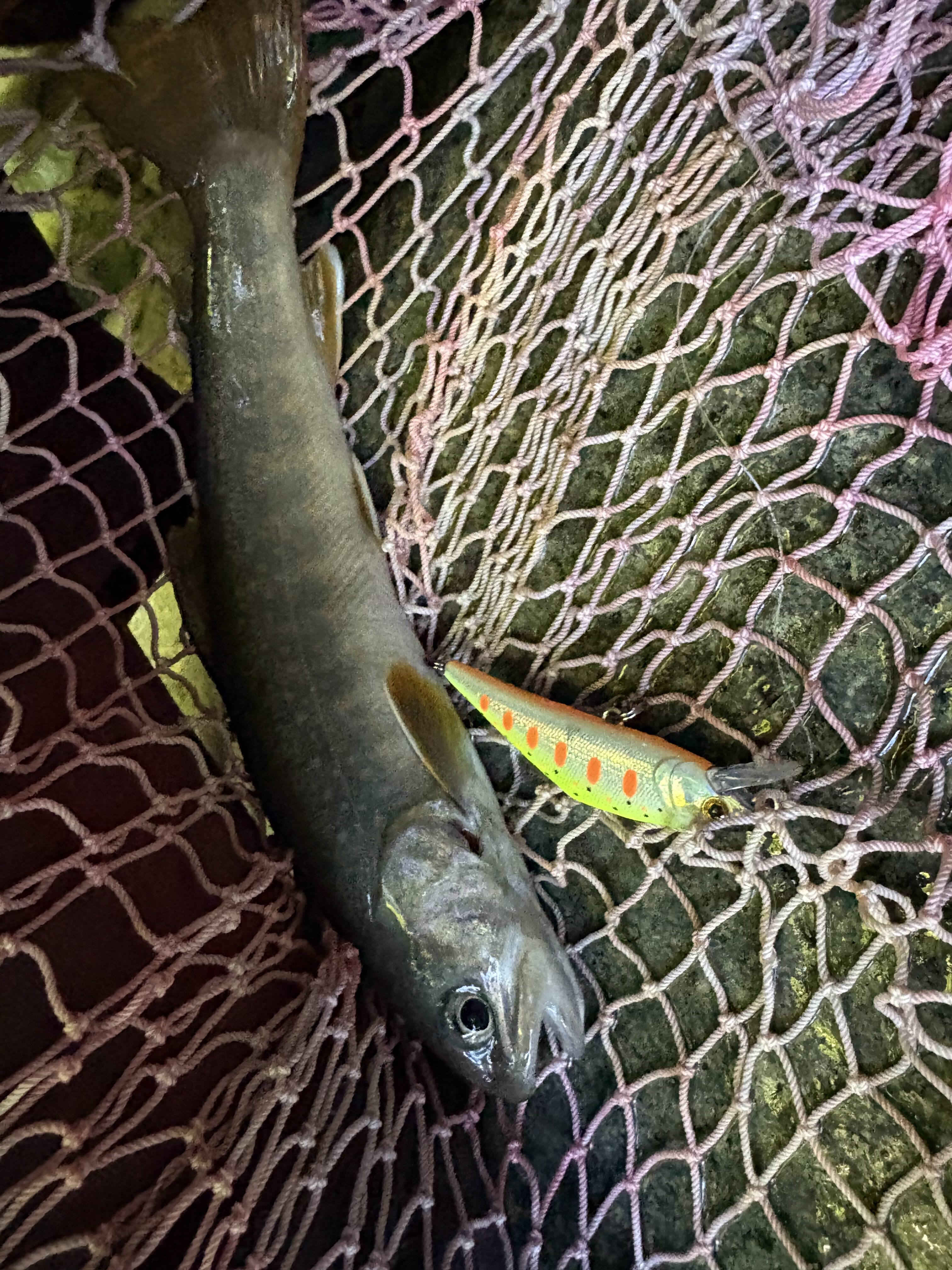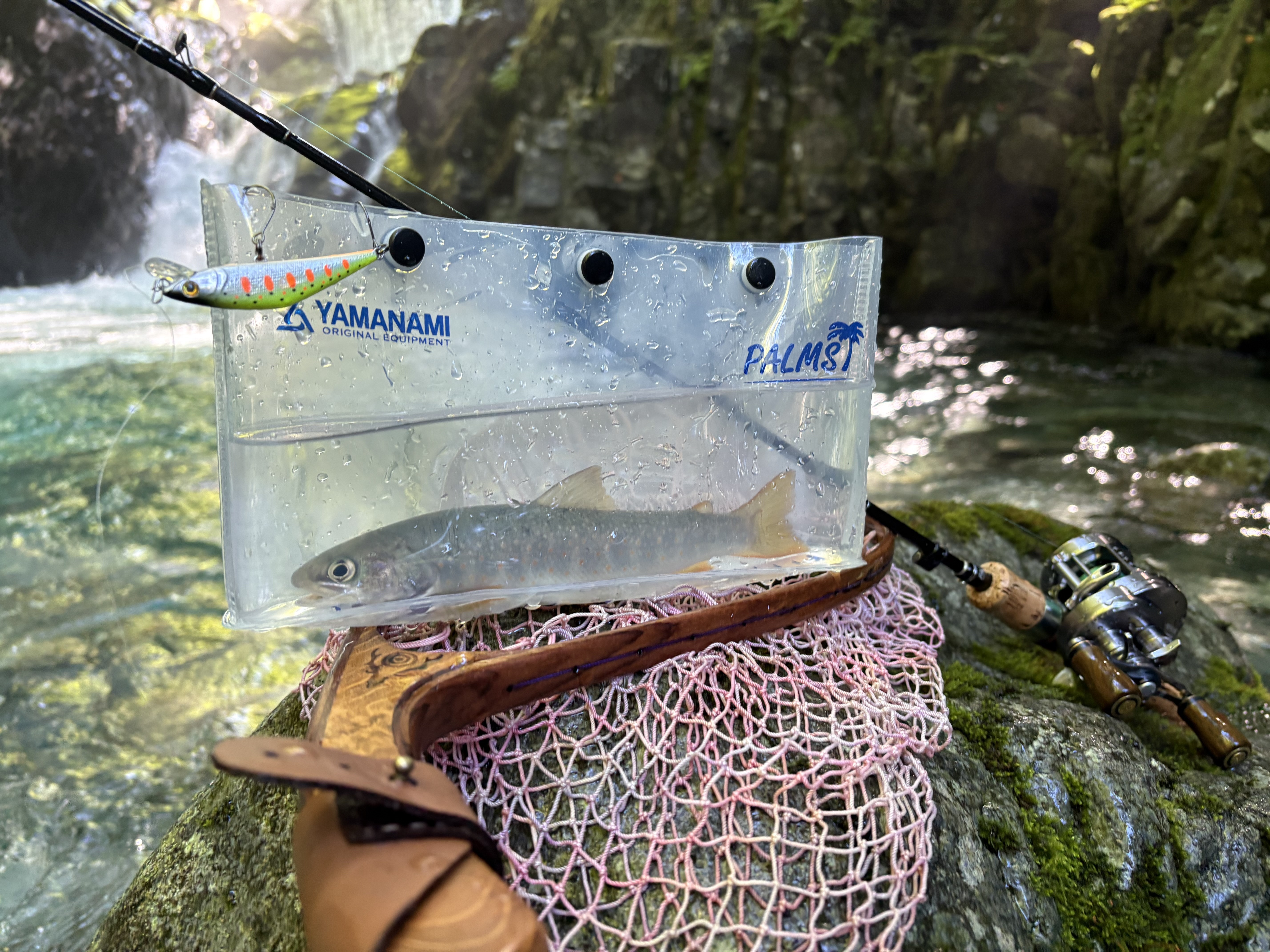 2025.07.22 印刷する 鱒日和③ 岐阜:東白川 渓流朝練のち友と友釣り延長戦 魚種 アユ/鮎 イワナ サイズ 22 数 イワナ3匹 鮎 釣り方 ☆ネイティブトラウト 友釣り 場所 中部 岐阜県 天候 晴れ スタッフ 碇山 篤志 店舗 本社 釣行日 2025.07.20 コメント おはようございます、碇山(いかりやま)です。 鱒日和3日目は東白川の飛騨漁協まで南下し、加子母に住む友人が鮎釣りやるようで合流予定。 朝一は単独渓流へ。水は超クリアだが連日の雨で水量が多く、全く反応が無いままもうゴール間近。 水量も多く遡上困難で岩に張り付き激流に埋もれた足場を探り渡る。 激流の深みに普段よりサイズアップしてスミス:ボトムノックスイマー35を打ち込む 増水激流にはサイズ・アピール力が必要だったか?待望のイワナ。 最終ポイントの大きな滝壺。大イワナ狙いで普段渓流であまり使わないスミス:Dコンタクト62。諦めかけていたところ、対岸からの誘いでヒット! 今度は足元の岩陰からもさらにヒット! いい魚といい画も撮れたので朝練は終了。 最終日で疲労と帰宅時間も考え、顔だけ出して帰るつもりだったが、友人は友釣り初挑戦というので見学・監督 見るだけ予定が結局釣りたくなって、日券購入し1本の竿を交代で釣り、ようやく待望のヒット!囮の入れ替えに成功し、選手交代&釣り人も交代すると友人にも速攻でヒット!さあここからでしたが水量も多くやりにくい場所も仇となり根掛りで鮎と仕掛けを失うこと数回振り出しに戻る結果に。 使用した釣具 ロッド パームス:エゲリアネイティブ42XUL リール シマノ:コンクエストBFS HG L ルアー ボトムノックスイマー35、Dコンタクト62、50、エミシ50S ランディング用品、その他 ワイズカスタム:ランディングネット45ストレート、パームス:キャプチャーM