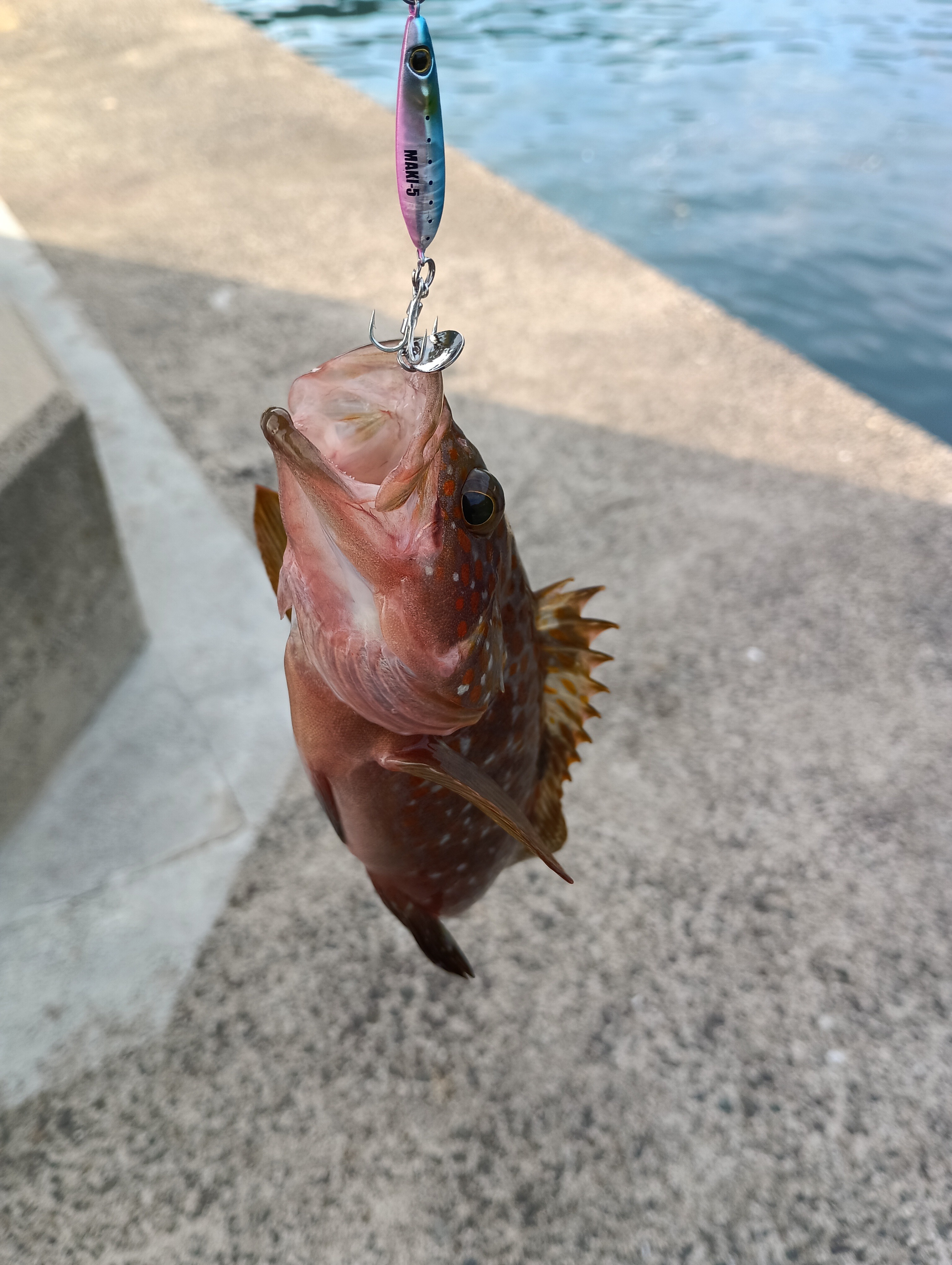 ちょっと魚の顔みたいので、ジグパラマイクロ5gでマイクロジギングすると、サバから始まり、ベラ・アナハゼ・アコウ・モジャコとめちゃめちゃ釣れます。