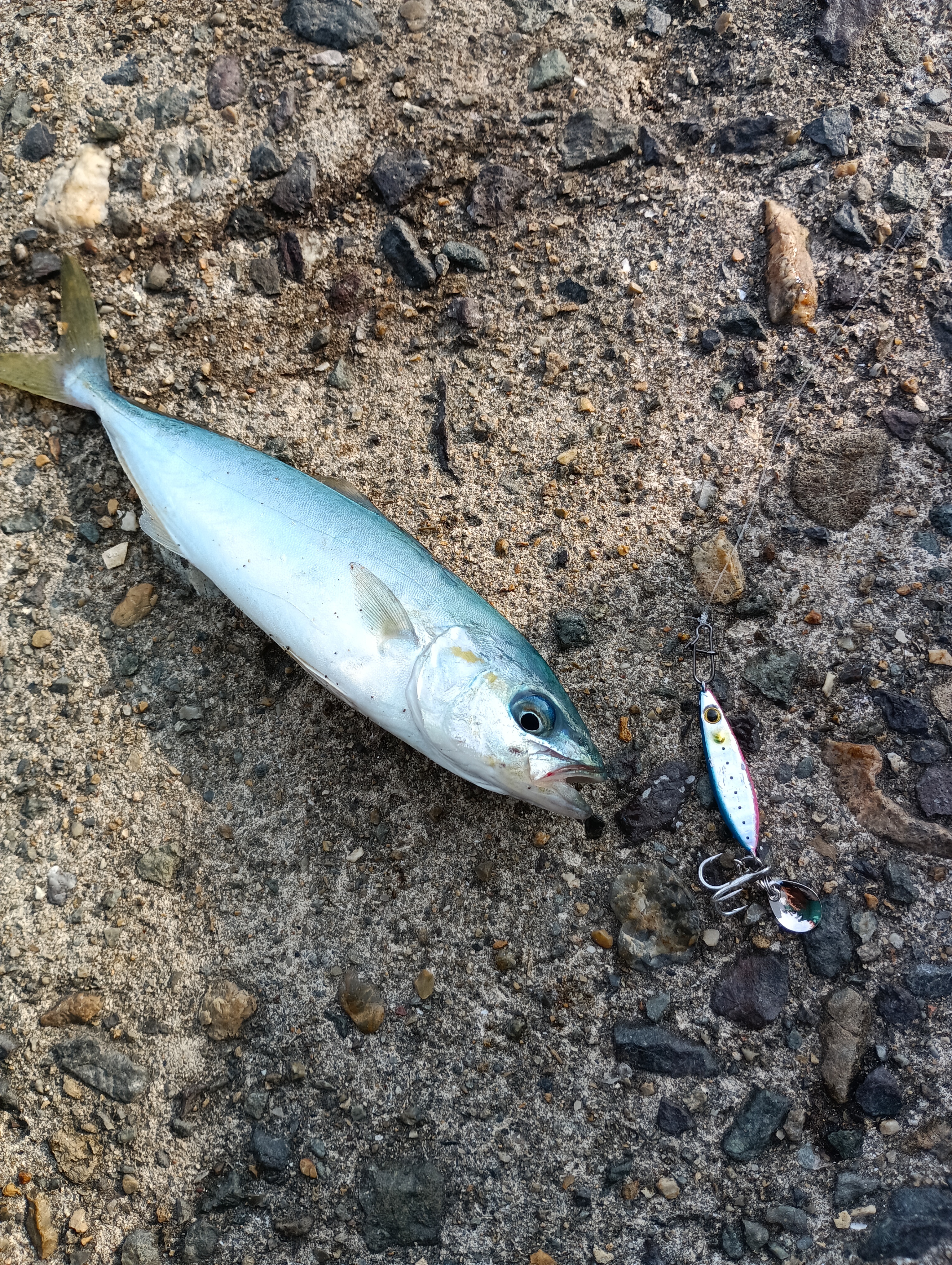 いつものポイントに着くも、朝一はベイトだらけもサゴシジャンプもなく、全く何も起こらず…