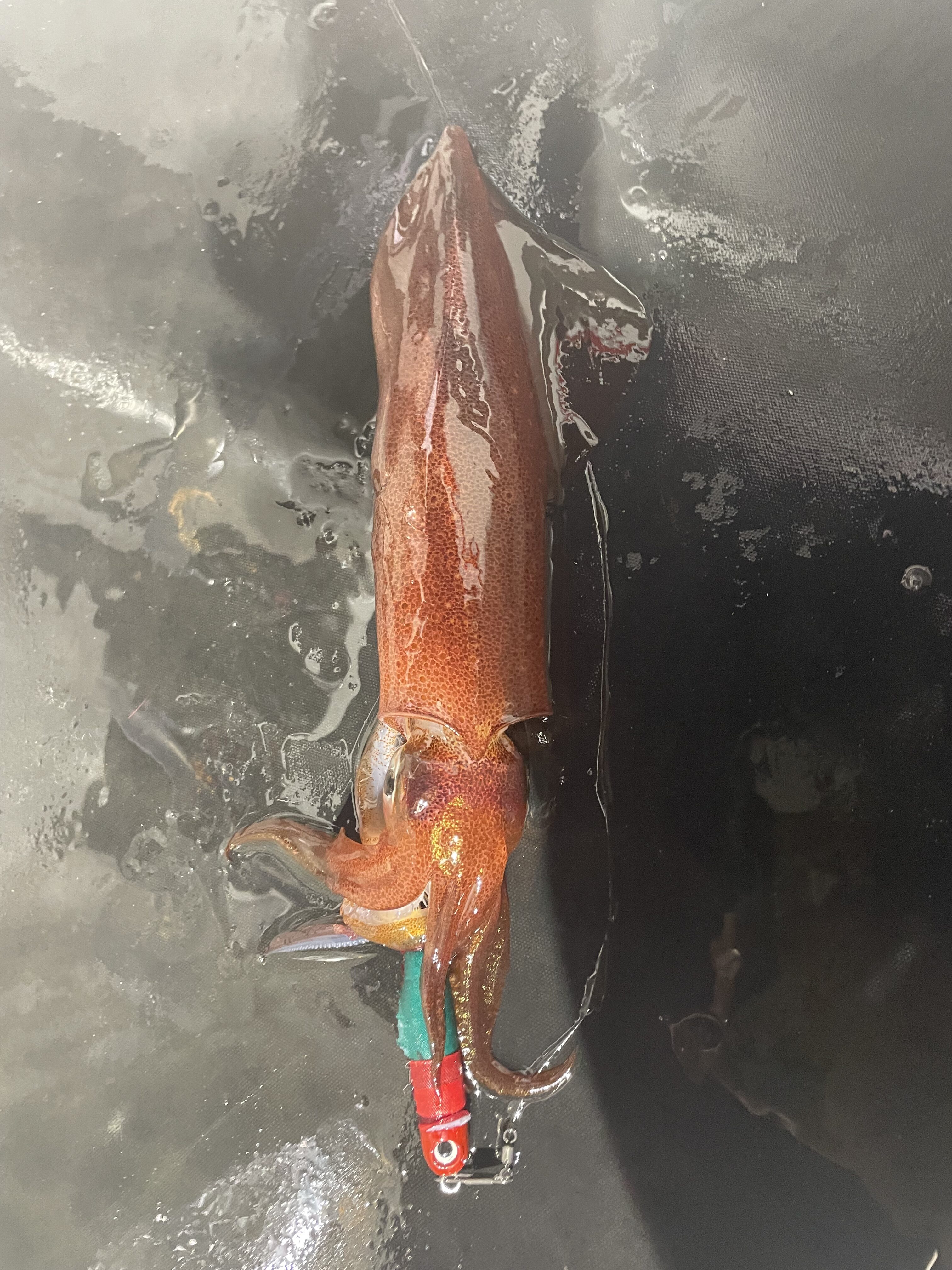 夕まずめはオモリグ探ってみます😊潮が緩いので、エギが潮に流れないので、フォールスピードが速いエギ王ライブで縦に探ると可愛いケンサキが釣れてくれました😊