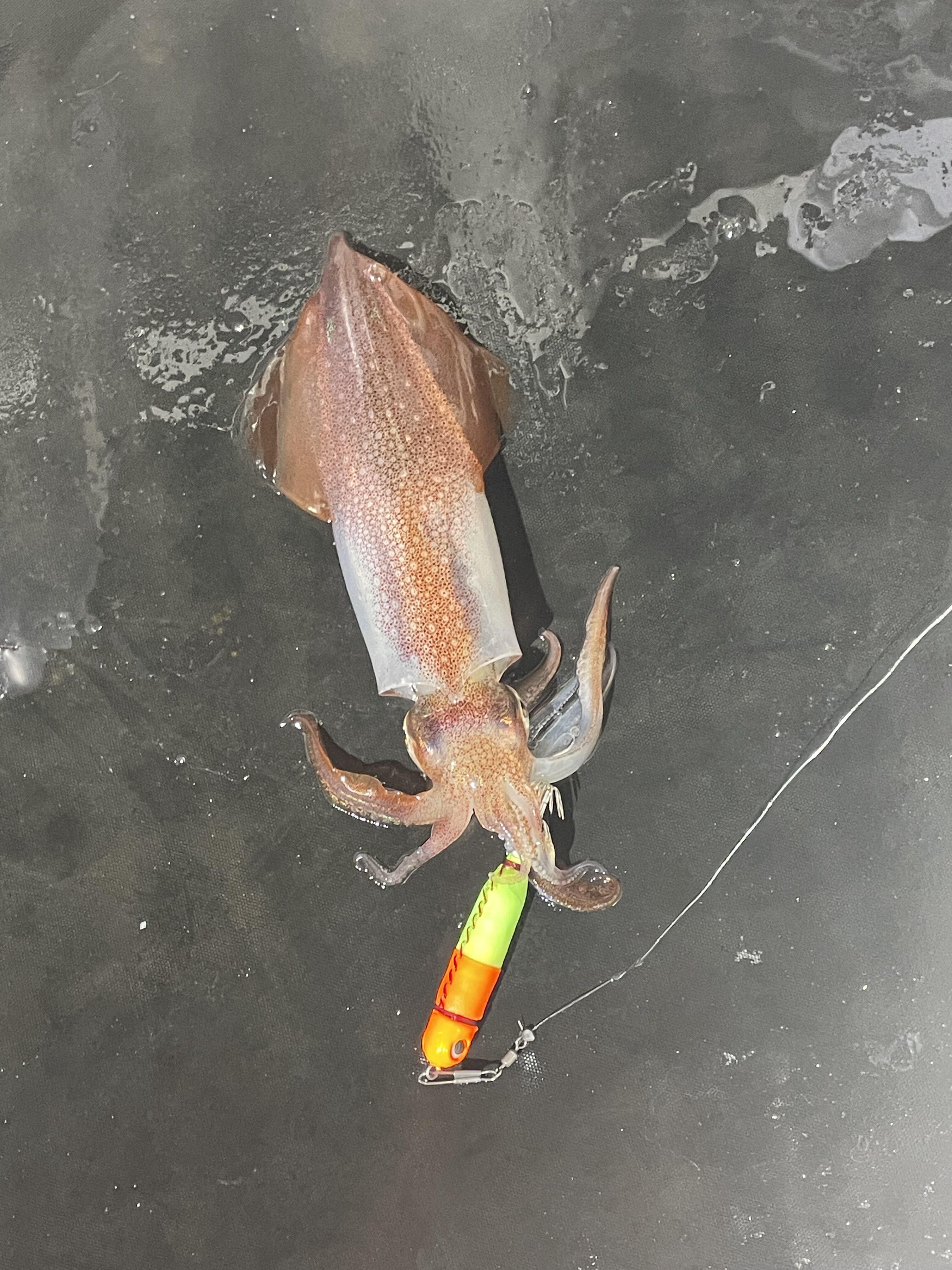 明るい時間はそれだけでした💦いよいよライトが点灯し、イカメタルで色々探ってみるのですが、アタリのカラーやパターンも見つける事が出来ず、終始ポツポツ拾う釣りでした💦