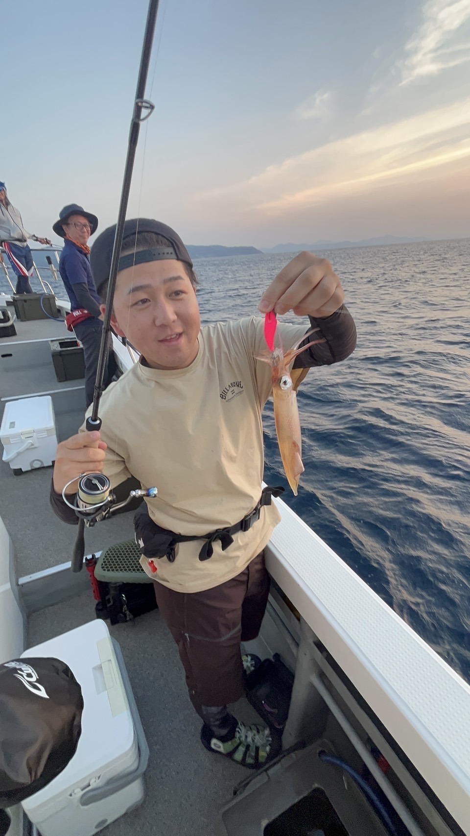 2025.07.23 印刷する シーマンにてイカメタル🦑 魚種 マイカ/アカイカ/ケンサキイカ/マルイカ サイズ 胴長18cmまで 数 ケンサキイカ/37杯 スルメイカ/4杯 釣り方 ☆イカメタル/オモリグ 場所 京都府 天候 晴れ スタッフ 土橋潤也 店舗 大津店 釣行日 2025.07.16 コメント 大津店土橋です。 7月16日(水)晴れ この日は京都府網野町のシーマンさんに乗りイカメタル・オモリグをしてきました🦑 当日は少しうねりがある状況でした。 18時前に出船し15分ほどでポイントに着きました。水深45mスタート 明るいうちはオモリグで広範囲を探りました。開始30分ボトム付近でヌーンと入るような当たりがありヒット‼️明るいうちから釣れたのが初めてでとても嬉しかったです♪ それから暗くなり周りの方々も連発‼️この日はボトム付近で当たりが多かったです。 後半はイカメタルで当たらなくなったのでオモリグにチェンジ🫰ボトムでテンションフォールさせると当たりが連発❗️気分でイカメタルに変えるも当たりが出ずオモリグに変えると当たりが出る。 この日分かったことはイカメタルが苦手ということそしてオモリグが得意ということ。 ロッドのせいにはしないが、専用ロッドはあった方がいい❗️ 使用した釣具 イカメタルロッド アブガルシア クロスフィールド662ML-bf オモリグロッド クロノ 月弓610