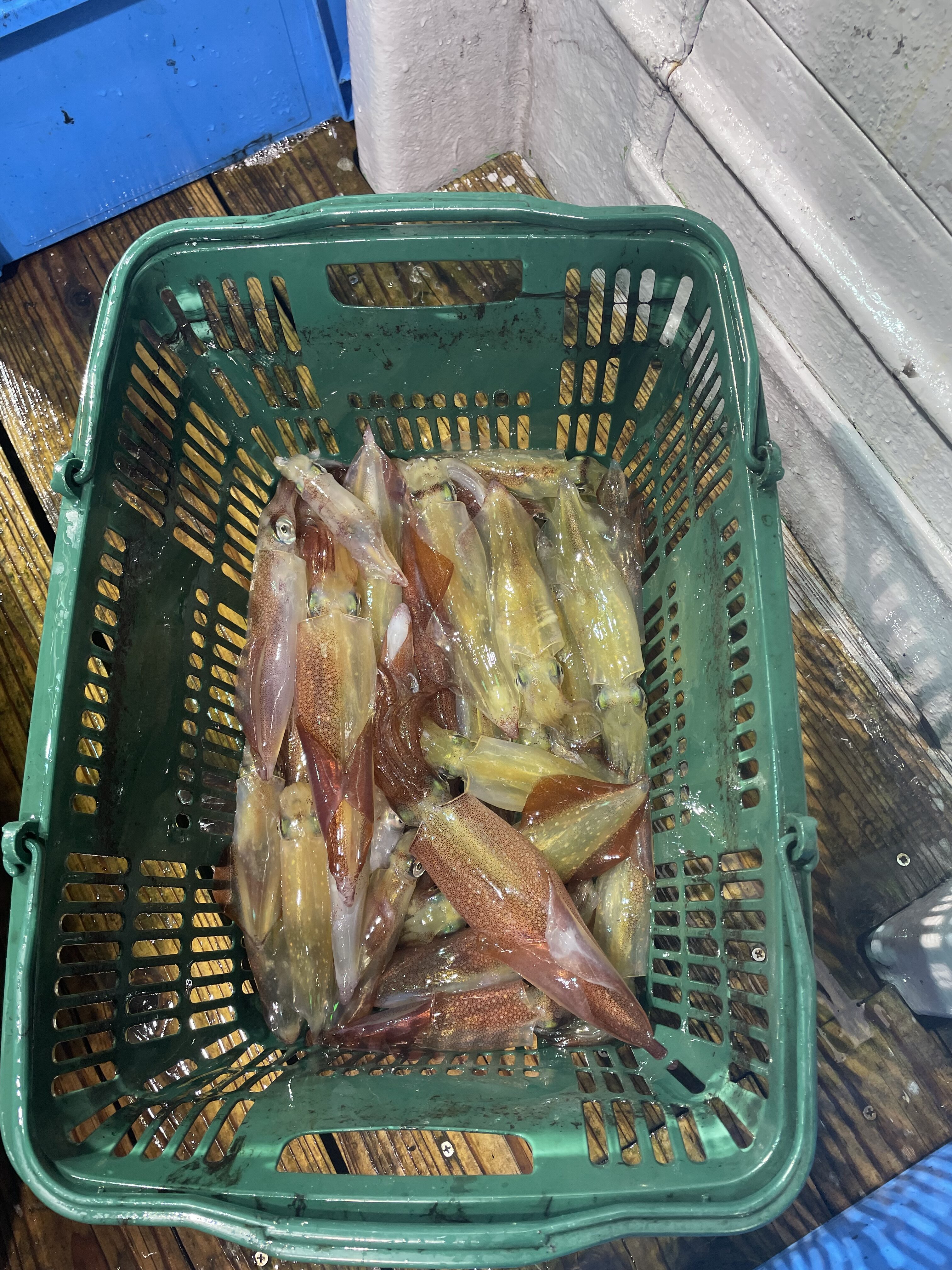 2025.07.24 印刷する 越前福丸さんで爆釣🤩 魚種 マイカ/アカイカ/ケンサキイカ/マルイカ サイズ 30センチ 数 マイカ中剣混じりで62ハイ 釣り方 ☆イカメタル/オモリグ 場所 福井県 天候 晴れ スタッフ 田口寛之 店舗 大津店 釣行日 2025.07.22 コメント 皆様こんにちわ😊お気楽釣行大好きな田口です😁今週は3連休をいただいたので、2夜連続イカメタルを楽しみました😁二日目なので体力も心配なので、ゆっくり釣りがしたいという事で、越前より出船なさっている福丸さんにお世話になりました😊福丸さんは船がとても大きく、デッキも広々、クーラーの効いたキャビンもあるので休みながらボチボチ釣りをしたい僕にはピッタリです😊多少の波なら全然気にならない所も良いですね😊 さて肝心の釣果は‥爆釣でした🤩この日は30メートルで安定して釣れてくれて、メタリン15号が大活躍しました😊小さなシルエットが効果的だったと思います😊 今日本海イカメタルは各ポイント好調です😊皆様も是非チャレンジしてみてください😊 使用した釣具 ロッド エメラルダスMX K56ULB GS リール ライトゲームIC150 ナマリスッテ メタリン15号