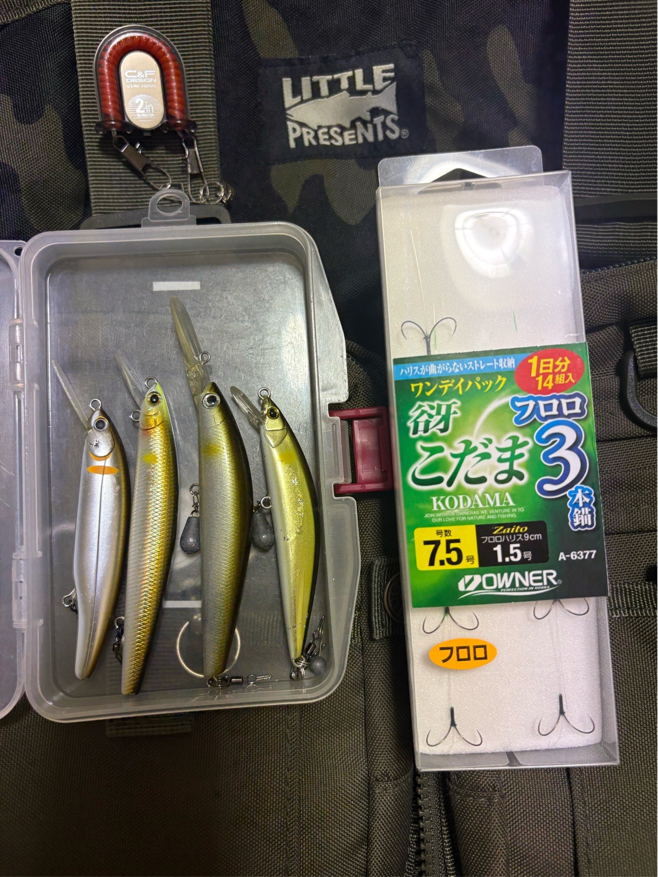 - 《パームス》 エスケード 80MDF、《ダイワ》 アユイングミノー 94SF、《バスデイ》 シュガーディープ 90F
