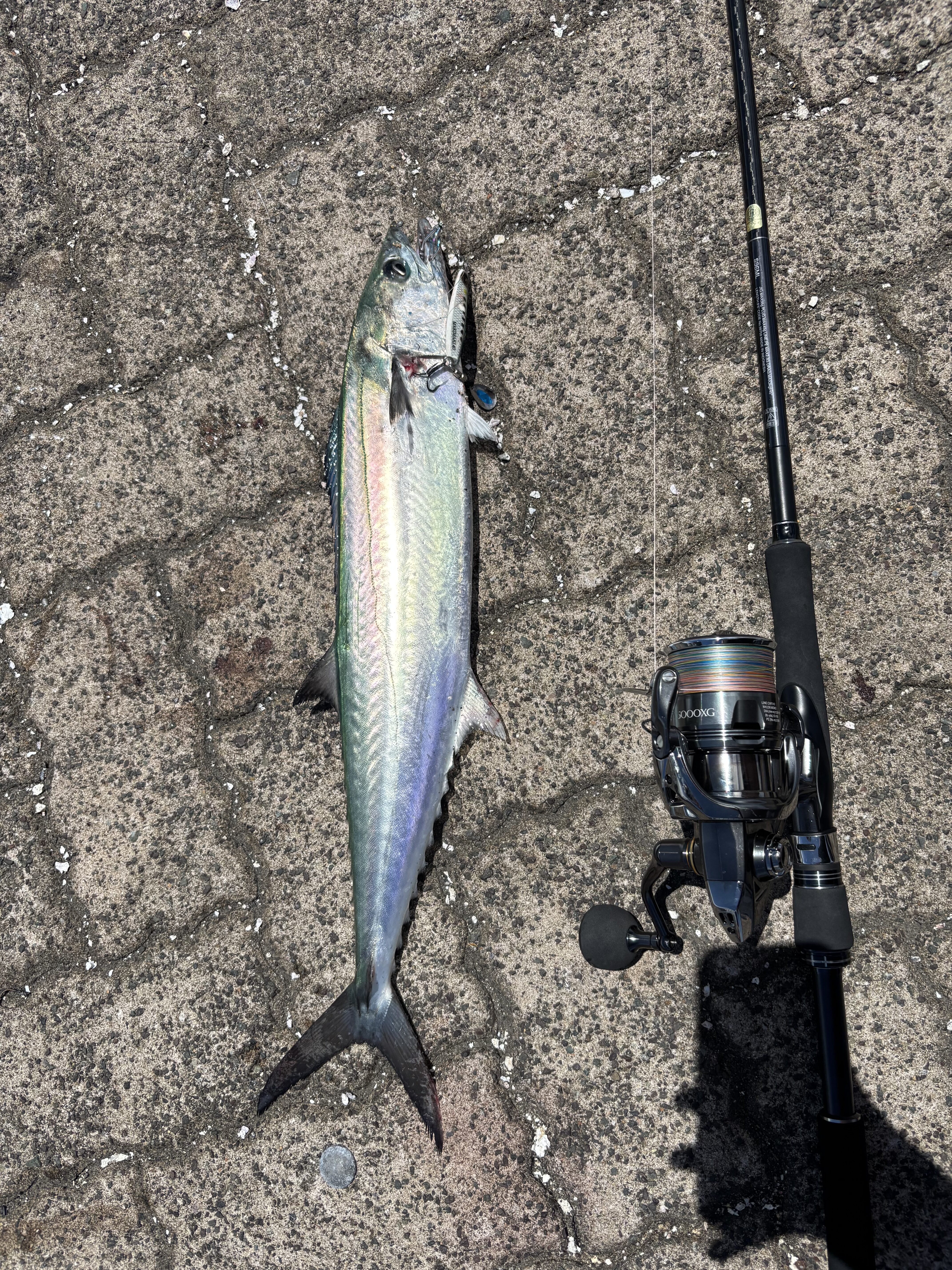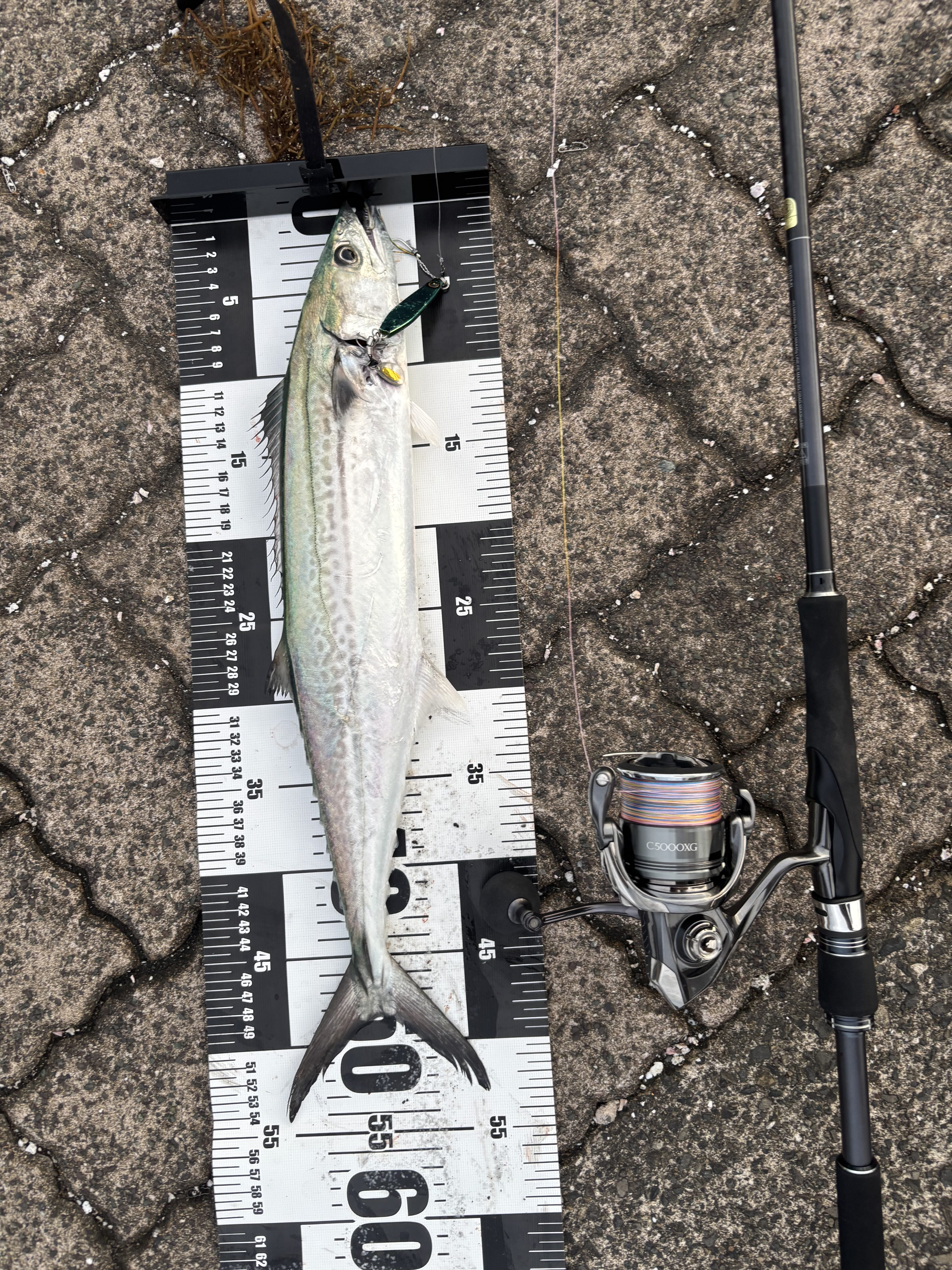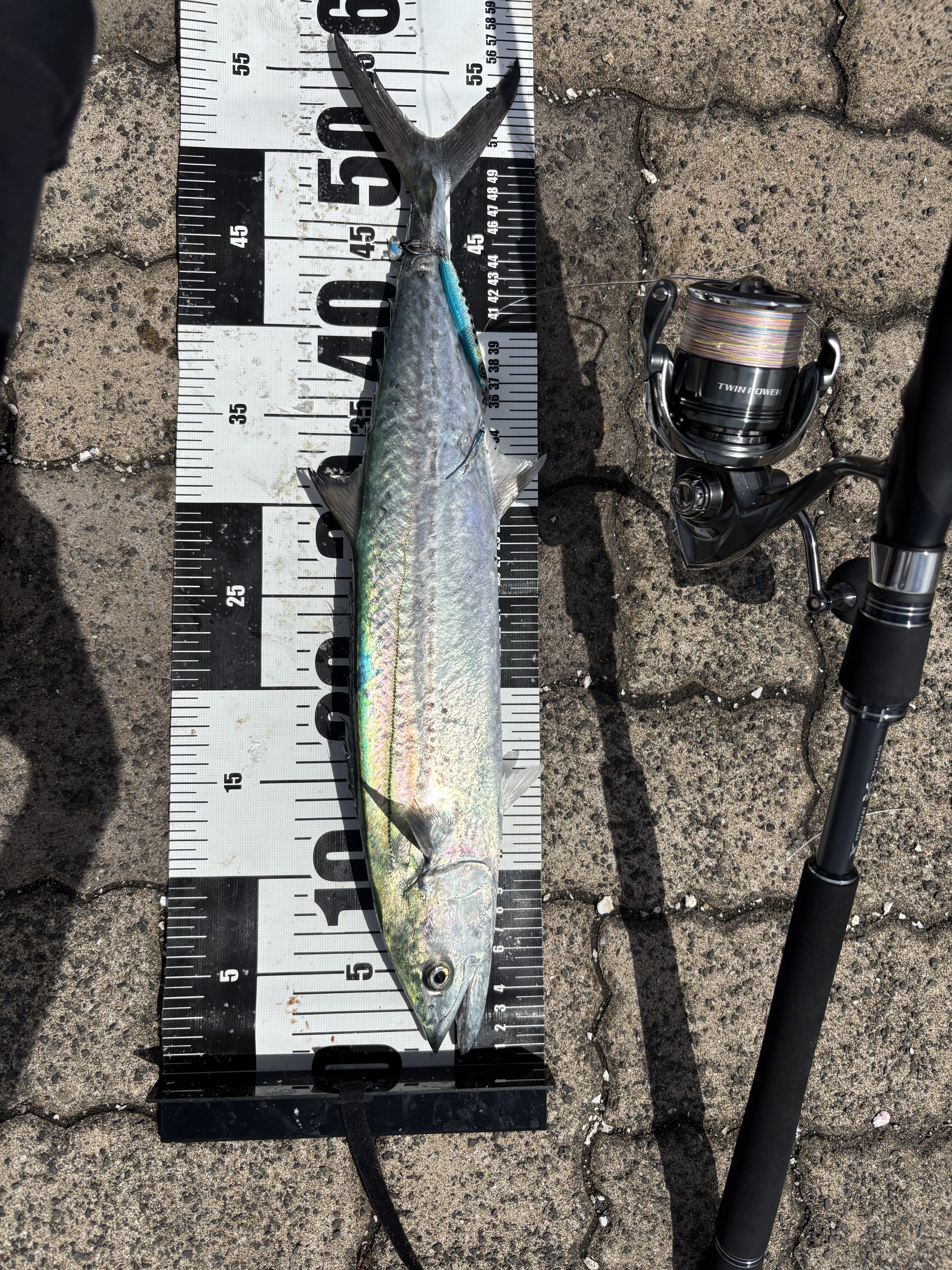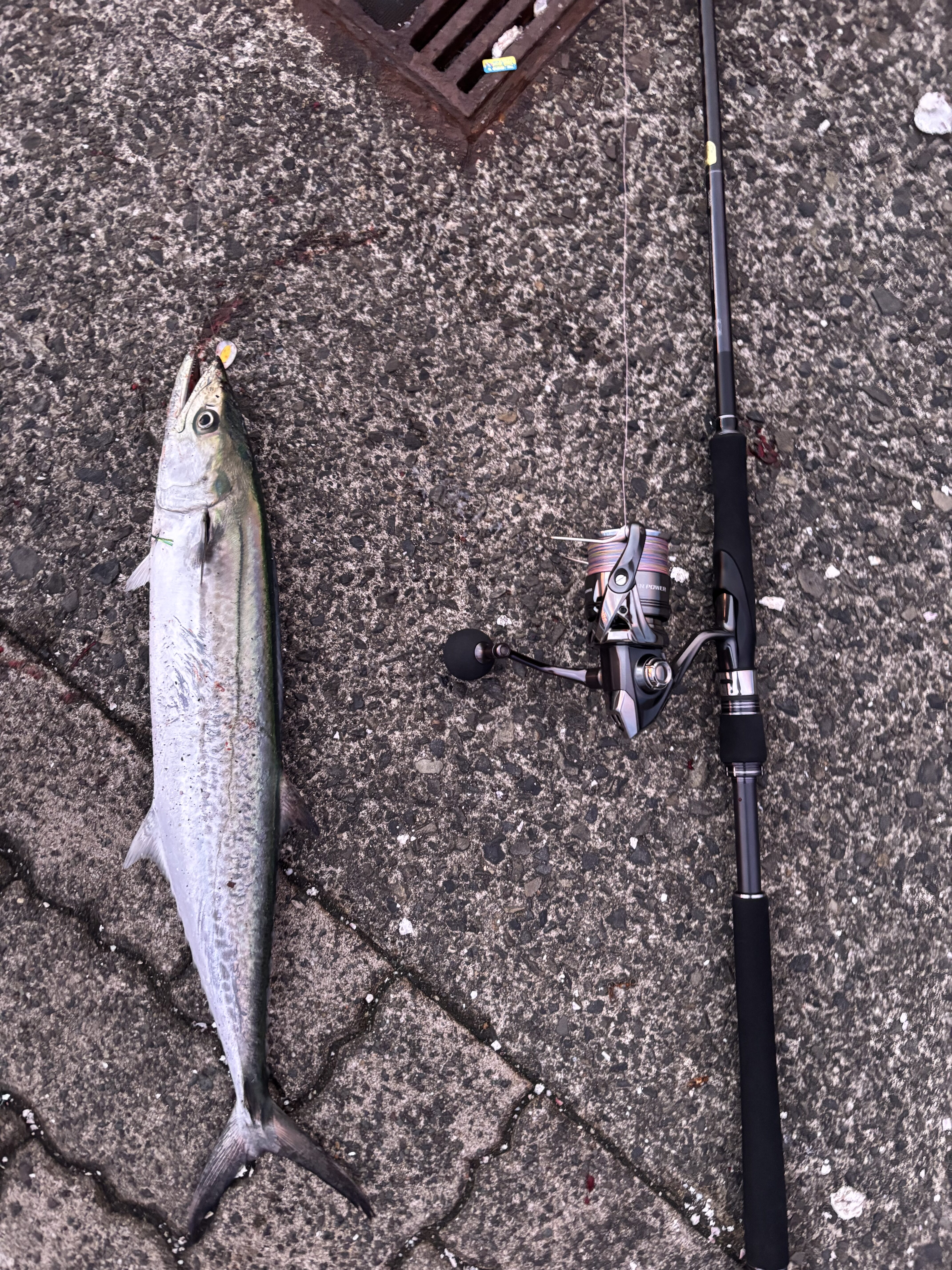 底から中層を探り 4時半過ぎにヒット!56.5センチのサゴシを釣れ、そこからサゴシをもう1匹釣りました!