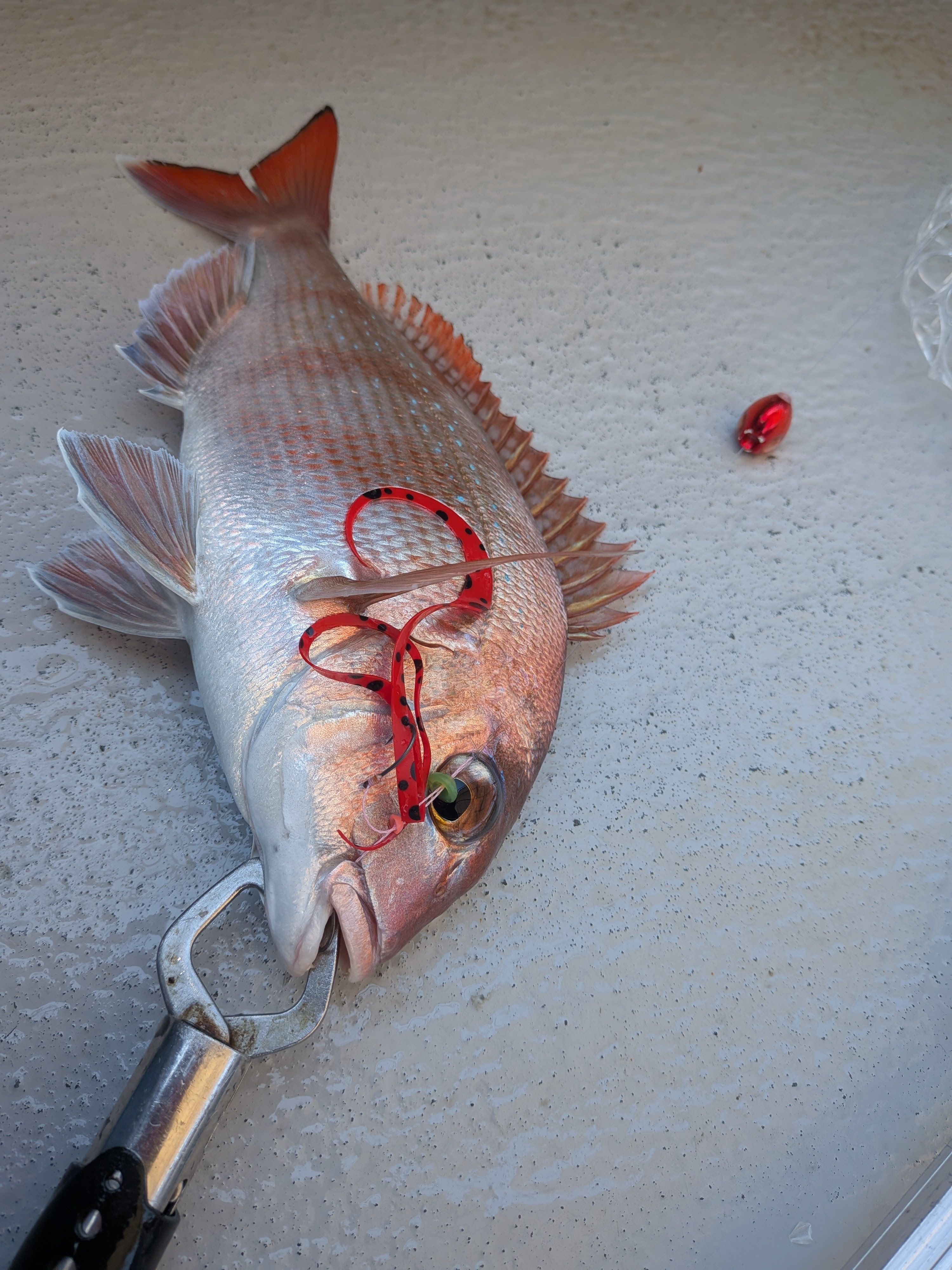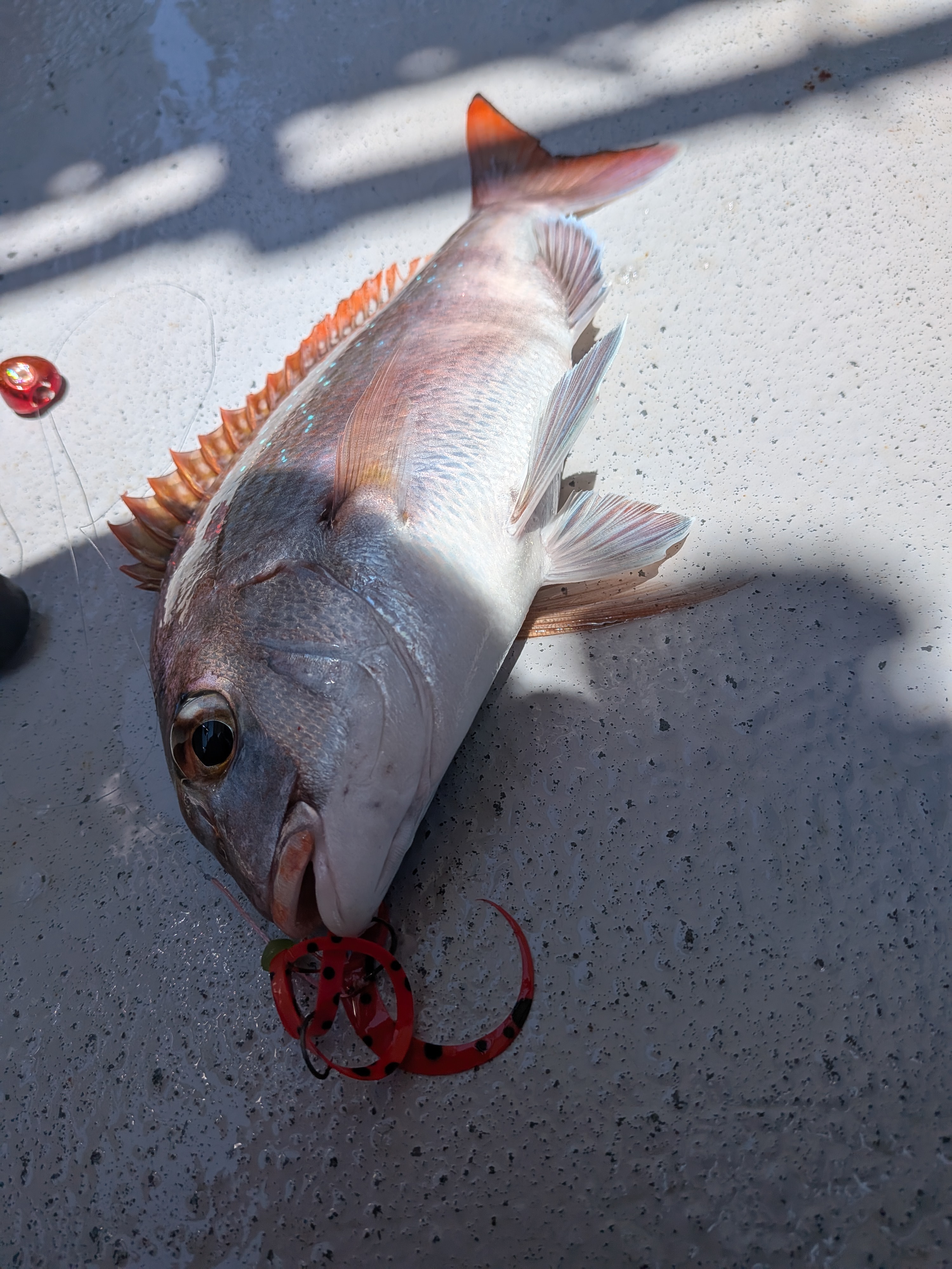 1流しで良さそうな鯛を3枚ヒットさせましたが、全部針ハズレ!どうやら今回導入した針のセッティングがあわなかったようです。すべてかなり上の方まで上がってきてから外れました。