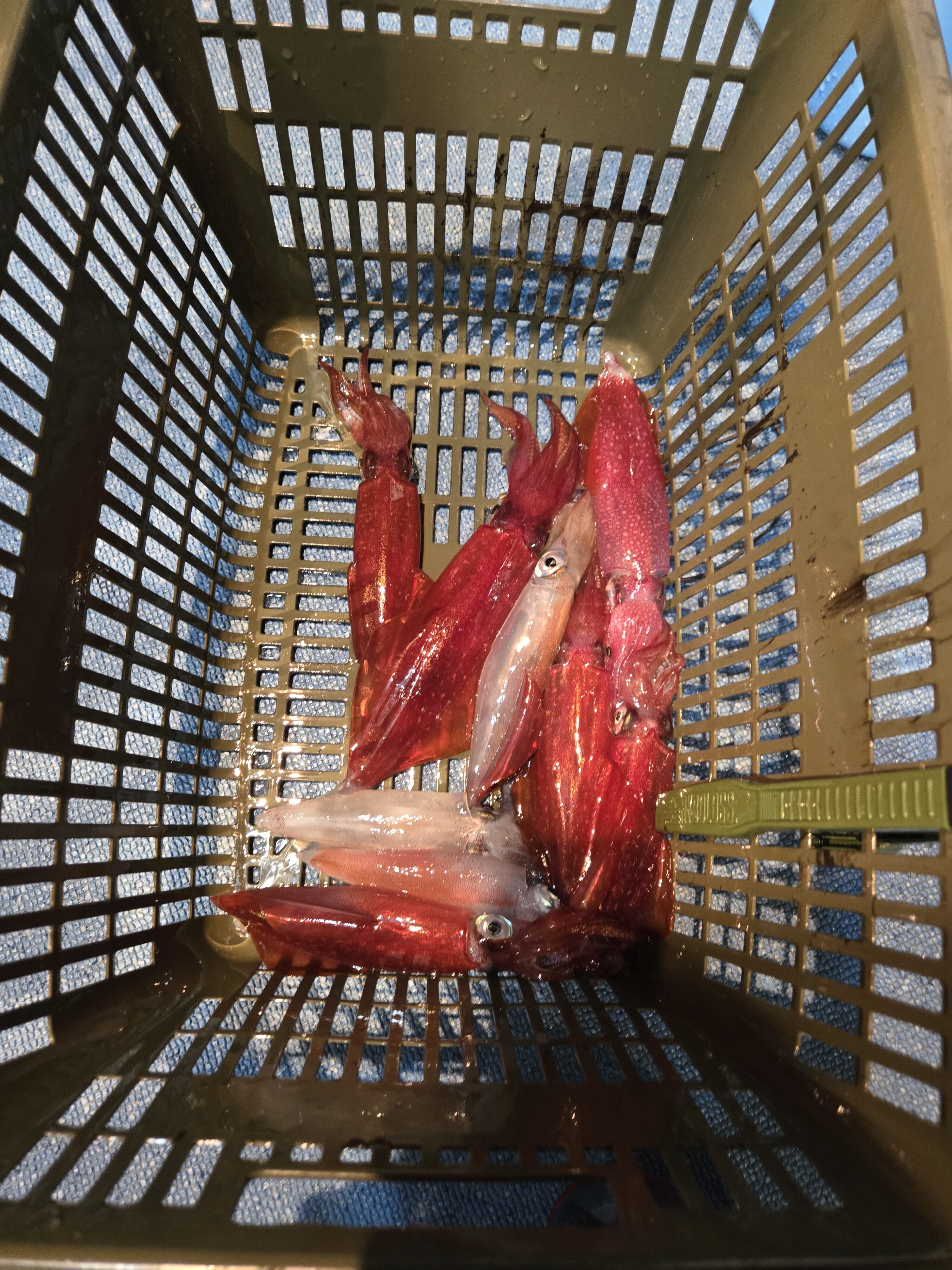 そんな感じで鈍いながらも他の方が何色でどのくらいの水深で釣れたのか教えてもらいながら、目標の10杯をクリアして13杯も持ち帰る事ができました😄