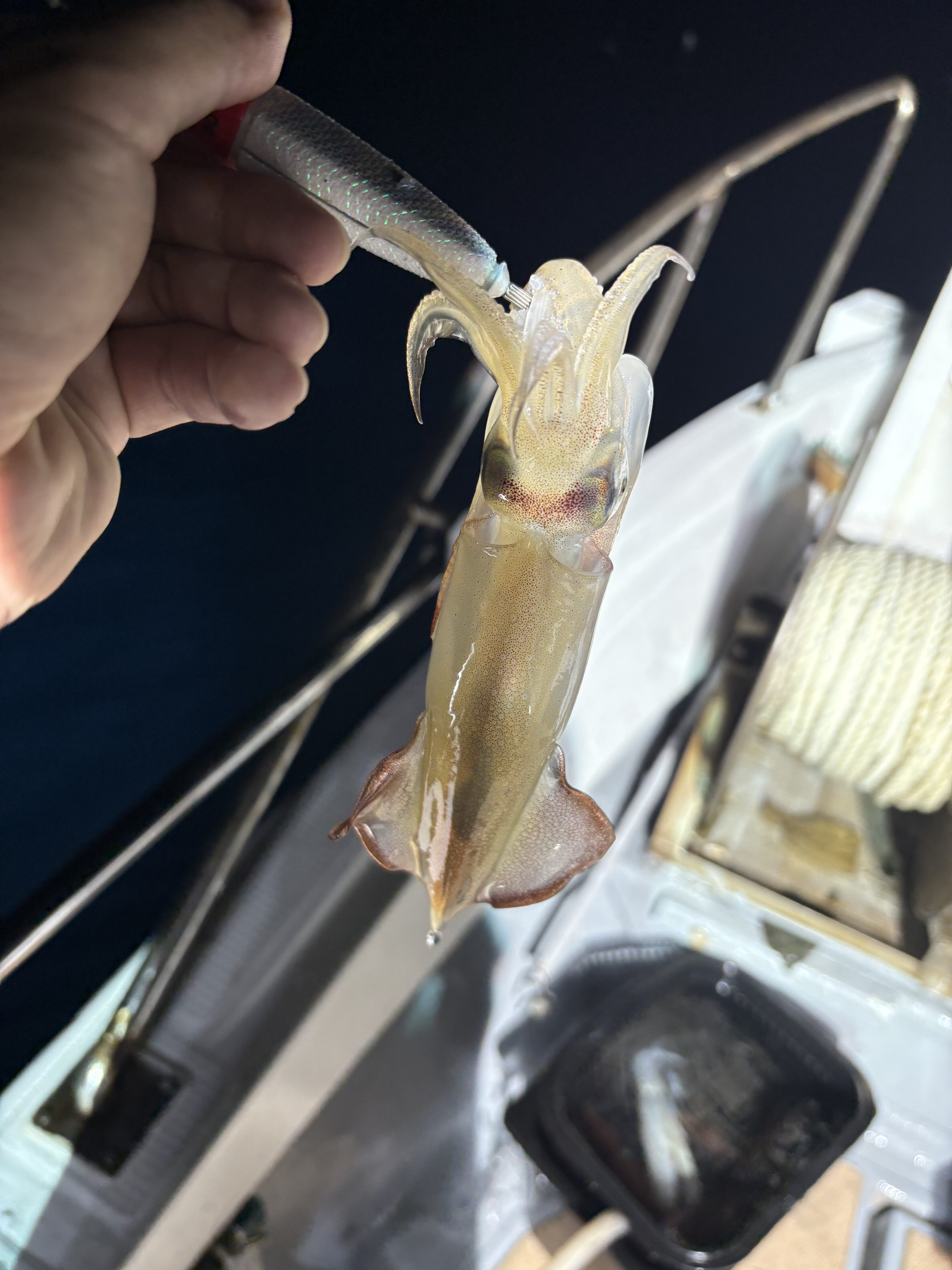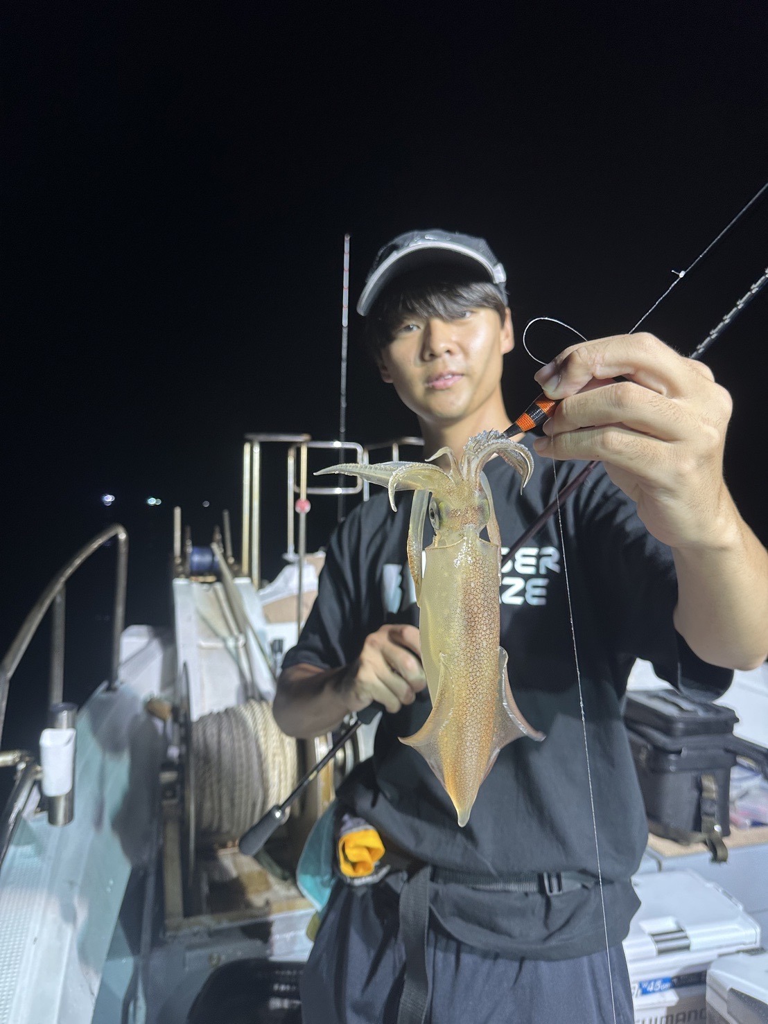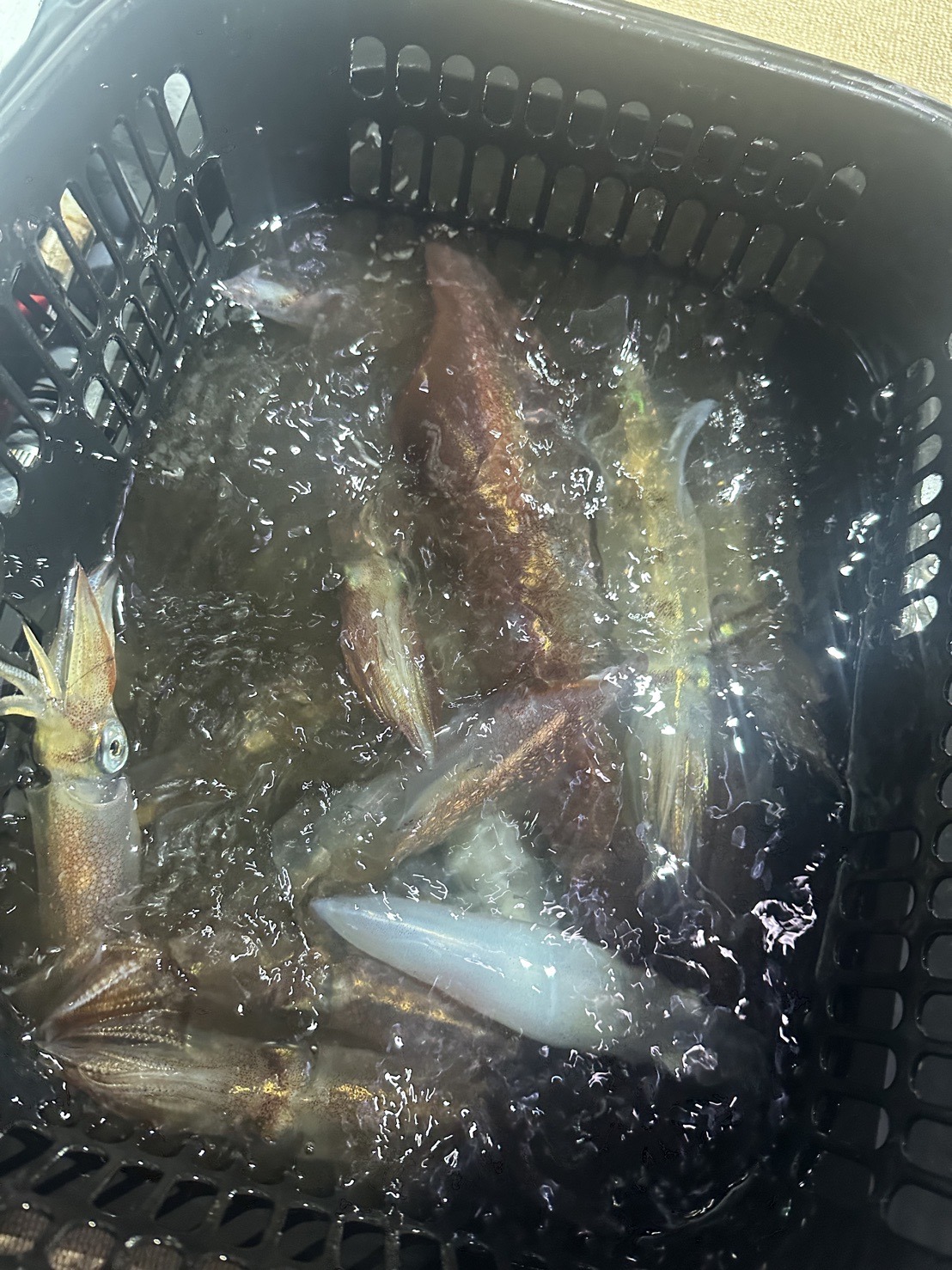そのままなんだかんだ釣れ続き少しずつイカのいるレンジが上がってきて20メートルくらいで当たり始めてからは当たってもなかなか乗らず、いかに上手くかけるかと言う状況になり、ひたすらカラーチェンジを繰り返し最終25杯とまずまずの釣果!