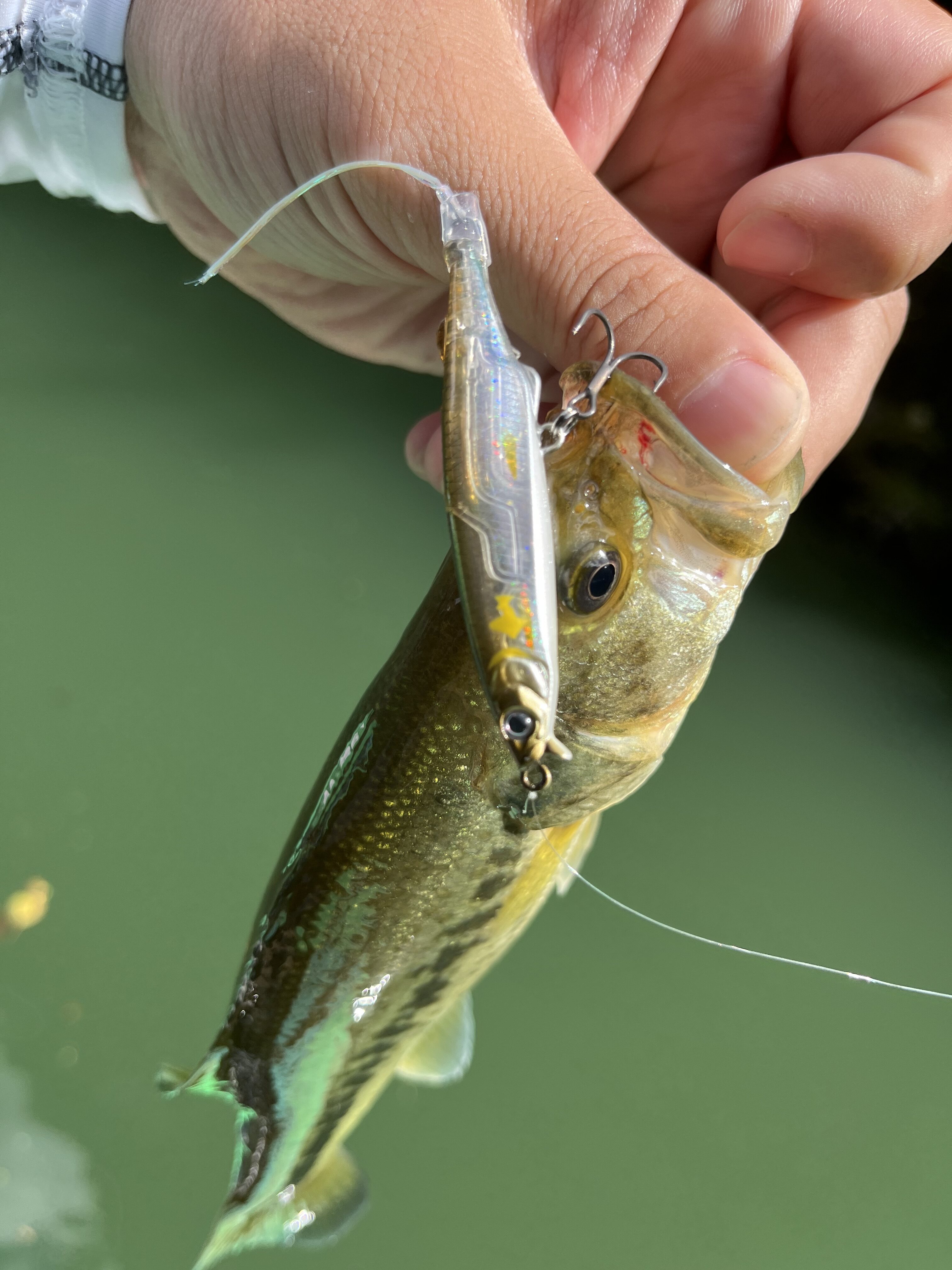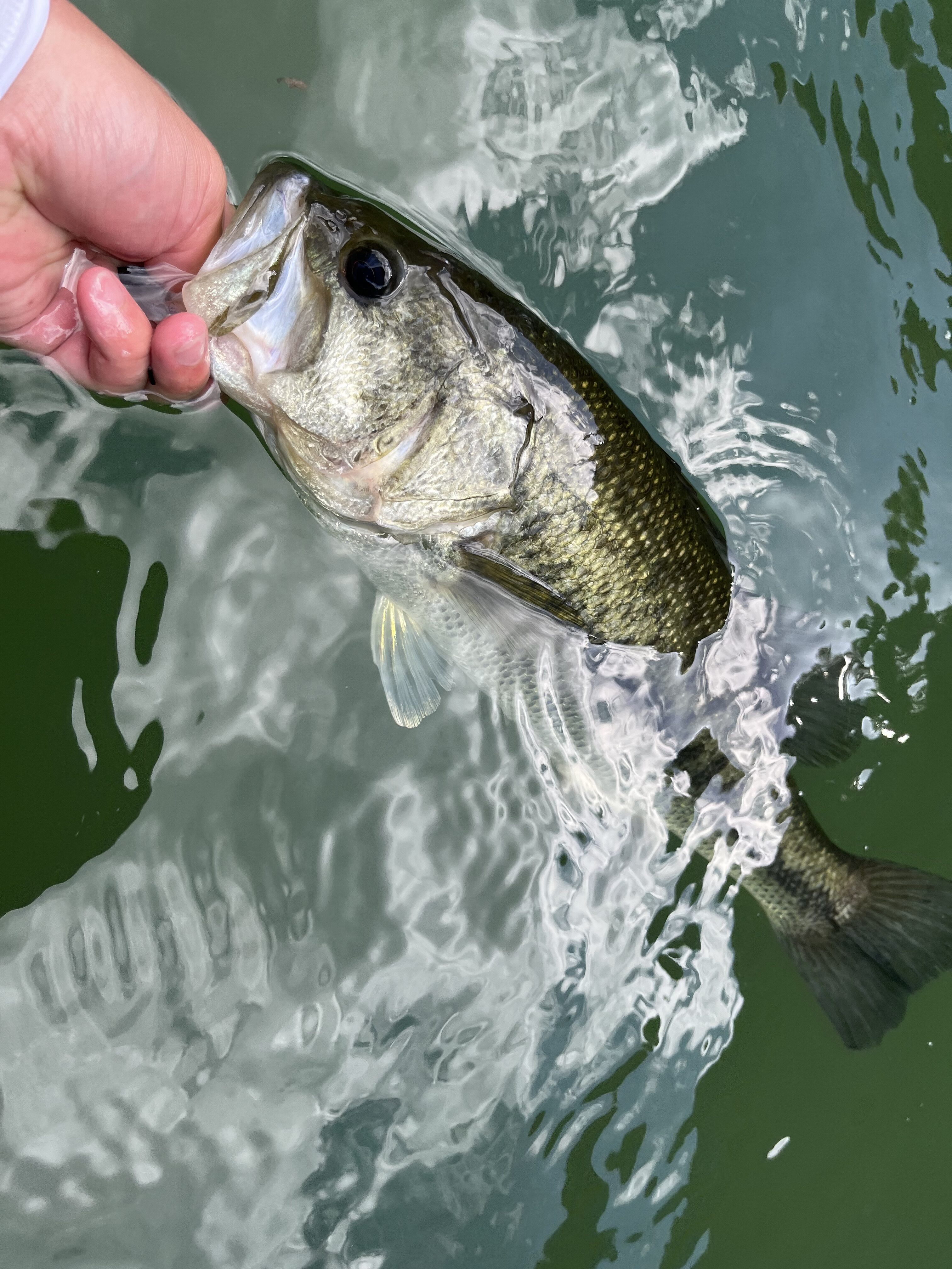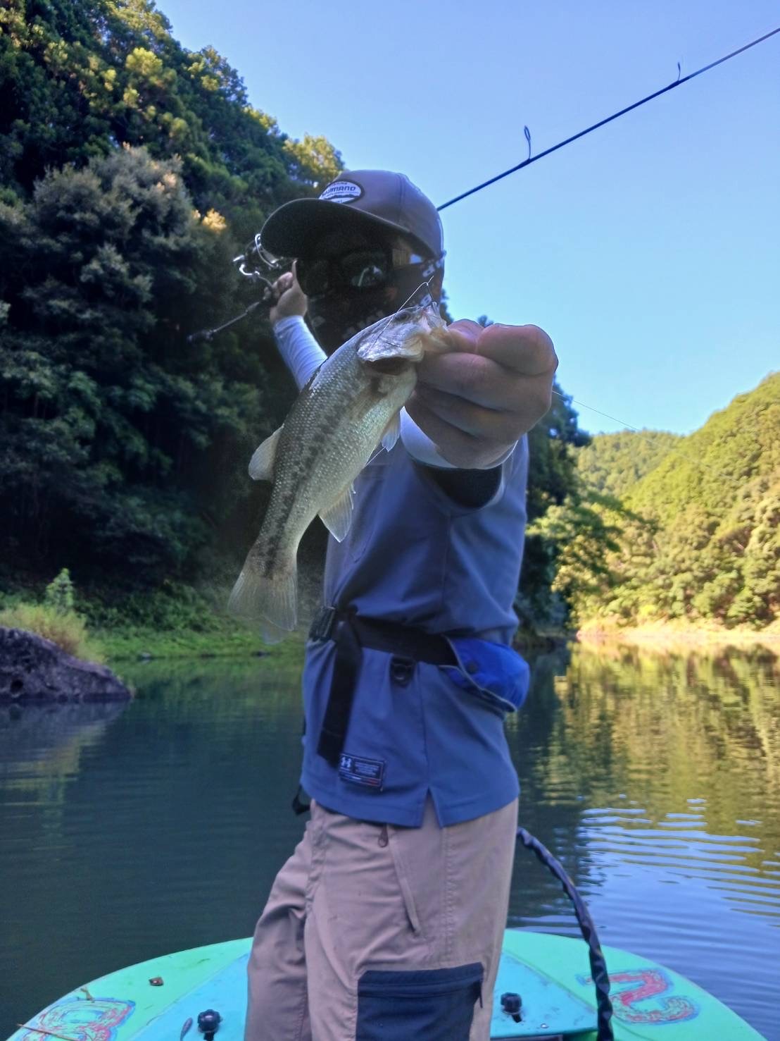 前日までの雨の影響もあり流木や濁りがはいっていましたがすぐにバスからの反応あり!