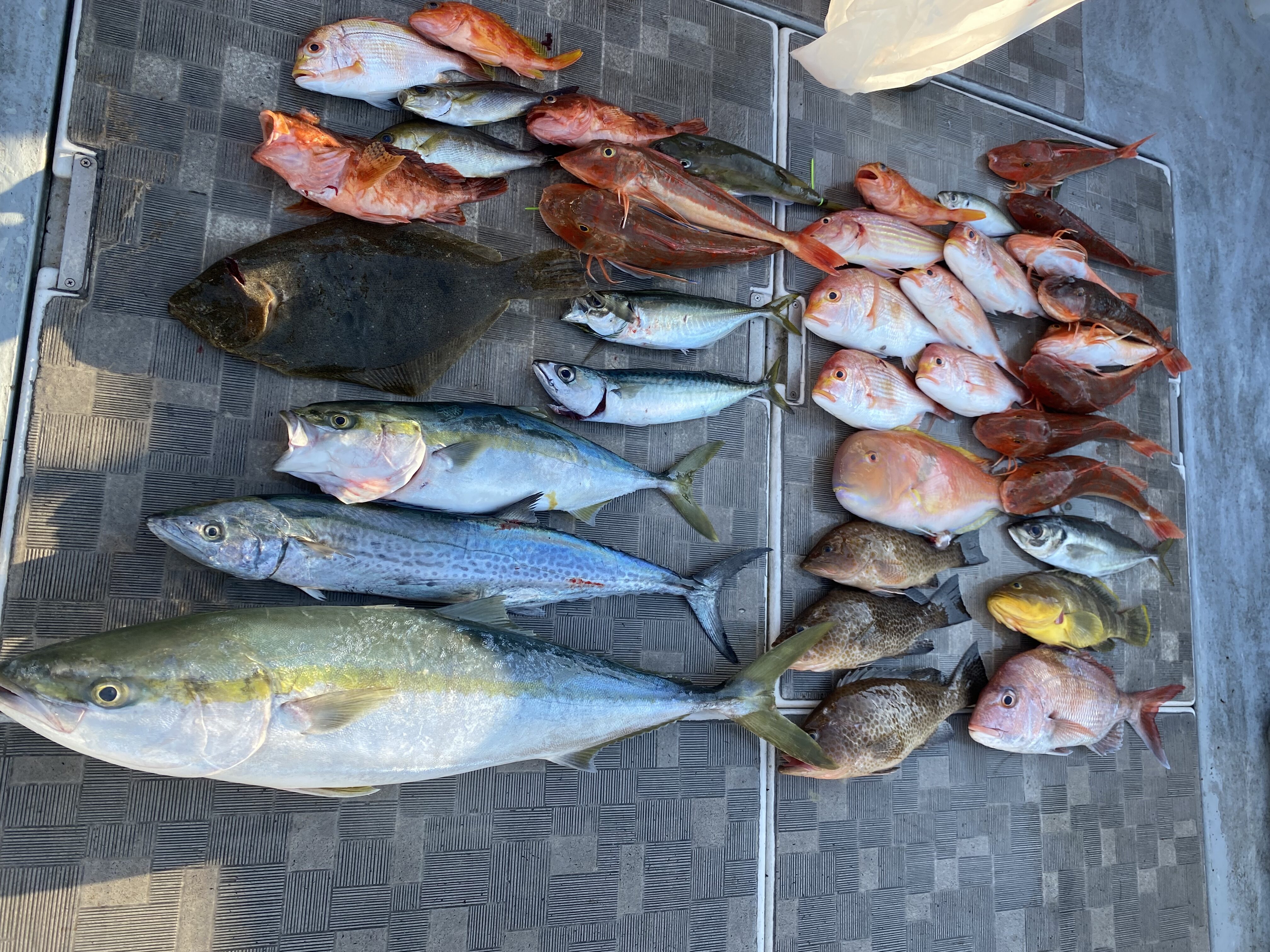 同船者はホウボウやオオモンハタを上げていましたが、なかなか掛けれず…