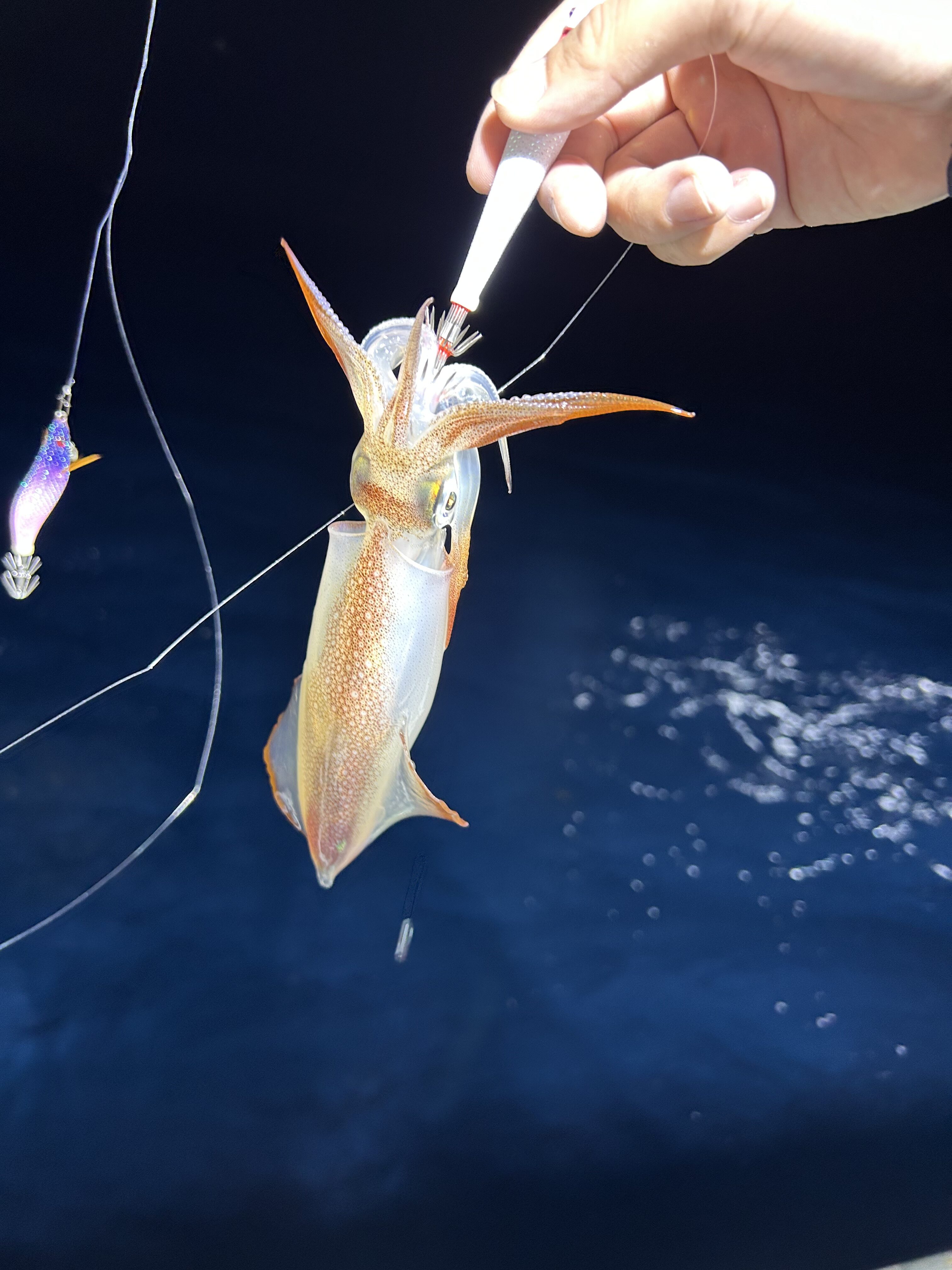 自分も紫を使用しますが中々当たりがこずきた!と思ったら赤白の鉛スッテの方にかかっていました…
