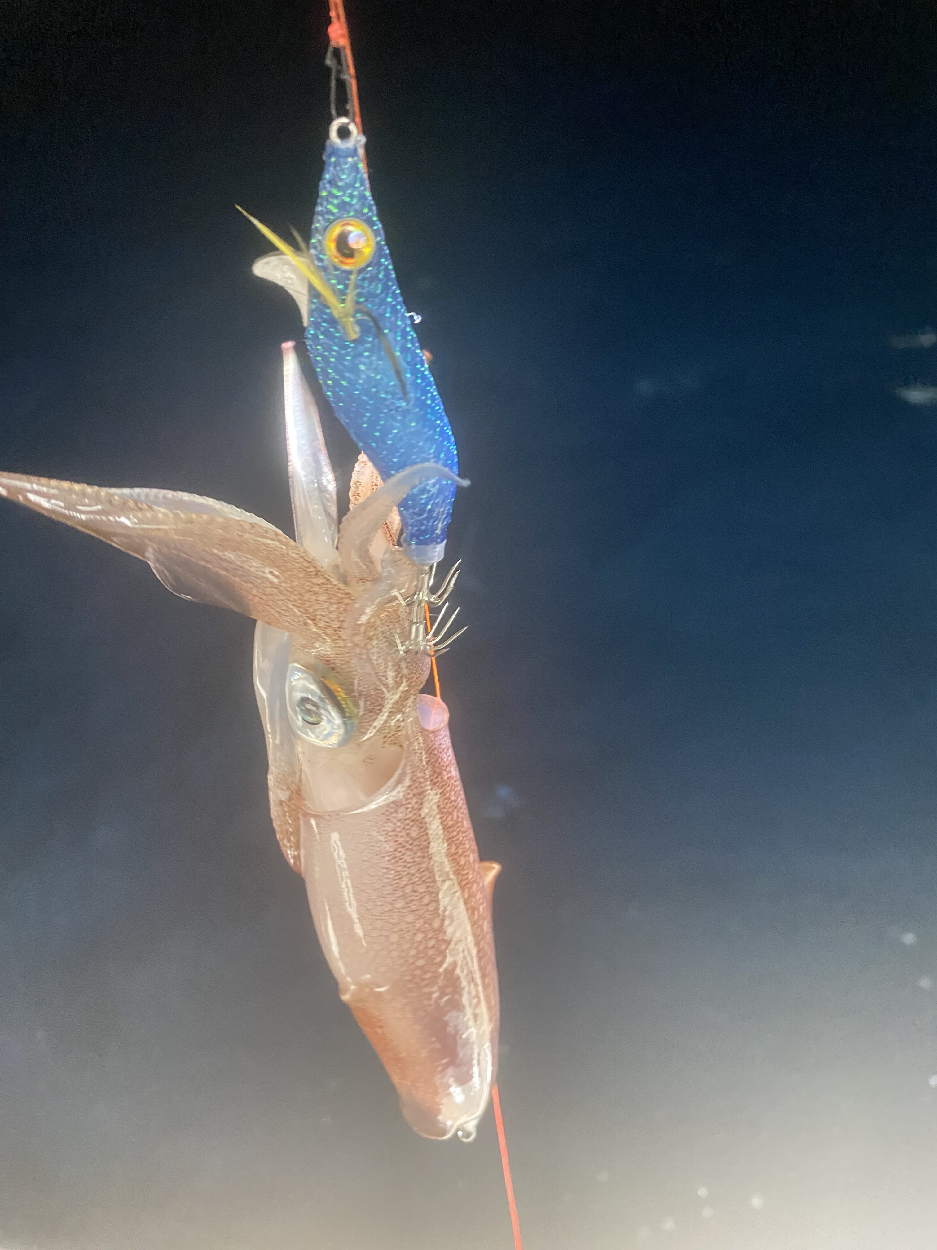 ポイント到着後明るい内は反応なく、ライト点灯後に周りの方はポロポロ釣れていて、私も負けたくない一心でやりますが、なかなか釣れず、、、