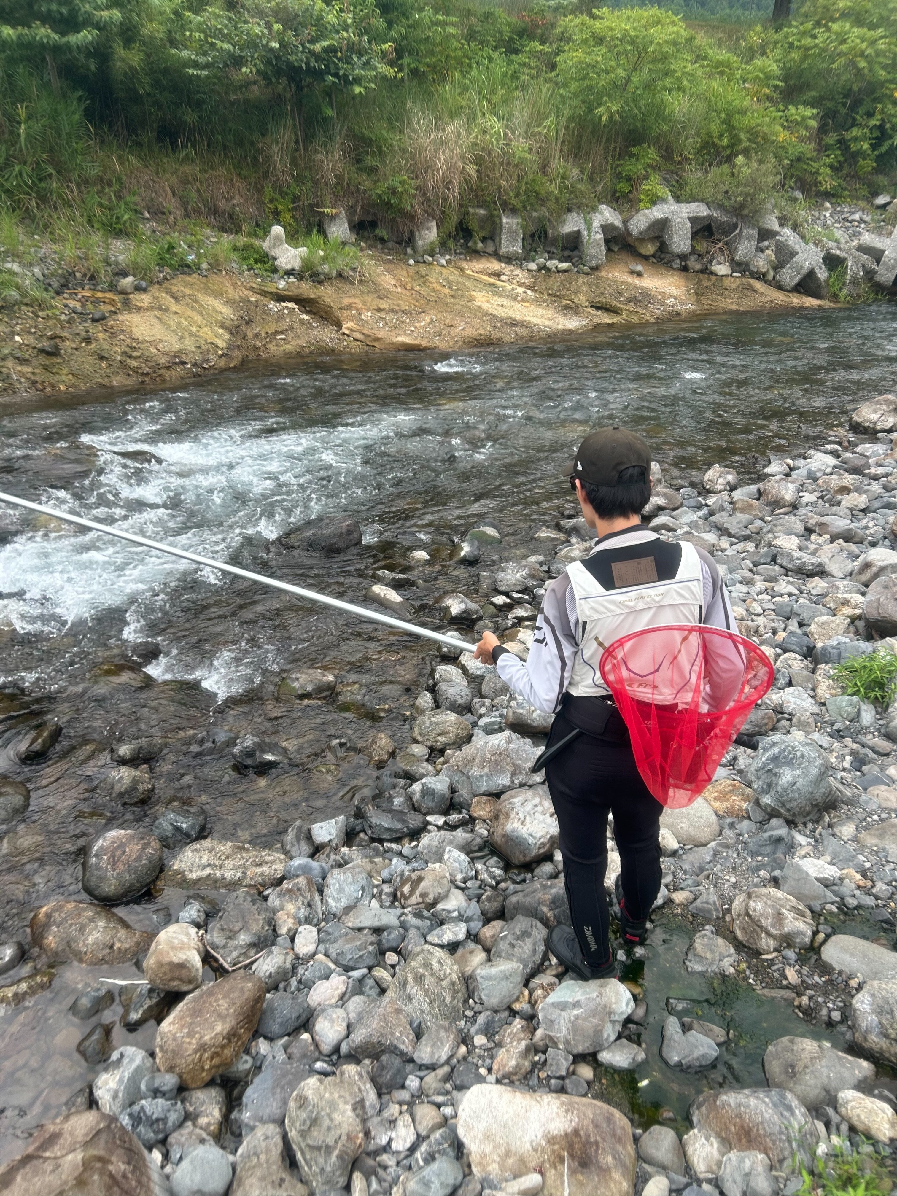 お昼前にようやく良いポイントを見つけ入ります。ここでようやく初掛かり‼️しかし、タモ入れ失敗でバラします…😭
