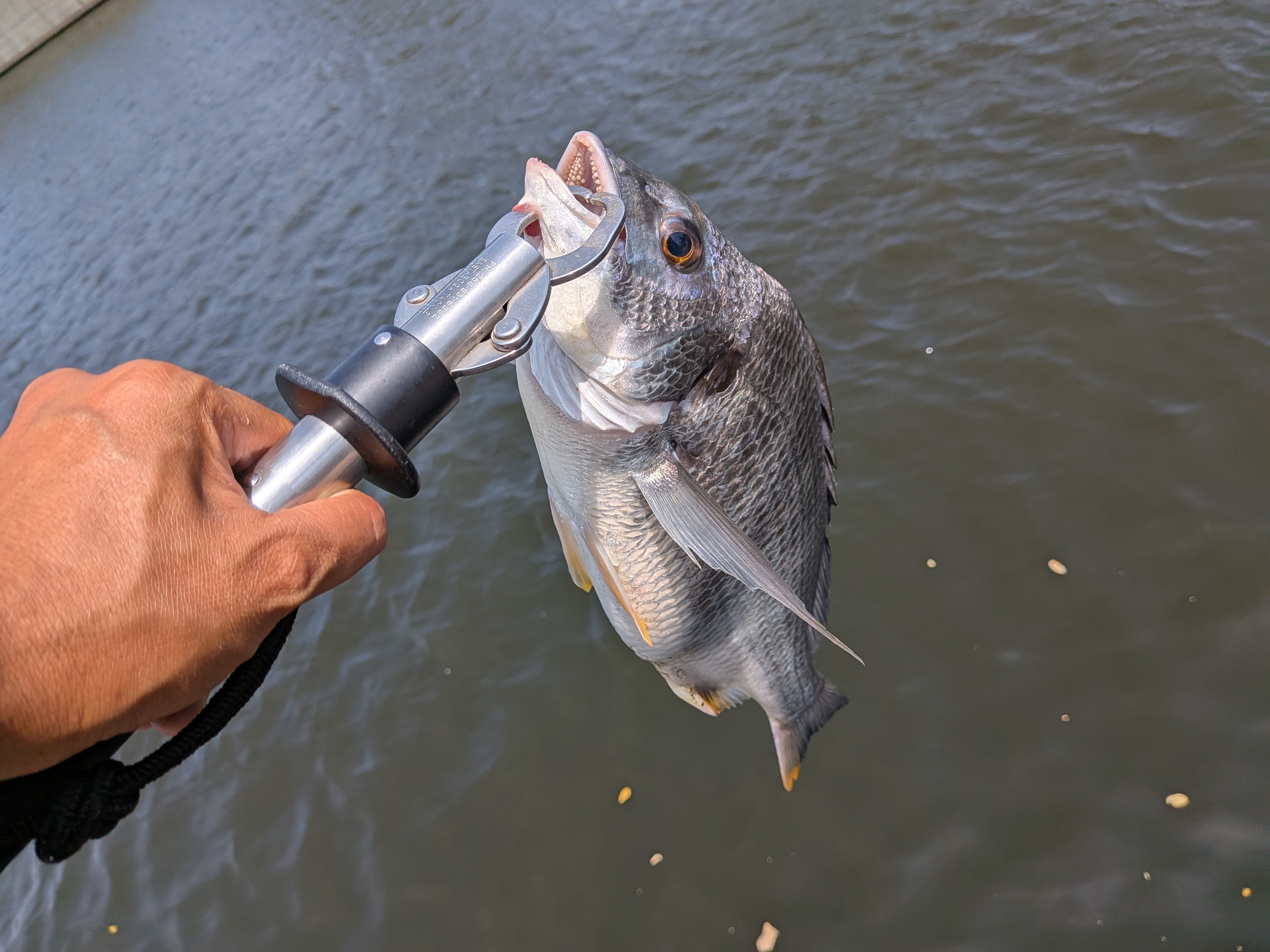 2025.08.05 印刷する 大阪湾岸チニング8月4日 魚種 クロダイ/チヌ サイズ 45センチ 数 キビレ40センチオーバー6枚、中型キビレ1枚 釣り方 ☆チニング 場所 兵庫県 天候 爆風 スタッフ 厨 宏樹 店舗 関西 西昆陽店 釣行日 2025.08.04 コメント こんにちは。西昆陽店の厨(くりや)です。 またまたデイゲームチニングへ行ってきました!好調イモ40の壁狙いスタイルで狙ってみます! この時期大型のチヌは壁のイガイやエビやカニの子供を捕食しています。 今までチニングは淀川など遠浅の所でフリーリグ・ジグヘッドなどを遠投する釣り方が一般的でした。 しかし大型のチヌは壁際の中層にいることが多く底をズル引く仕掛けでは中層を釣ることは不可能です。 そこで壁際を狙って落とし込むのを最近やっていますが釣果が凄い!大型ばかり釣れます! タックルはさまざまなルアーロッドで簡単にできます! オフセットフックで壁に引っかかりにくい(イモだと足や爪等もないので壁を転がるようにフォール) イモ40が釣れる理由はフォール速度・見た目がイガイそっくり! 他のワームも色々試しましたがイモが唯一無二の存在です! 3時間で40アップ6匹、中型キビレ1匹の7枚!爆風でかなり釣りにくくてもこの釣果!45センチオーバーも2枚! 後半特に風が強くイモでは厳しくなったので、ネイルシンカーを入れたバグアンツでも45 アップ! 風がないときならイモだけで時速5匹以上のペースで釣れるときもあります。 使用した釣具 竿 ブルーカレント82B リール SLX BFS XG左 道糸 PEライン0.6号 ショックリーダー フロロライン1.5号 ルアー イモ40