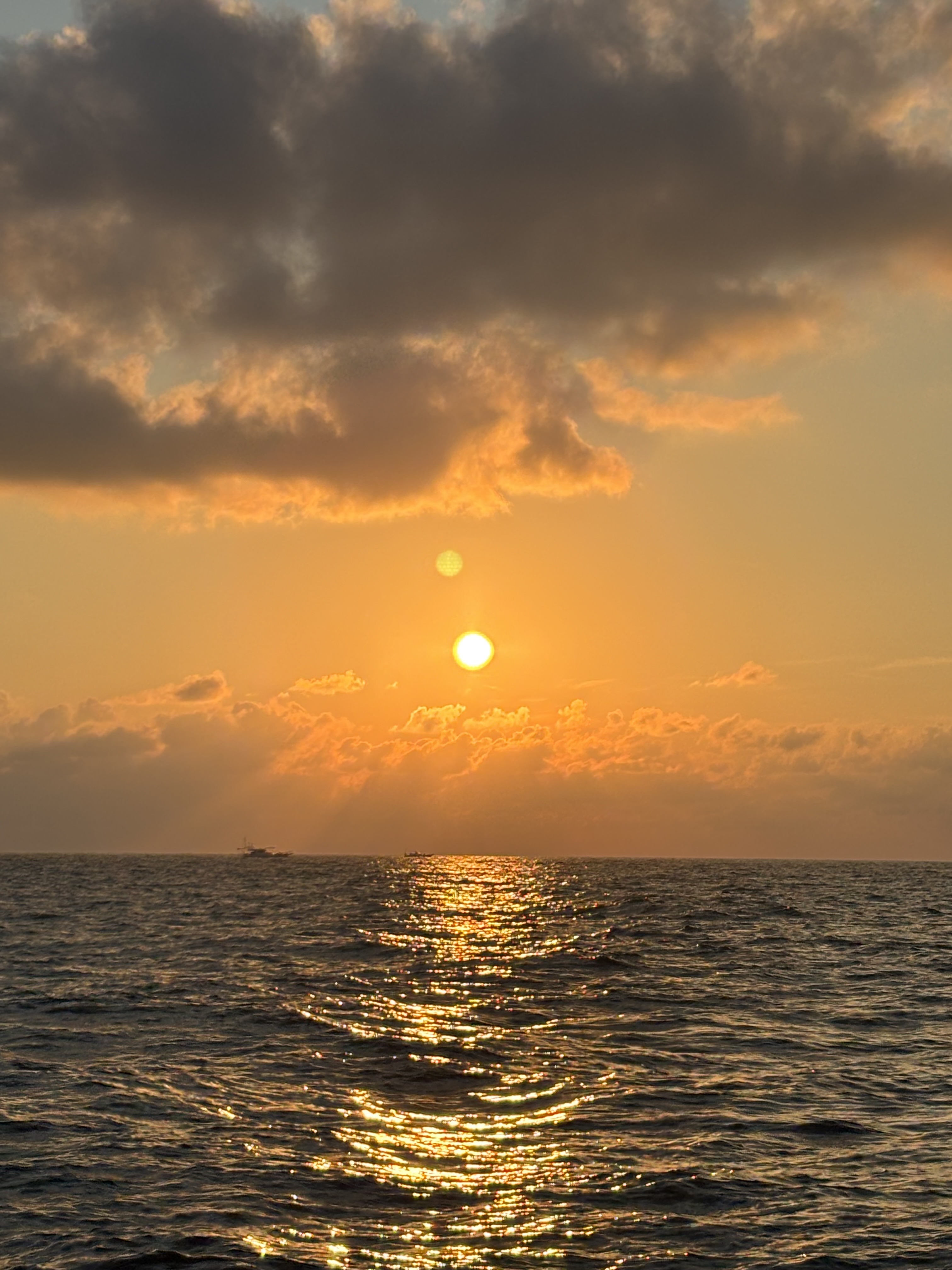太陽が出ている間はアタリすらなく、同行者とおしゃべりしながらのんびりと日没を待つ時間に☀️