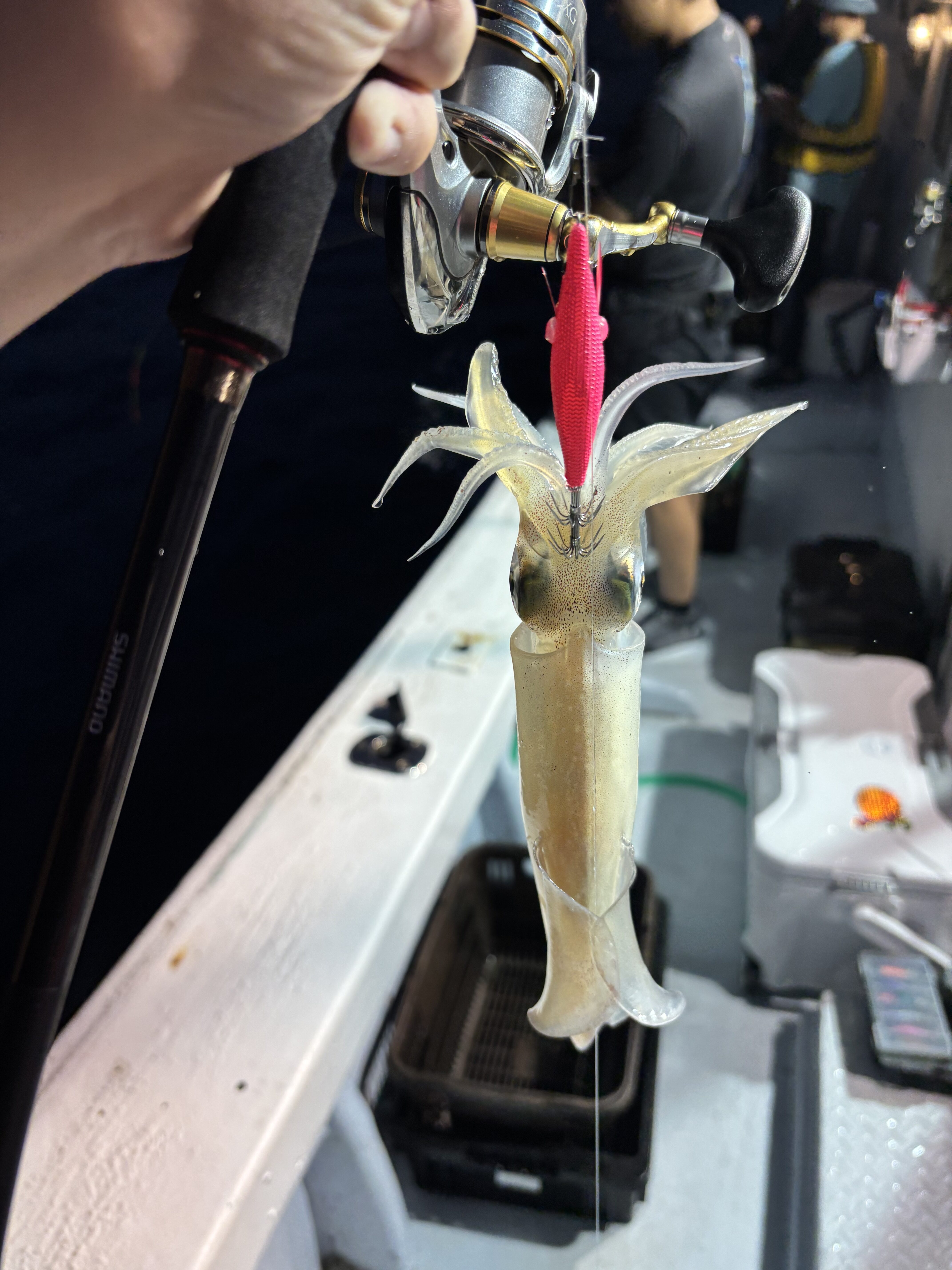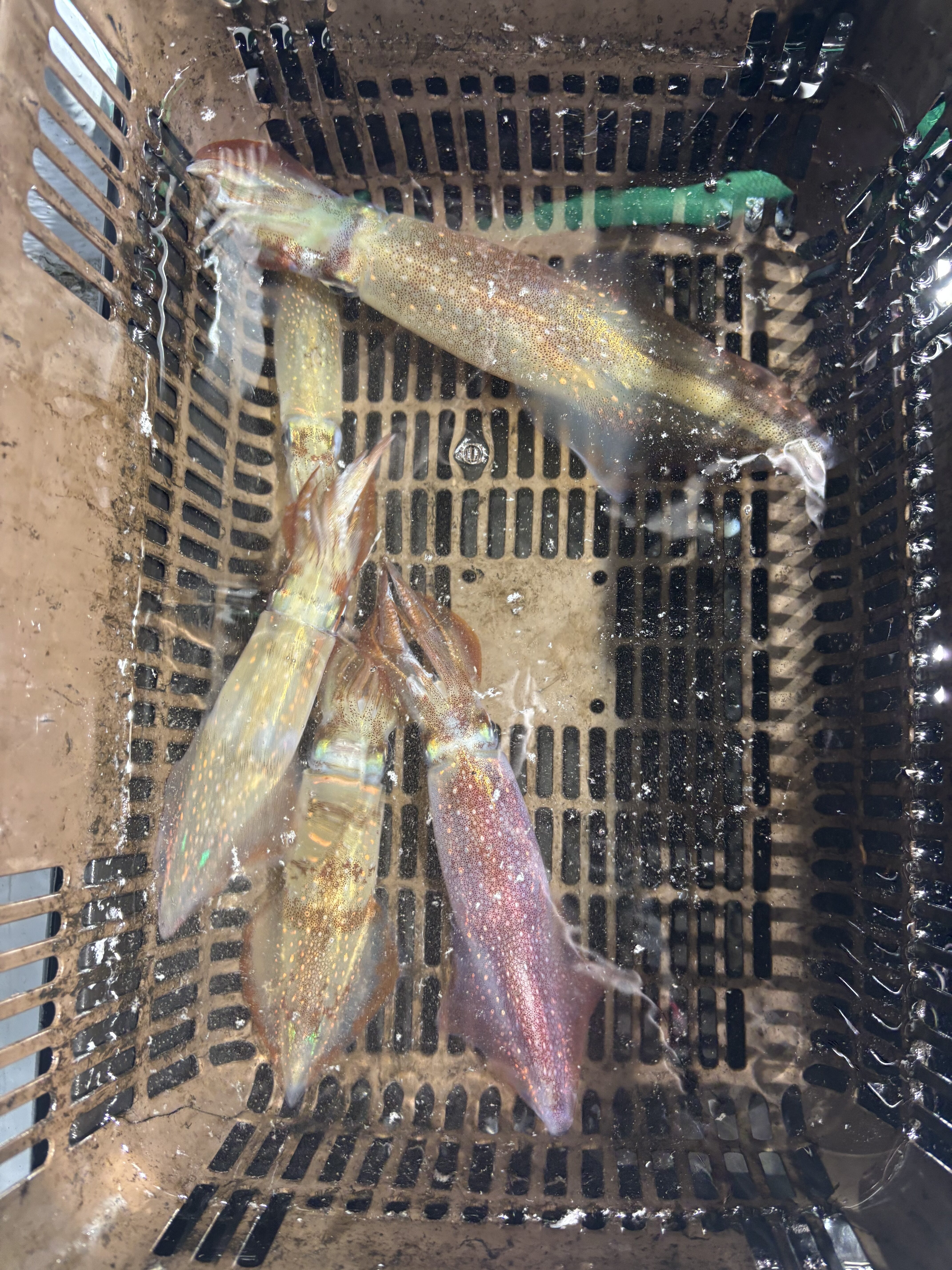 サイズは食べ頃サイズ。ヒットルアーはガマカツのエギドロッパー、カラーはピンク。