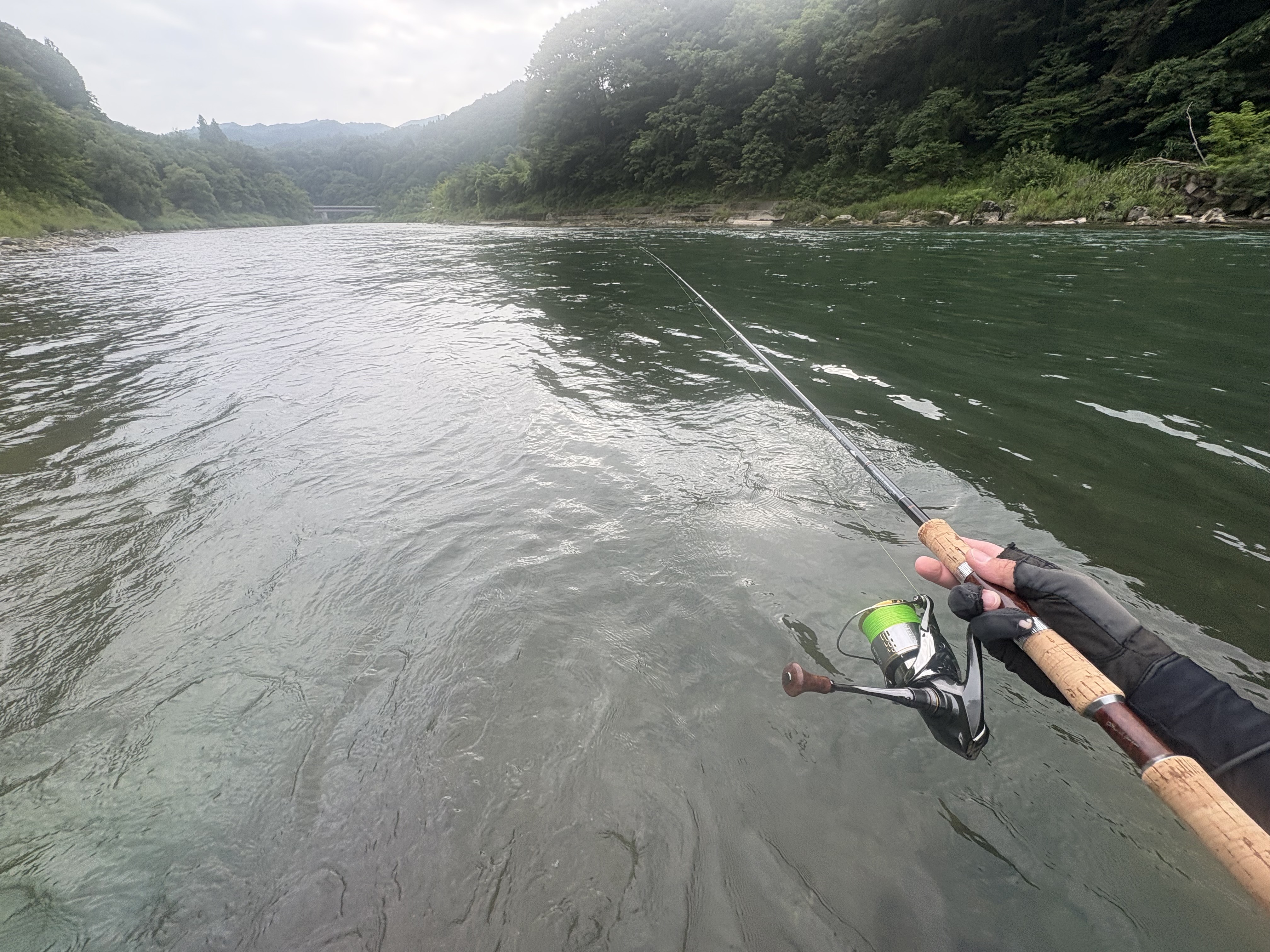 激流をヘビーウェイトスプーンやヘビーシンキングミノー、フローティングディープダイバーでボトムを狙うが反応もなく根掛りしこれを機に諦め本命の犀川本流を終了。