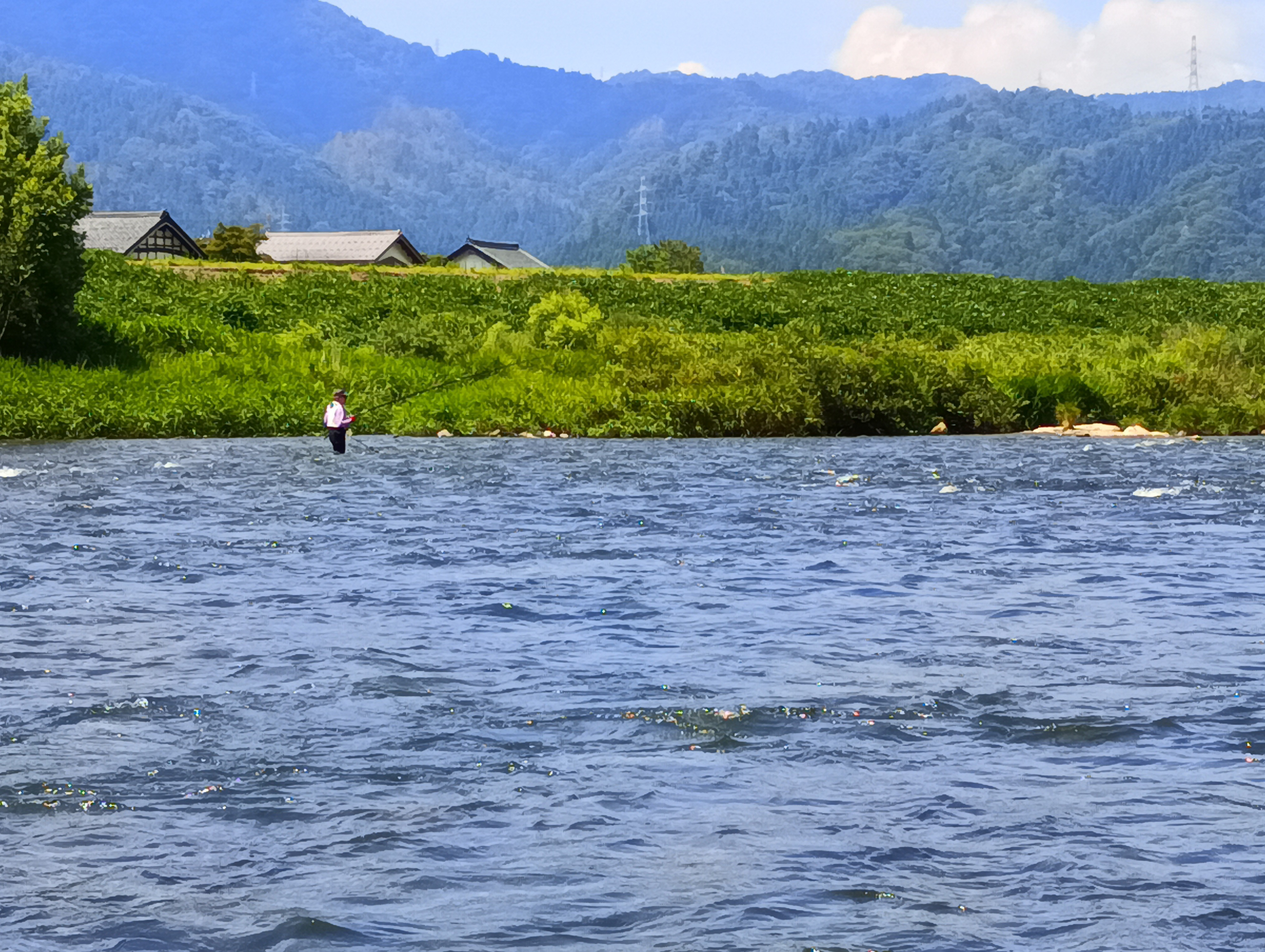 九頭竜川は流れが強く、釣り上がる事はあまりありません。なので、上の方に声を掛けます。