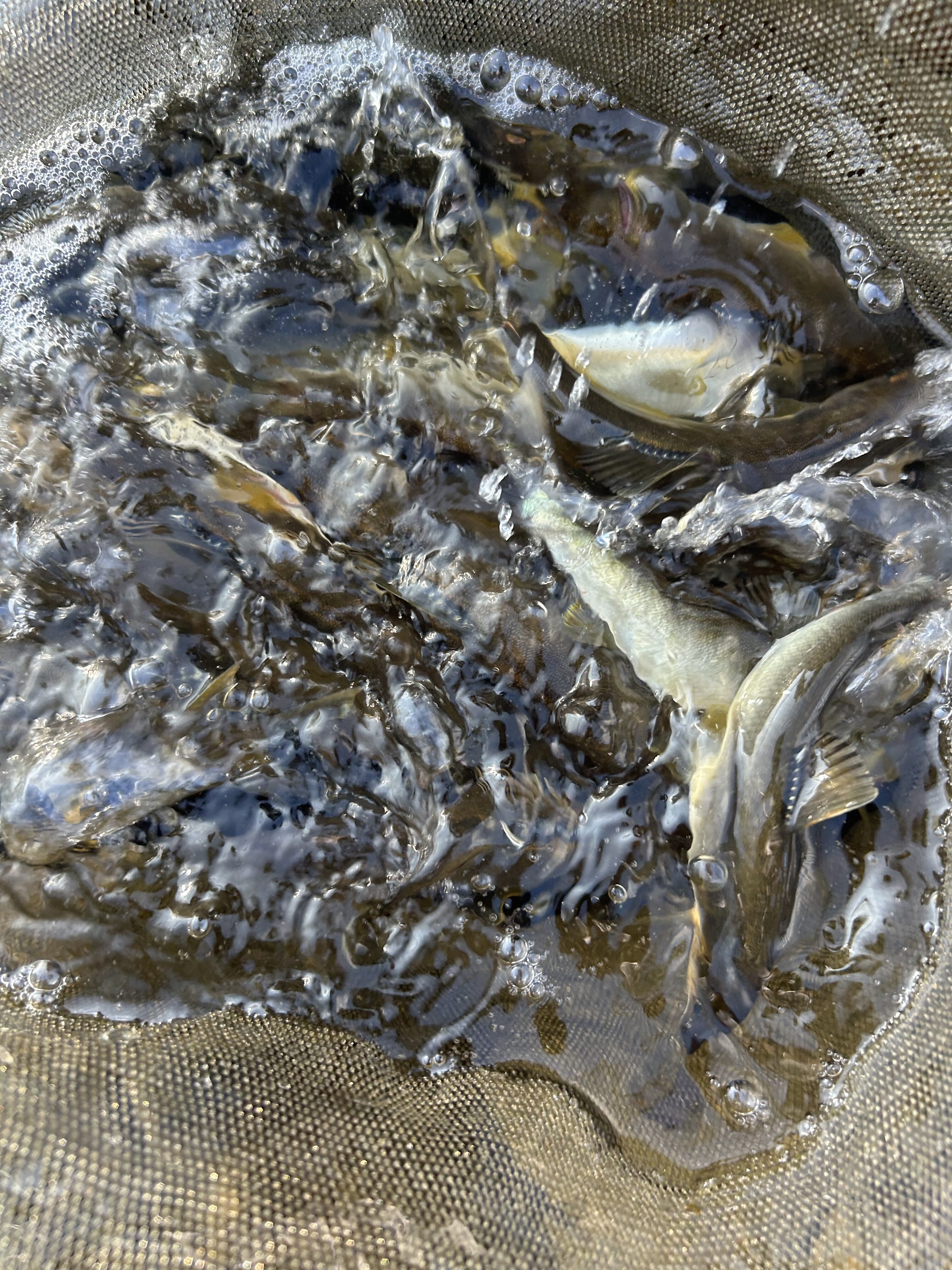 オトリを購入し、いつもの通り水合わせしオトリを川の水に慣れさせます。