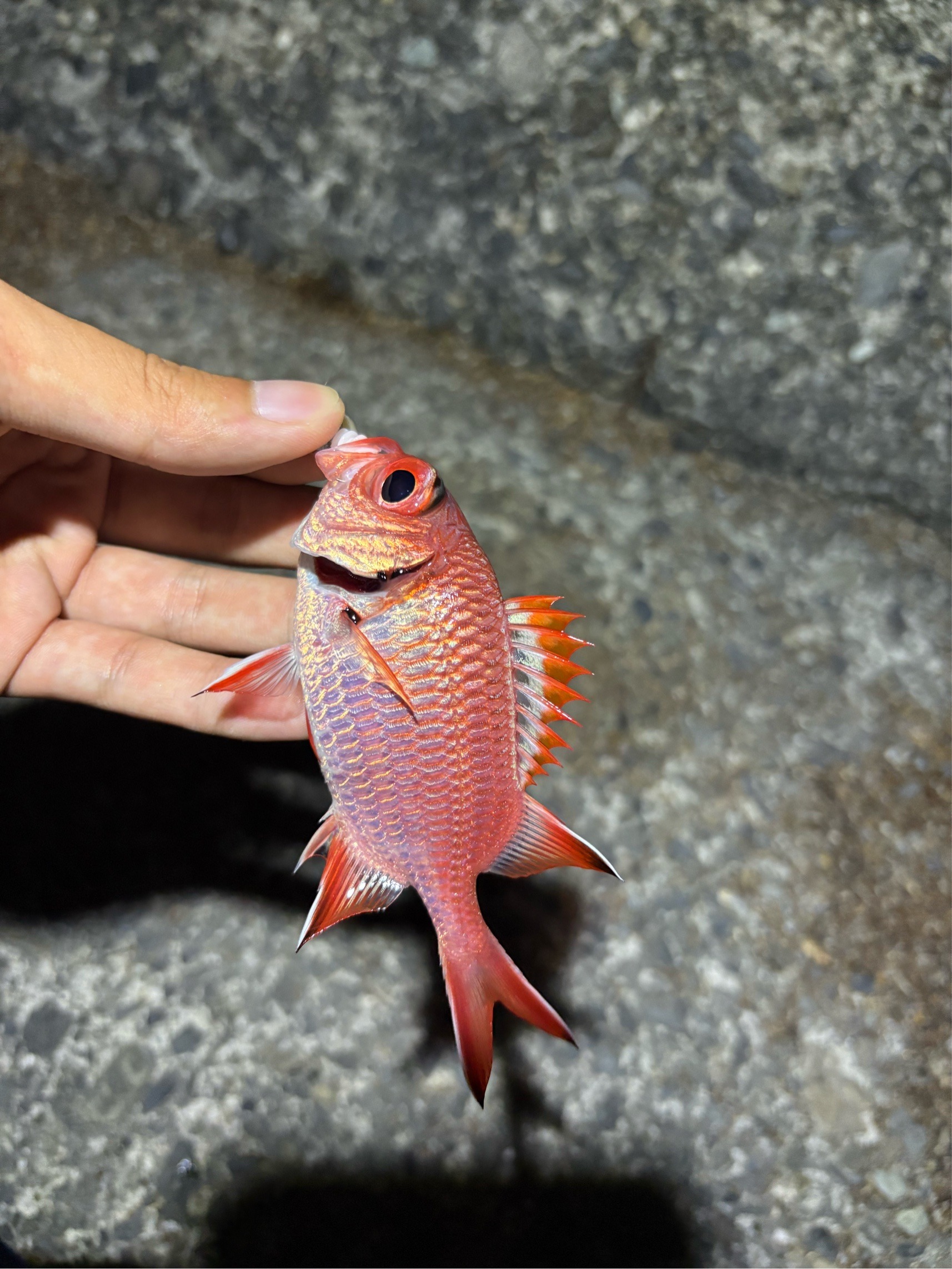 2025.08.07 印刷する 沼津方面のアジング 魚種 アジ 数 マアジ 9匹 アカマツカサ属 3匹 釣り方 ☆アジング ☆ライトゲーム 場所 静岡県 天候 晴れ スタッフ 岩田直幸 店舗 イオン相模原店 釣行日 2025.08.05 コメント イオン相模原店の岩田です🍀 沼津方面で久しぶりにアジングをしてきました。 急遽釣行が決まったのですが、当日夜の風は7m越えとだいぶ強風。 風向きの予報を見ると背寄りからの風でしたので、ダメ元で行ってみることに。 まずは釣果が出たと教えていただいた港から。 まあまあやりづらいものの、アジングは成立するくらいの風の当たり具合。 釣れそうな辺りは正面から風を受けてしまいそうで、少し手前の方に入ってみます。 ジャコヘッドTGの0.8gにアジアダーから始めますが、やはりちょっとやりづらい、、、 ジグヘッドを1gに上げ少しやった後、さらに手前の落ち着いた方にアジが入っていないか探ることに。 1投目から当たりはあってもぜんぜん掛からず、アプローチを変え何度も試すとようやくヒット! 伊豆方面に行くとみかけるアカマツカサ系の魚が正体でした。 アジの気配はまったくなく、港の中でも外に投げても赤い魚の当たりのみ。 バイトの出方は面白いです。 ポイント移動 アジはだめそうなので、帰りがけに他の常夜灯のある港に入ってみることに。 0.8gアジアダーに戻し、明るいところで投げてみると当たりました。 水面でぴちゃぴちゃした辺りの表層を攻めるとヒット! 小さいですがアジがいました♪ その後はただ巻きで当たりがありますが続かず、他の常夜灯前に移動。 カウントはほとんど取らず、アジリンガー白子カラーをチョンチョン動かしてからのデッドスロー巻きで当たり連発! フックサイズが大きいのかなかなか掛からない中2匹釣れました。 ワームをスパテラの1.5inや2inに換えると吸い込みがよくなったのか掛かりはよくなり、しっかりとワームが折れ曲がって口に収まっているのも何度かありました。 使用カラーは白系やピンク系。 スパテラではアジリンガーよりもアクション後にしっかりカーブフォールを取ってあげると、コッと気持ちのいい当たりが出ました。 風があるので思うようにはいきませんでしたが、リグを引っ張る方向、アクション時に竿先を動かす向きでバイト数に差があります。 当たりは多かったですが、バラシと掛けられないバイトで9匹止まり。 フックのサイズや形状を複数試せばもっと拾えそうな感じがします。 最後まで読んでいただきありがとうございます♪ 使用した釣具 ロッド 《クリアブルー》 クリスター 61ANY リール 《ダイワ》 15ルビアス 2004 ライン 《ラインシステム》 ディテクター エリアエステル 0.3号 リーダー 《バリバス》 ライトゲームショックリーダー フロロ 0.8号 ワーム 《レイン》 アジリンガー・アジアダー、《一誠》 スパテラ 1.5-2in ジグヘッド 0.8-1.0g