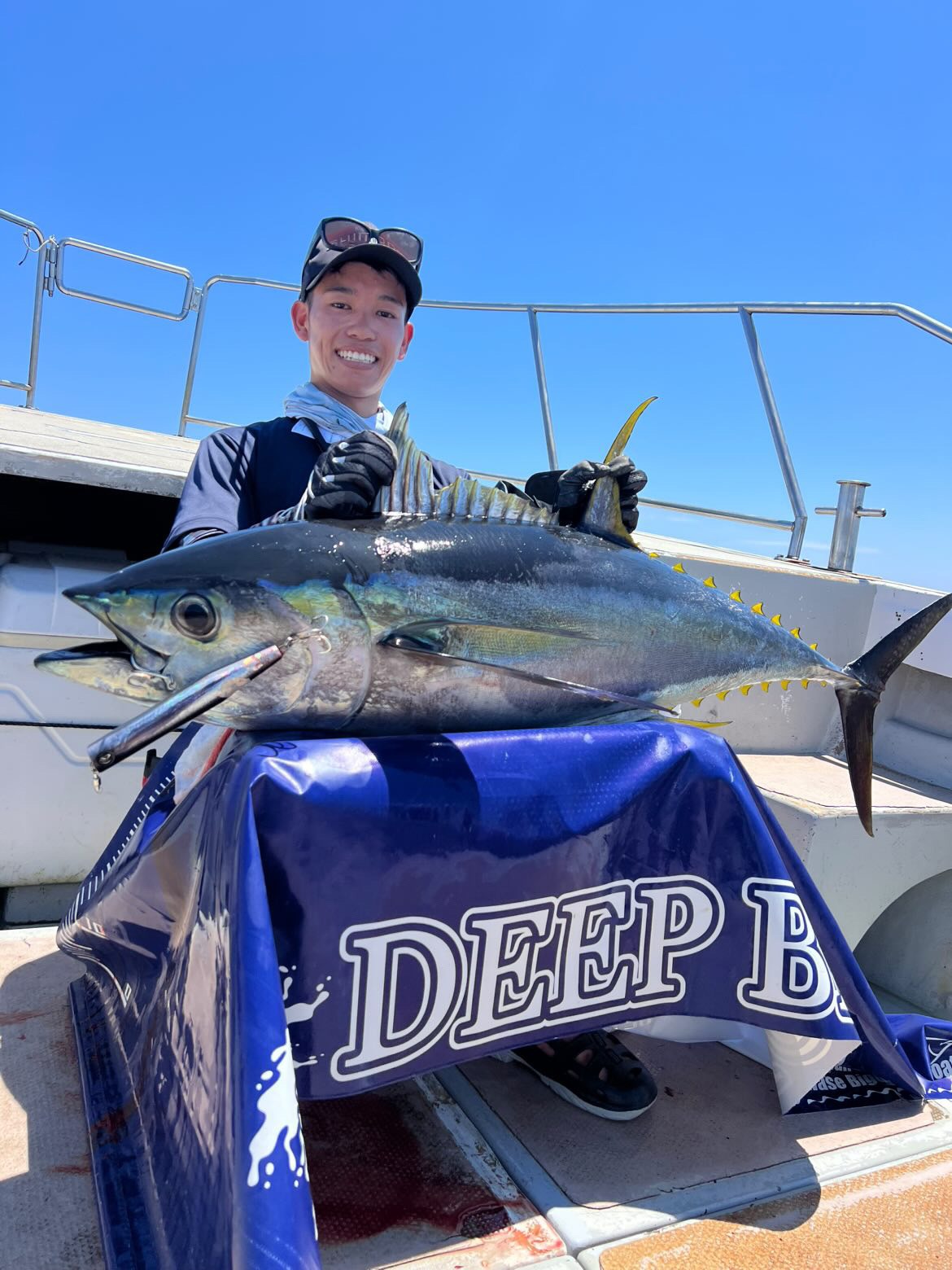 冷静に魚を走らせて5回横にフッキング。魚が止まったところで銀バルに入れて1対1の真剣勝負。思ったよりすぐ船下まで寄りましたがここからがキツイところ。船の下に潜るやなんやらで少し苦戦しましたがなんとか水面に浮かすことに成功💯上がってきたのは30kgのキハダマグロでしたが無事取ることができてホッとしました❗️