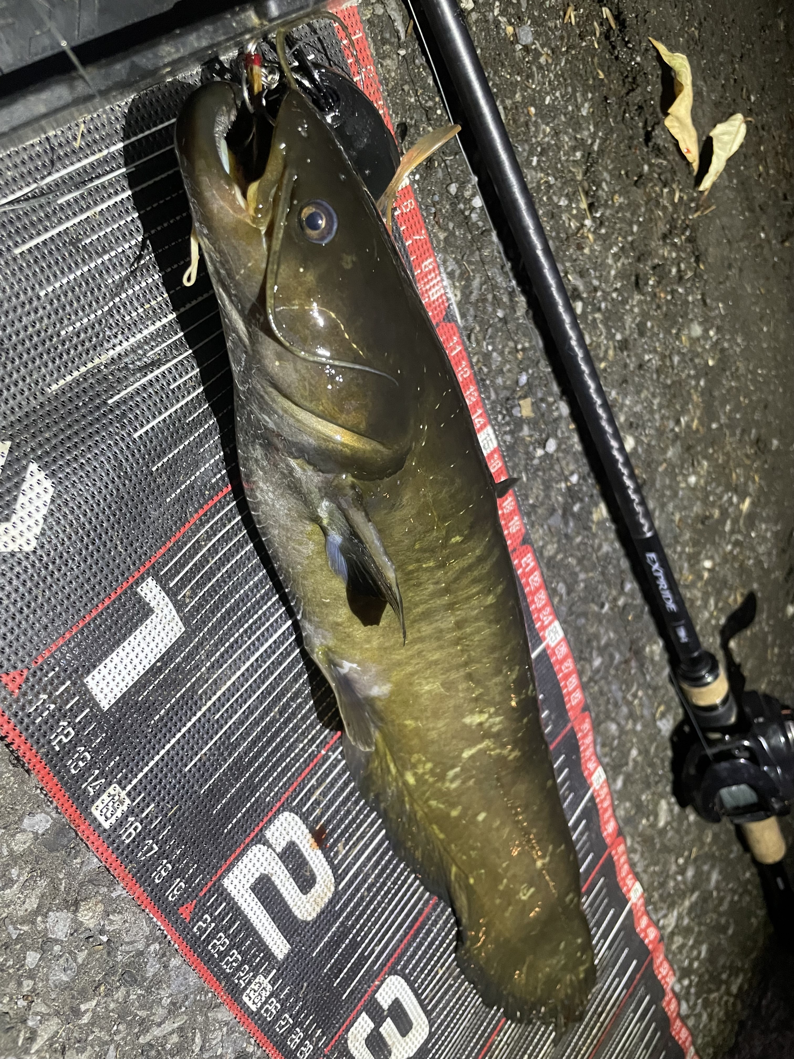 2025.08.07 印刷する 夏ナマズもアツい! 魚種 ナマズ サイズ 47cm 数 1本 場所 埼玉県 天候 曇り スタッフ 中村祐 店舗 柏店 釣行日 2025.08.01 コメント 柏店中村です!今回は休日ナマズです!へら釣りに行く予定でしたが、雨が降るようなのでナマズへシフトチェンジ! まずはデイナマで状況調査!いつものポイントは全くの無反応。2〜3か所やりますが全て反応なし。雨が降ってくる予報なので一旦帰宅。まとまった雨が降った後、再度出撃!向かったのは超久々のポイント!デイナマといえばシェード狙い!オーバーハングが連続するポイント!早速狙っていくと、予想通りオーバーハング下で、着水と同時にナマズが現れバイトしますがミスバイト!幸先良いスタートに、期待しながらランガンしてきますが他の反応は無く移動。 サイトナマズのポイントにやってきました!前日釣ったポイントとは別の場所ですが、早速ナマズを探していくと、いきなり発見!しかしウィードに隠れてしまいました…。ナマズの向かった方向から現在地を推測し、ルアーをそっと着水。すると着水と同時にバイト!!読みが当たりました! 今シーズン105本目いただきです! 8月開幕から早速のキャッチ!夏ナマズもこの調子で楽しんでいきたいと思います! 使用した釣具 ロッド シマノ エクスプライド170M-G リール シマノ メタニウム DC70XG