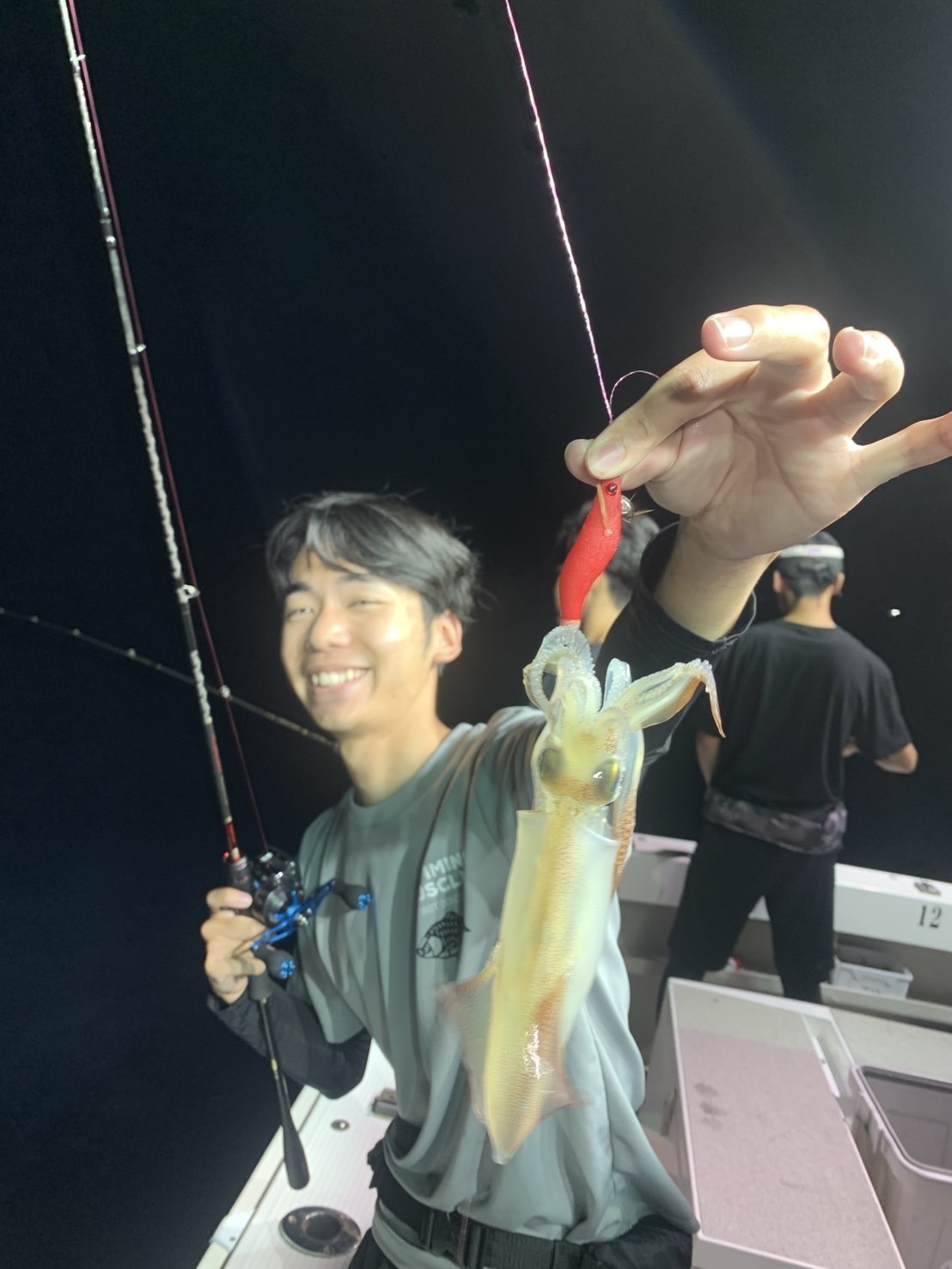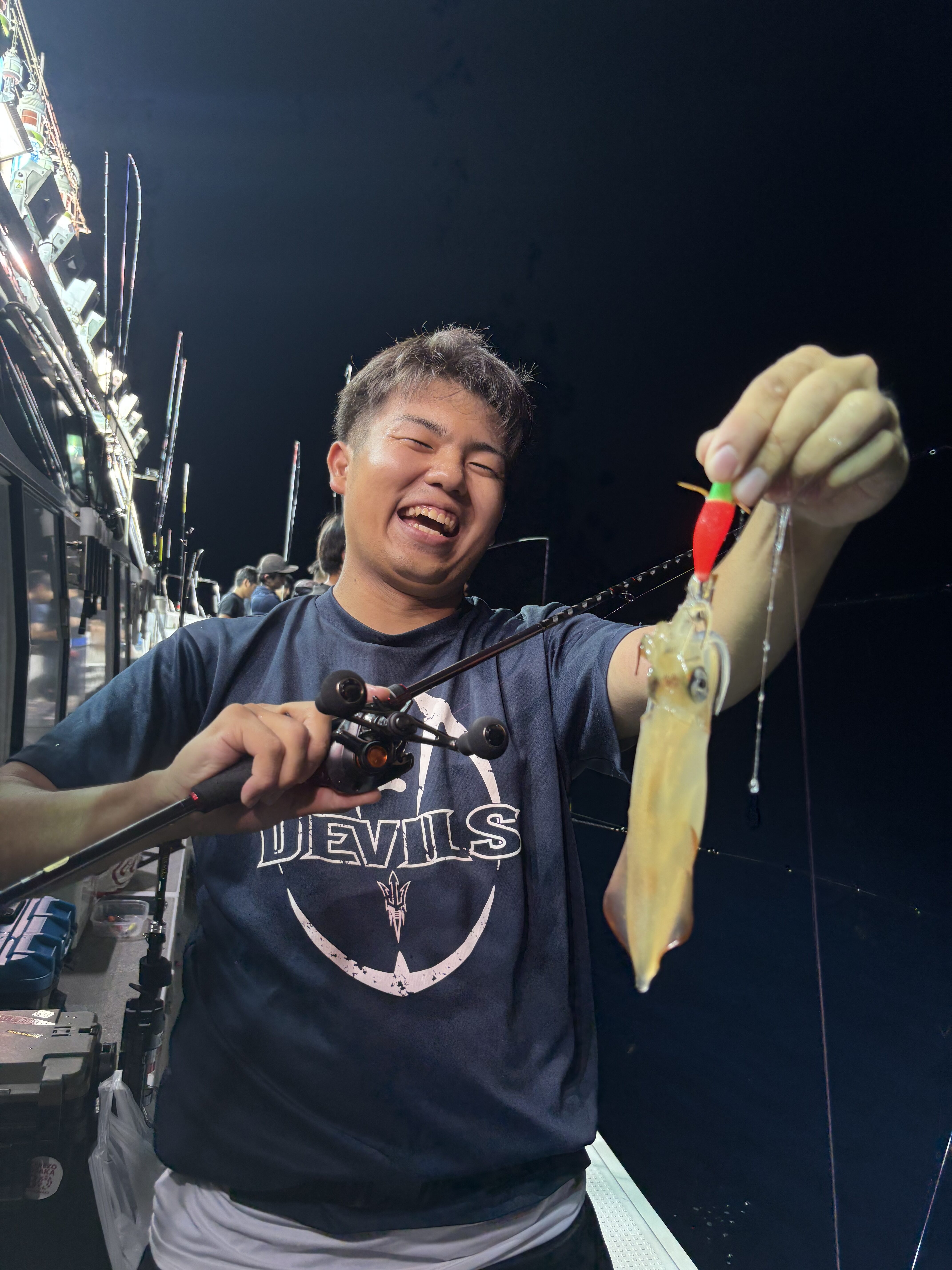 上がってきたのは20センチほどのケンサキイカです!