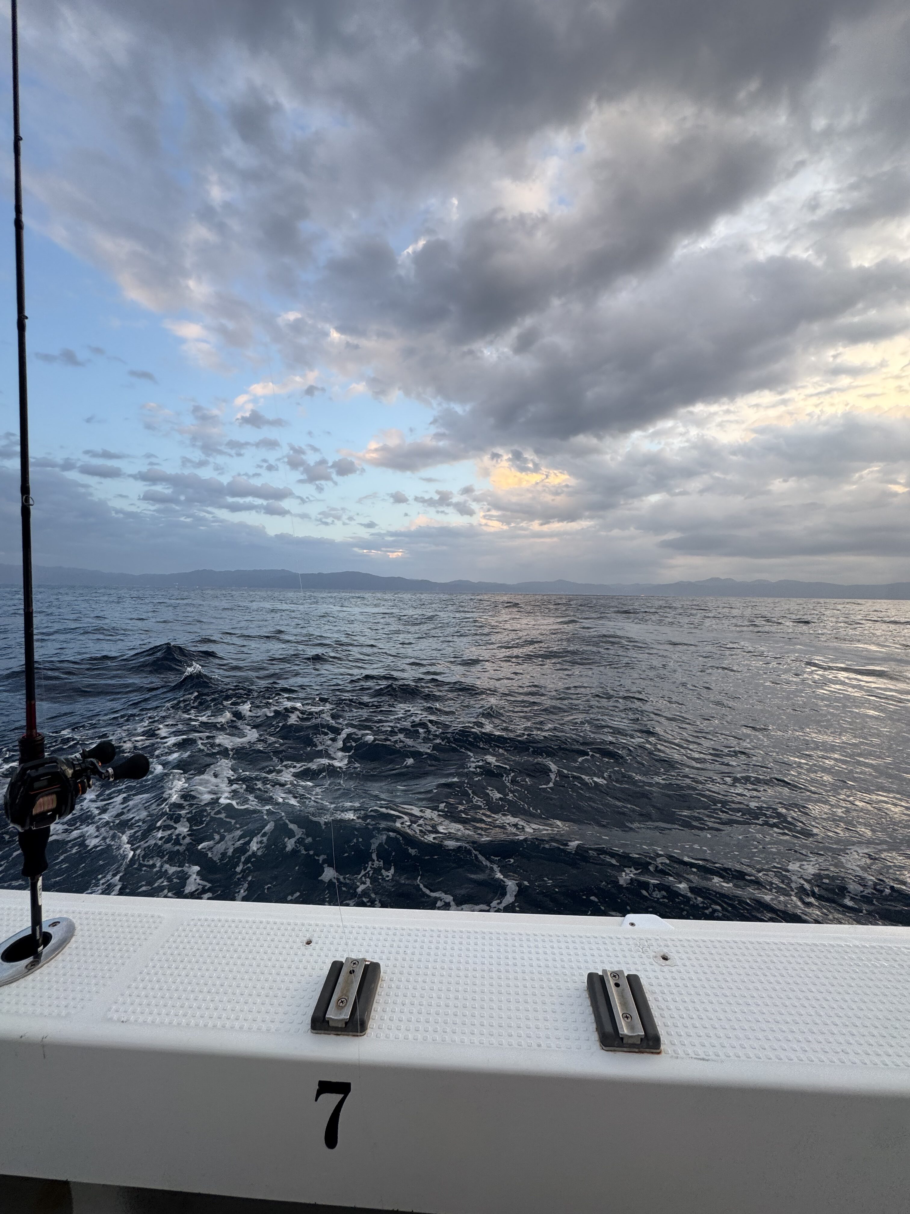 船を1時間ほど走らせポイントに到着し、19時過ぎ辺りから釣行開始!