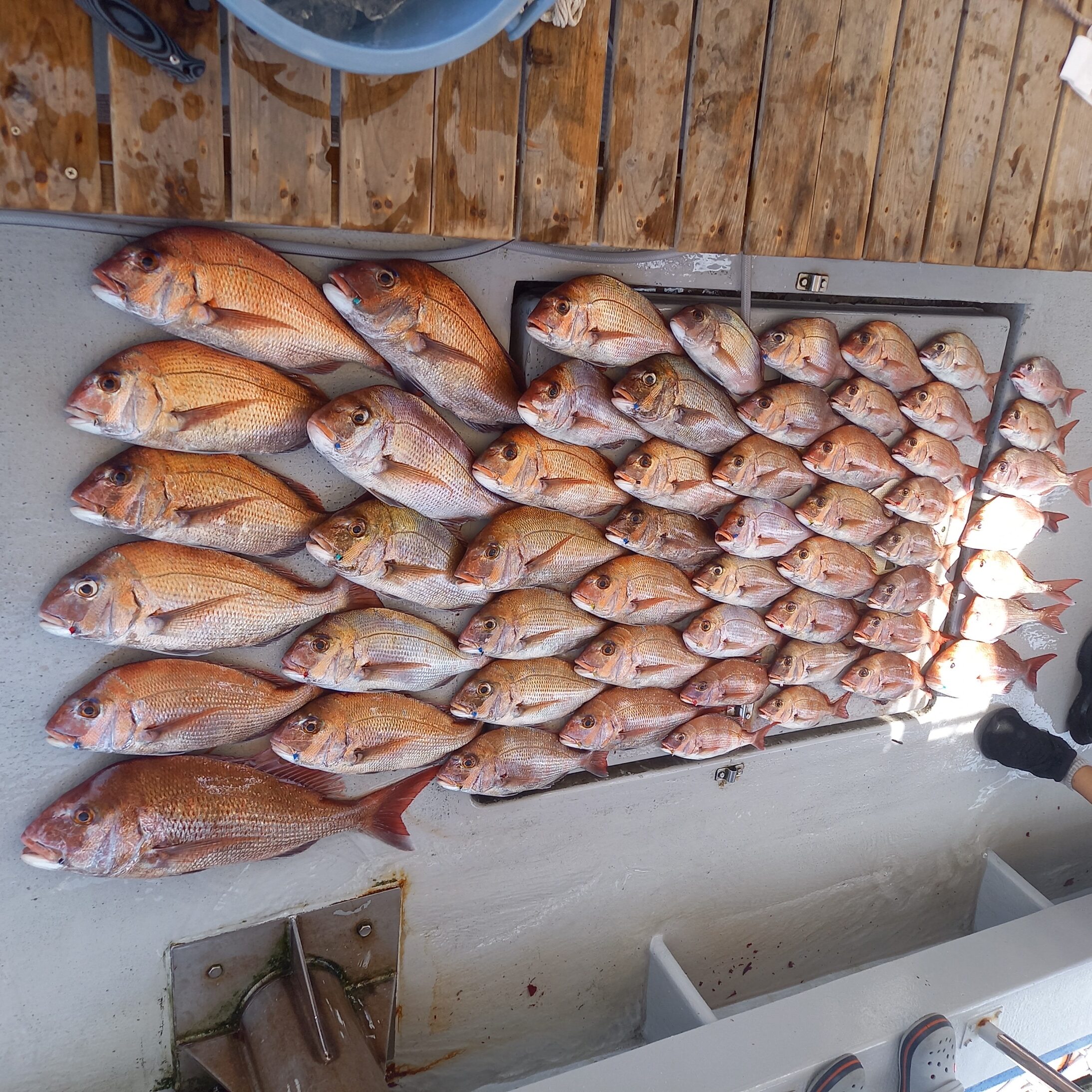当日はネクタイ有利な状況でしたが、前々日の午後便では厨師匠がジグで60アップ2枚含む50アップばかり6枚という釣果を上げておりベイトの付き具合によってはジグ有利な日もあるので当分はタイラバとタイジグ、両方を持参されたほうが良いと思います。